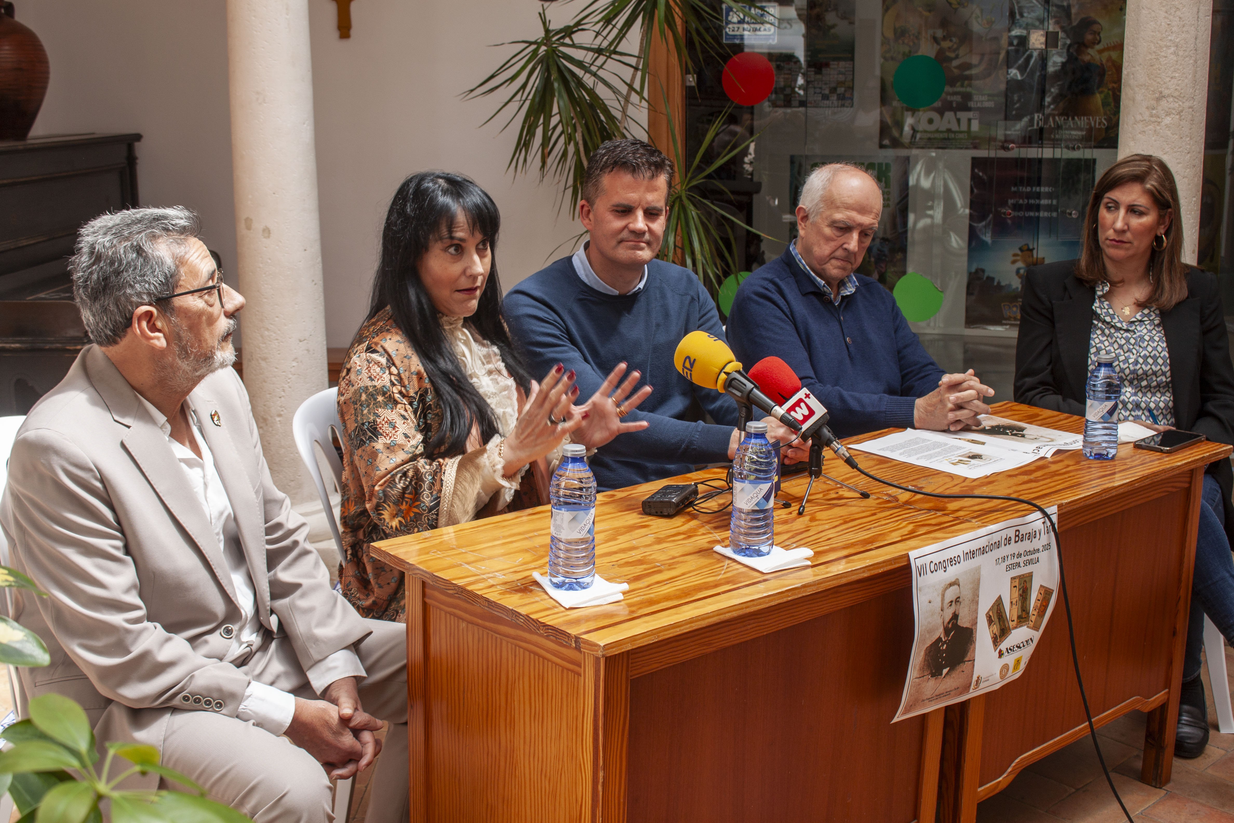 Ayer se presentó en la casa de la Cultura Miguel de Cervantes de Estepa el VII Congreso Internacional de Baraja y Tarot, que se celebrará en en nuestra ciudad los próximos días 17, 18 y 19 de octubre de 2025. En la rueda de prensa participaron el alcalde de Estepa, Antonio Jesús Muñoz, junto a Victoria Braojos y Francisco Javier Gómez, reconocidos expertos en tarot y directores del congreso. También intervinieron la concejala de Cultura, Ascen Castillo, y el empresario y coleccionista Antonio Rivero Ruiz, director del Museo del Chocolate "Chocomundo".