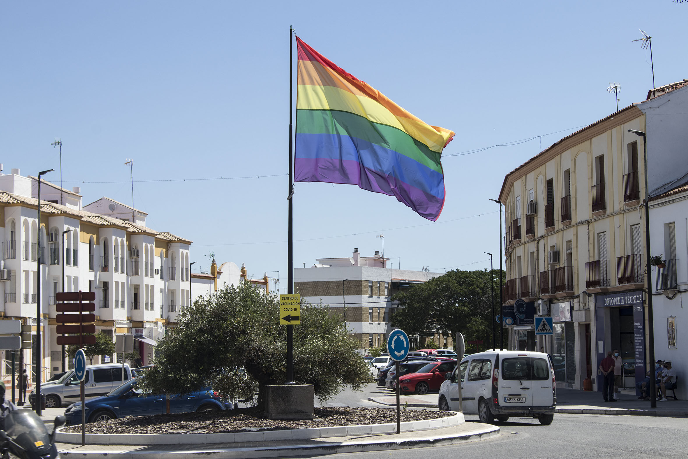 La misma bandera de colores ondea desde el pasado viernes en el Ayuntamiento de Estepa y en la rotonda del olivo en la avenida de Andalucía.