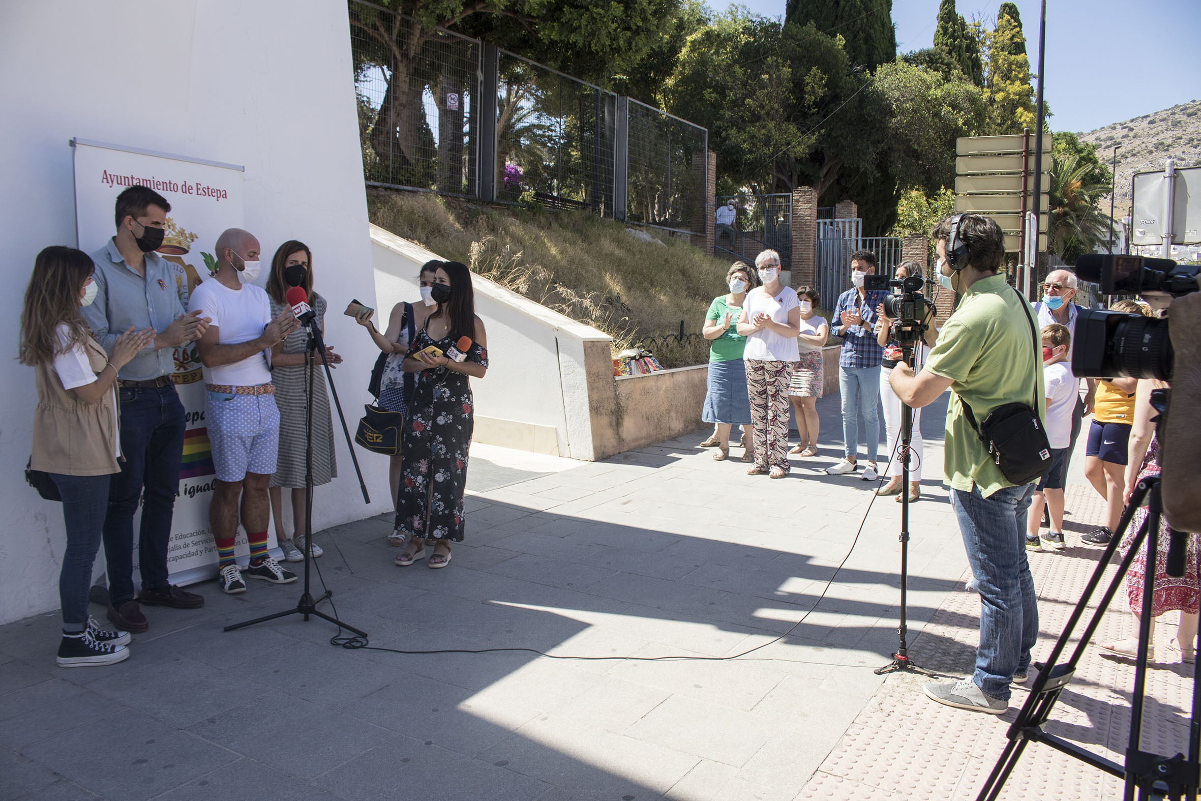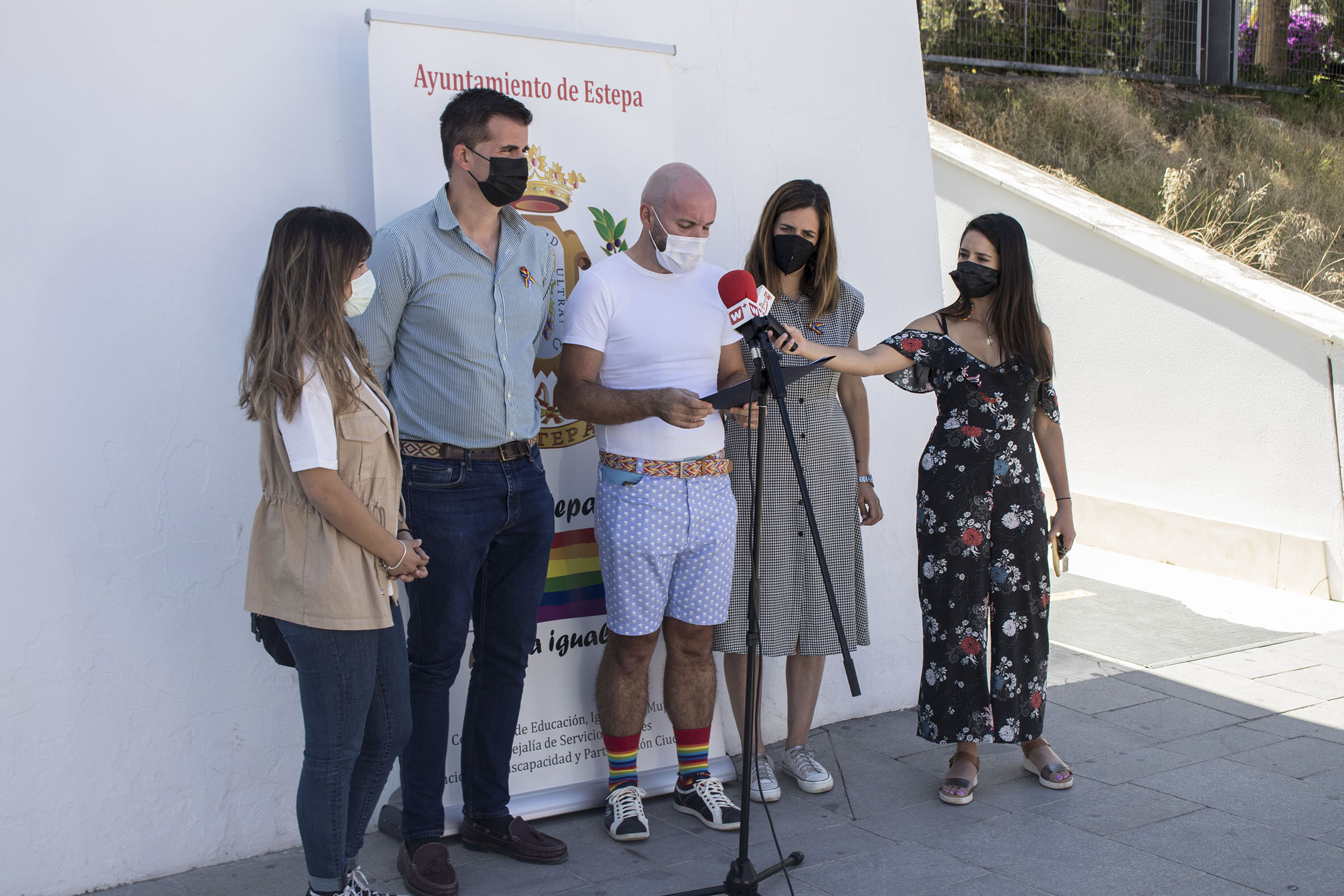 A las 12 en punto la cita ha sido en el edificio Alcalde Niño Anselmo, en la avenida de Andalucía de Estepa, donde el concejal ha leído un manifiesto y después se han repartido, a las estepeñas y estepeños, abanicos y lazos con la bandera arco iris.