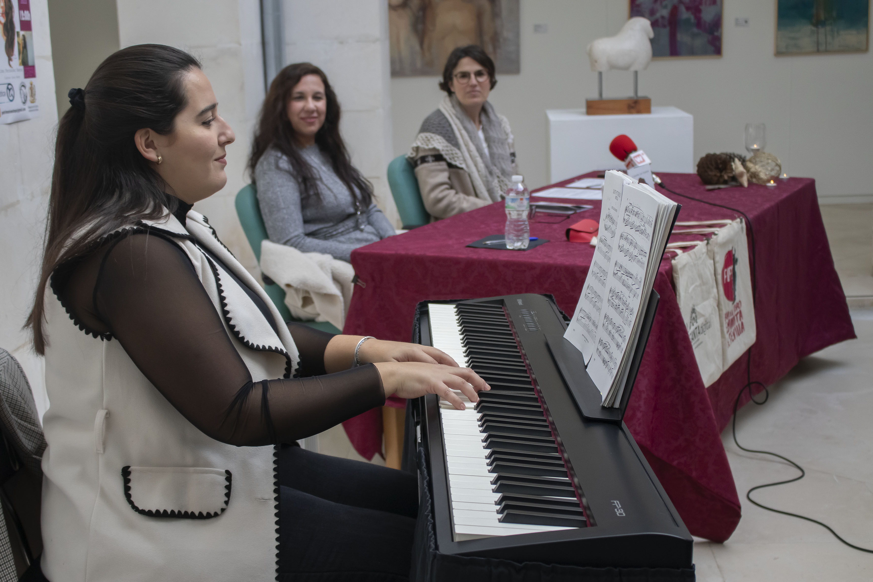 La profesora Mercedes Pérez ha acompañado con piezas musicales al piano la introducción del acto y lectura de algunos poemas.