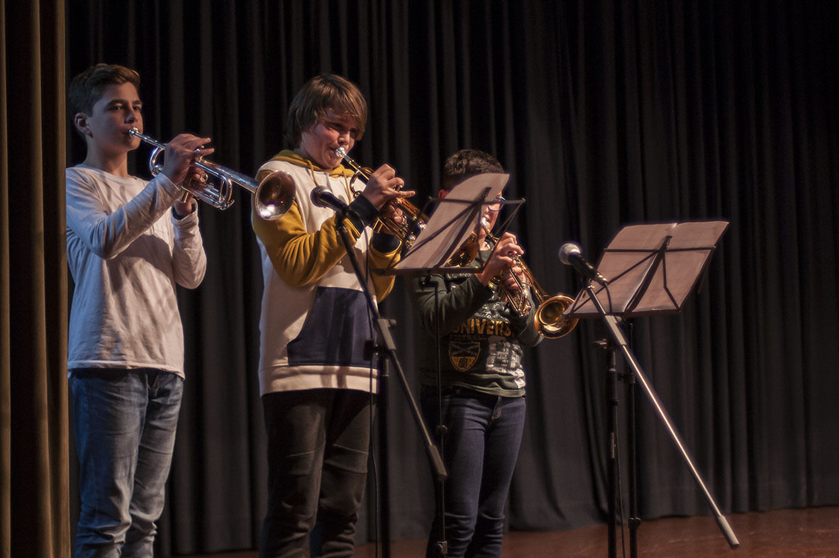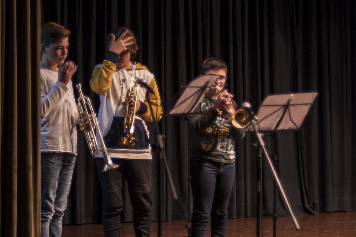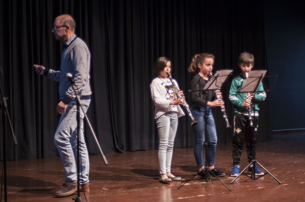 Las niñas y niños de los Talleres de Música y Movimiento del Conservatorio Alonso Salas Machuca de Estepa celebró ayer la Navidad con su tradicional audición de música. Villancicos y rock mezclados en las flautas y cánticos de los pequeños.