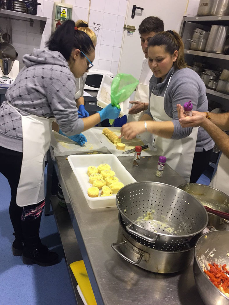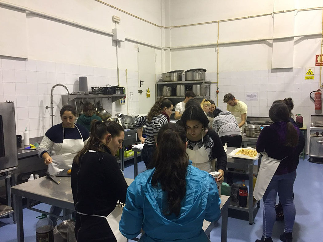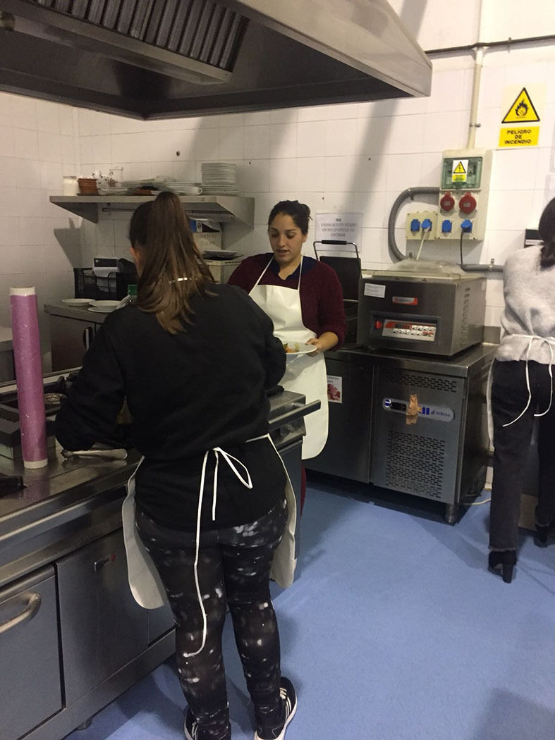 Su monitora, Claudia Rueda Martos les enseñaba cada día a realizar un menú formado por un primer plato, un segundo plato y un postre terminando con la degustación de los platos elaborados entre todos.