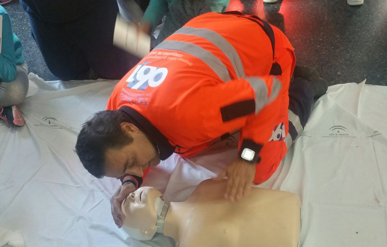 El concejal de salud, Manuel Rodríguez, asistió ayer a la jornada formativa en actividades de emergencia celebrada en el IES Aguilar y Cano. Los chichos y chicas del centro aprendieron técnicas vitales y básicas para salvar vidas en caso de emergencia. La empresa pública de emergencias 061 fue la encargada de desplazar al centro un equipo completo de profesionales que se encargaron de transmitir sus conocimientos al alumnado.
