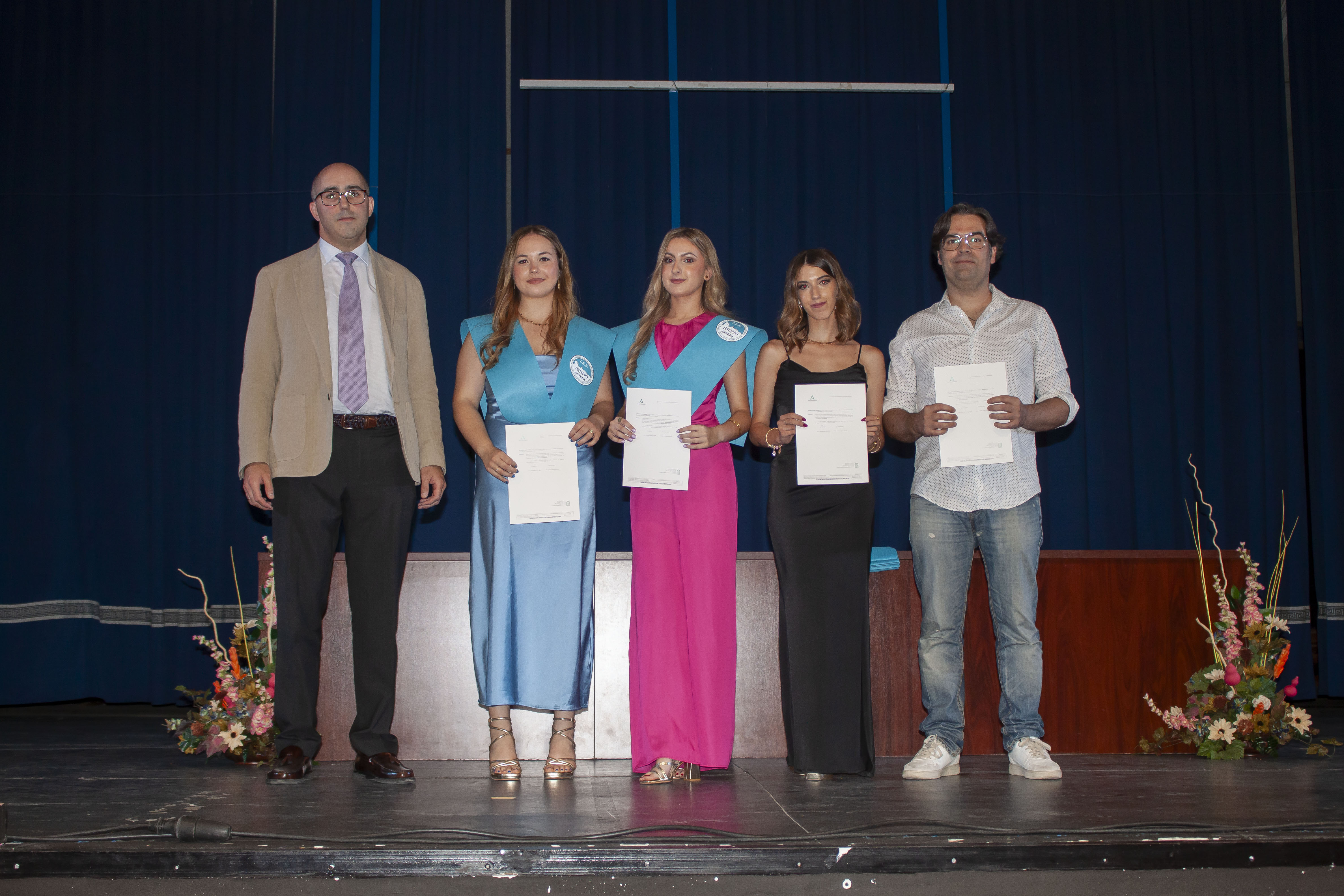Tras la entrega de orlas a los diferentes cursos, se han nombrado a los cuatro estudiantes que han conseguido Matrícula de Honor: Inmaculada Ruiz Carrasco, Erica Pilar Gómez, Sergi Casas Rueda y Silvia Martín Quero.