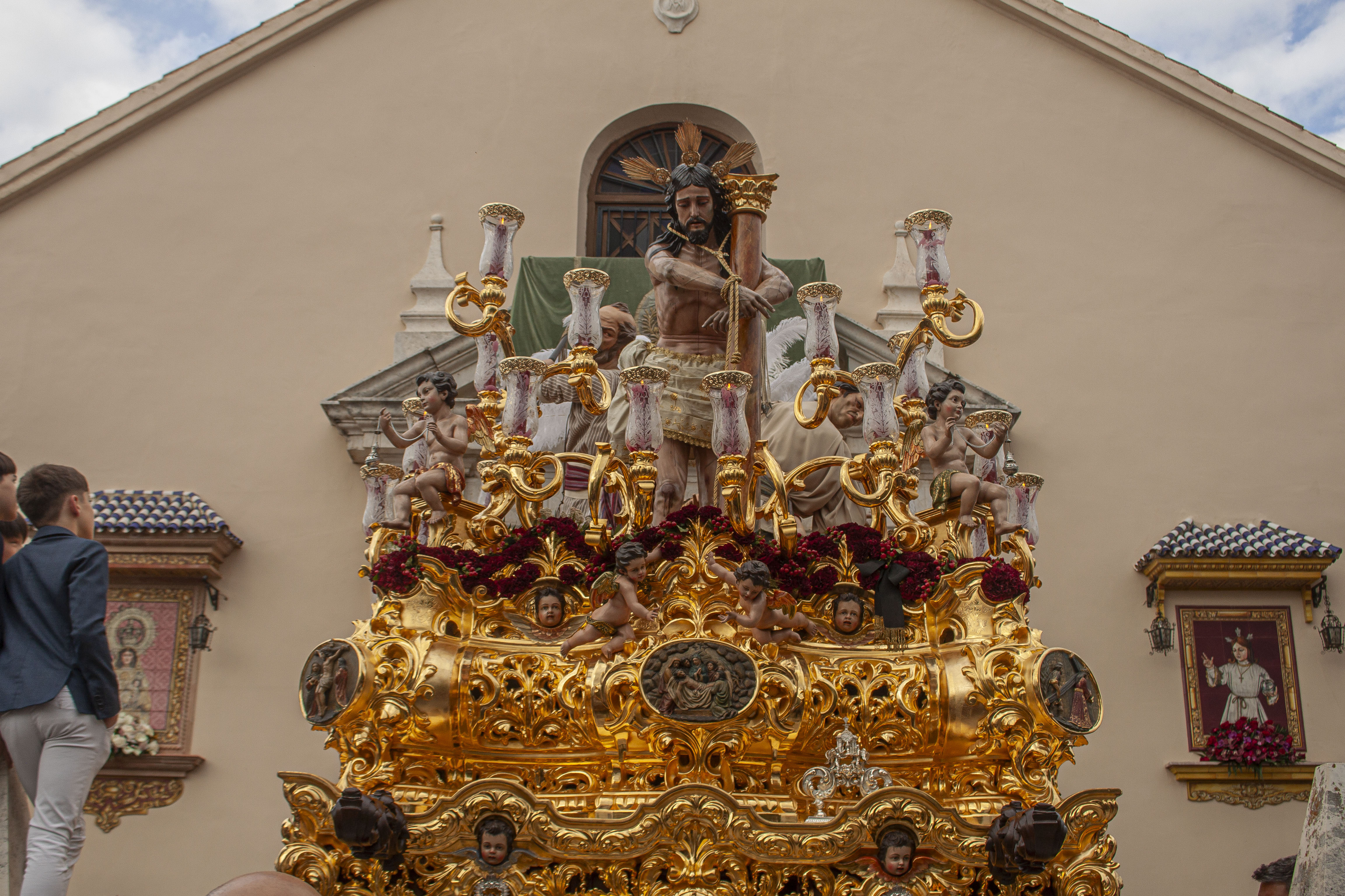 Pasos: Dos. 40 costaleros lleva el paso de Misterio y 30 costaleros calza el palio.