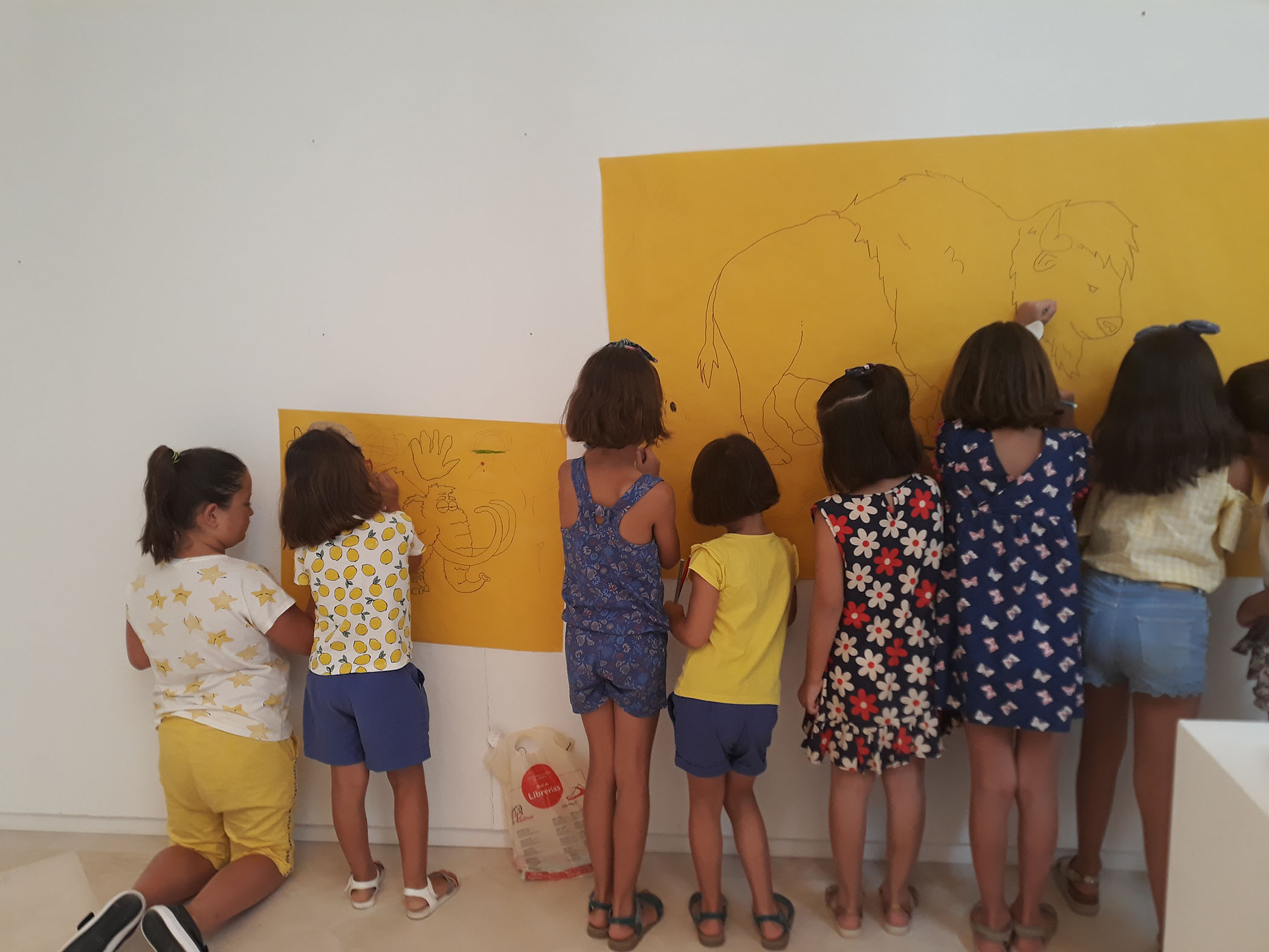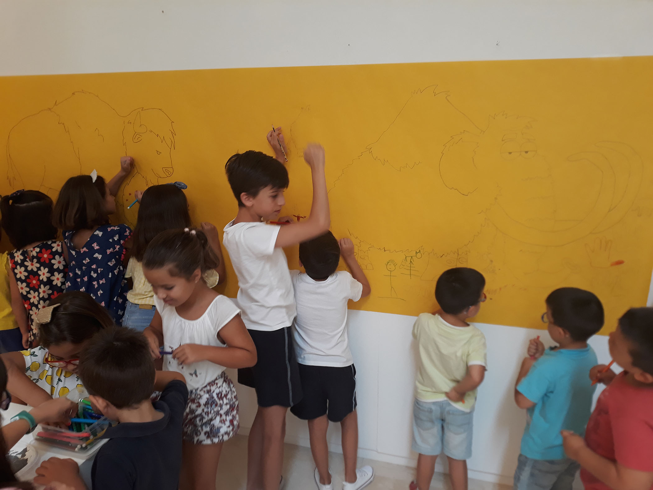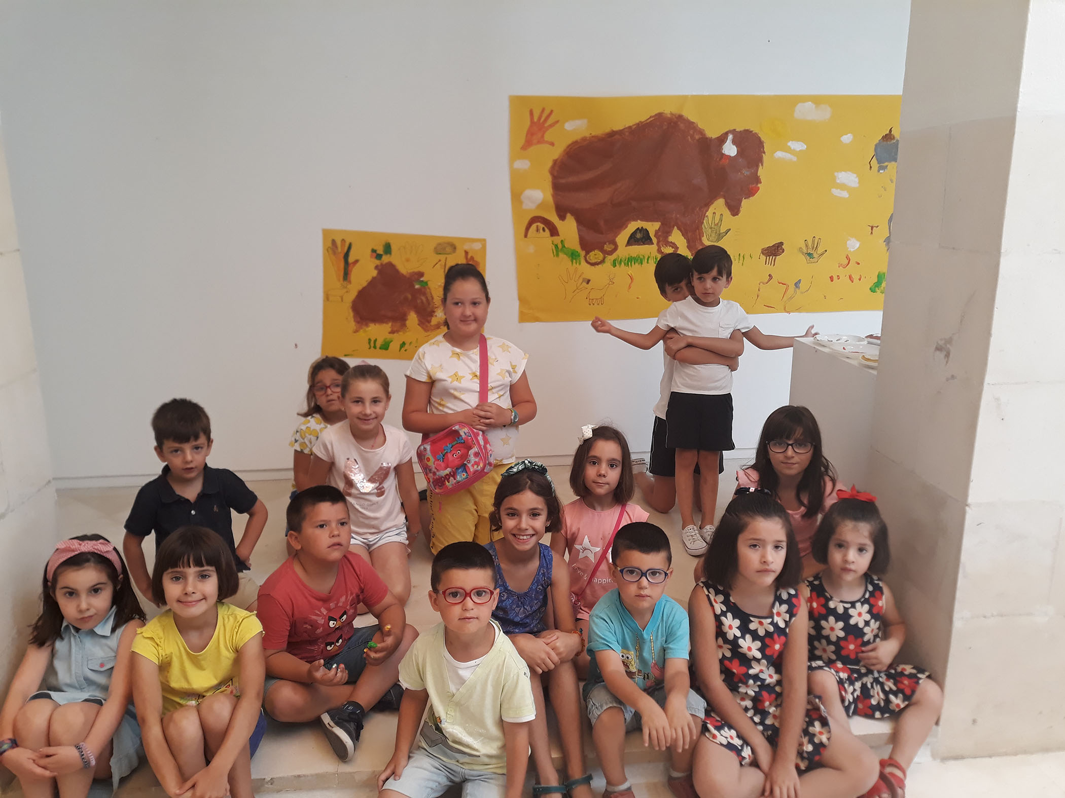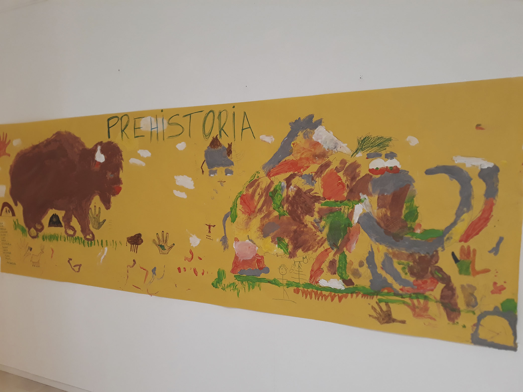 El martes realizamos una actividad relacionada con el Arte Rupestre, tras una breve explicación acerca de los diferentes tipos de pinturas rupestres, los participantes han realizado un gran mural con pintura de dedos en el que se pueden contemplar las imágenes de un mamut y un bisonte.