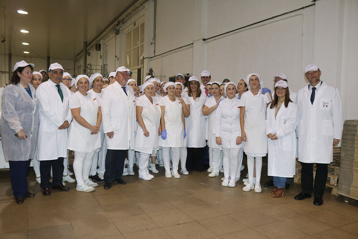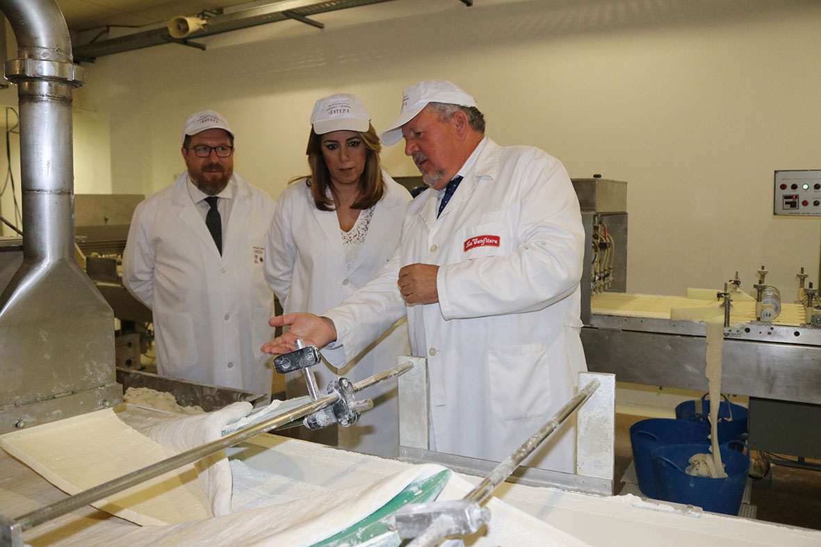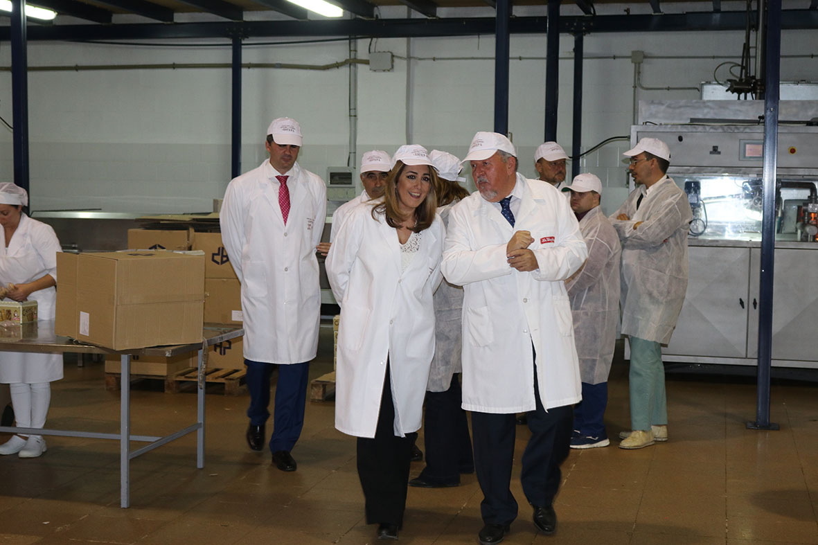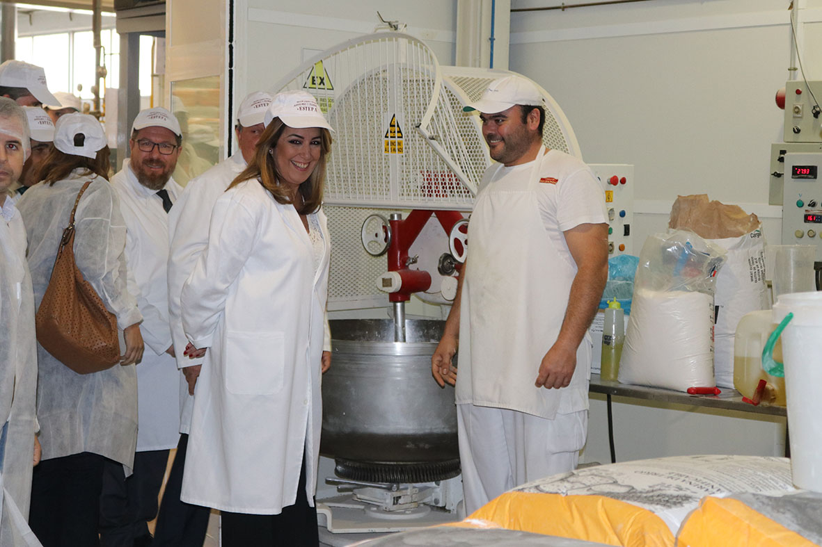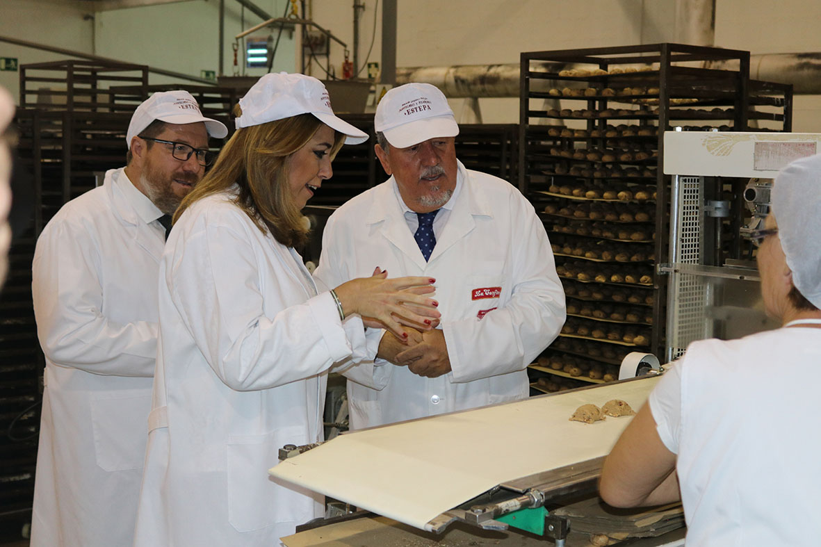 Con unos datos positivos de empleo para Estepa, se ha recibido hoy a Susana Díaz, Presidenta de la Junta de Andalucía en nuestra ciudad. La Presidenta cumple así un año más con su compromiso de visitar una fábrica de mantecados durante la campaña. Esta vez ha sido el turno para Mantecados San Jerónimo, empresa dirigida por la familia De la Cruz Jurado. Joaquín de la Cruz ha acompañado a la Presidenta en una visita que ha recorrido todas sus instalaciones, una fábrica que consiguió romper la estacionalidad del dulce navideño con la elaboración de otros dulces que comercializan todo el año.
