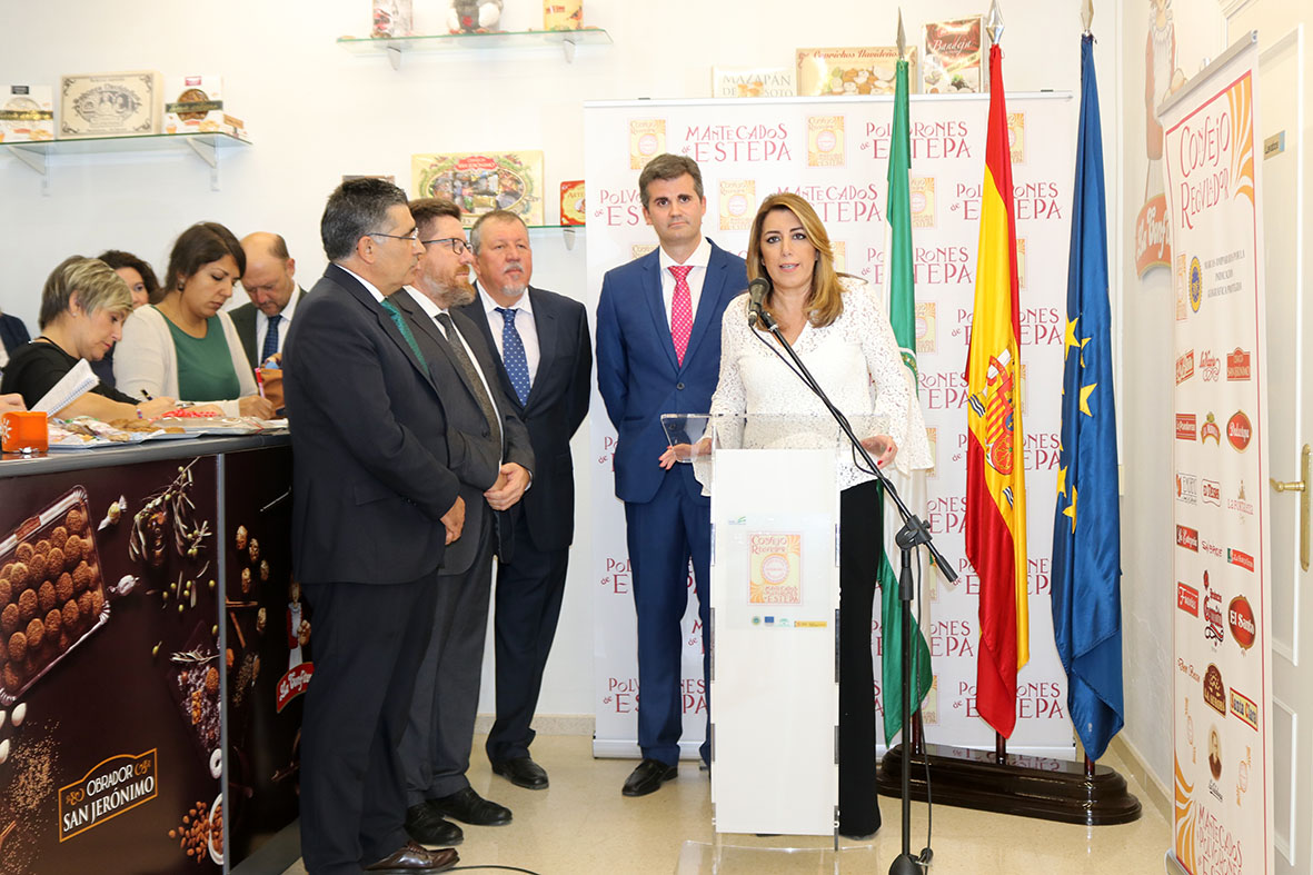 La Presidenta de la Junta de Andalucía ha hecho mención a la magnífica posición que Estepa y su industria de dulces están consiguiendo a nivel internacional. Gracias al apoyo de Extenda, Andalucía ha sido lider en España este año en exportaciones a nivel nacional y ahí Estepa ha participado activamente. Susana Díaz se sentiría orgullosa de ese posible nombramiento de Embajadora de nuestros dulces y de una industria que vuelve a batir record de producción. Díaz apuesta por aumentar ese 10% de producción que alcanza ya la exportación e insiste en romper la estacionalidad de nuestras fábricas como un aliciente para el crecimiento.
