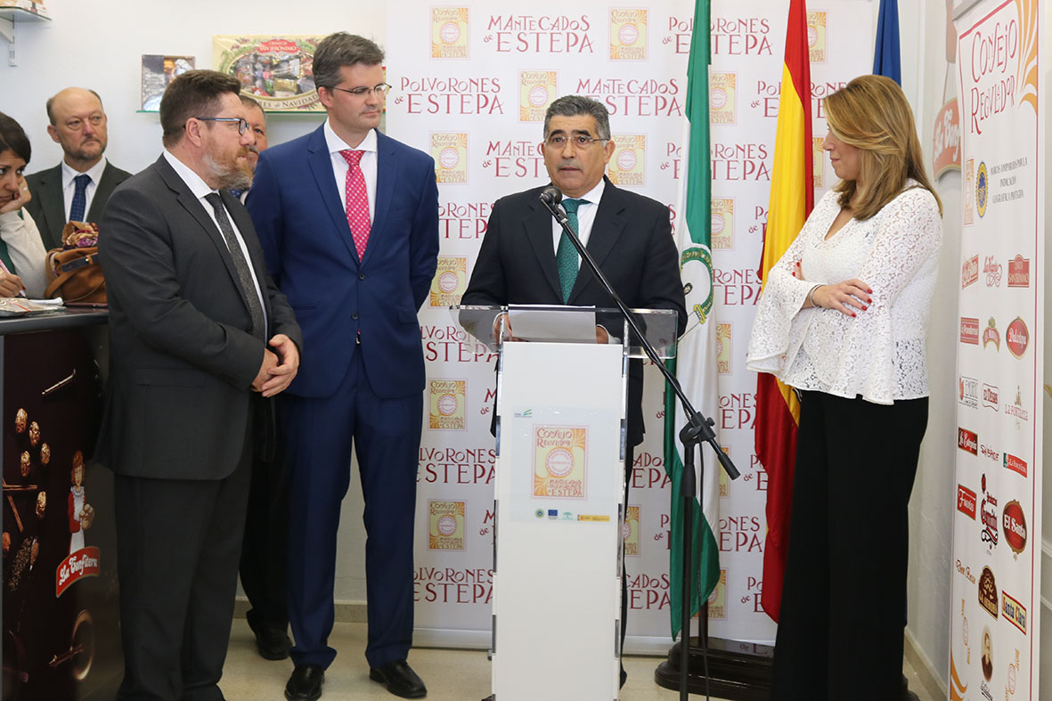 Por su parte el alcalde de Estepa, Antonio Jesús Muñoz ha agradecido la presencia de Susana Díaz en esta cuarta visita a nuestra ciudad y a nuestra industria. El alcalde ha hecho además un llamamiento al turista que nos visita para que además de nuestras fábricas se acerquen a conocer el resto de nuestro rico patrimonio. El alcalde ha recogido el guante que le ha lanzado Eusebio Olmedo de tramitar todo lo necesario para nombrar a la Presidenta de la Junta de Andalucía como embajadora de los Mantecados y Polvorones de Estepa.