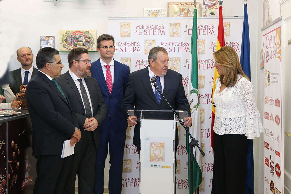 Eusebio Olmedo, Presidente del Consejo Regulador de la IGP Mantecados y Polvorones de Estepa ha aprovechado la ocasión para pedir a la Presidenta la creación de una campaña de promoción a nivel nacional en la que se coloque a Estepa como destino turístico de la Navidad y contemple nuestros dulces como centro de esa promoción. Olmedo ha anunciado algunos de los actos de la Semana del Mantecado que organiza Prodetur afirmando que nuestros mantecados serán parte integrante de los actos conmemorativos de la efemérides del 25 Aniversario de la Expo 92. El Presidente de la IGP ha vuelto a recordar que nuestras industrias cumplen un importantísimo papel social con respecto al empleo que produce en Estepa con una producción de veinte mil toneladas y una facturación de 70 millones de euros.