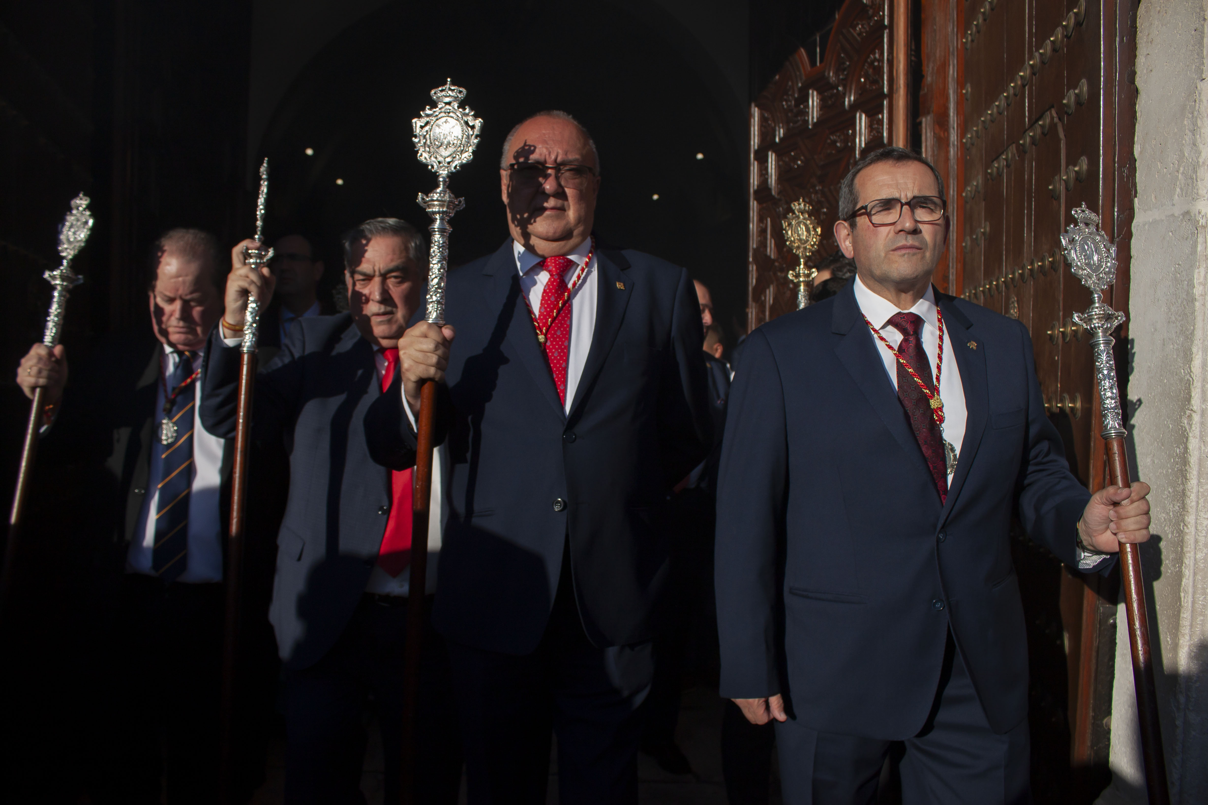 El cortejo procesional ha sido presidido por el hermano Mayor Antonio J. Martín y el alcalde de la ciudad, Antonio J. Muñoz, junto al resto de componentes de la hermandad.