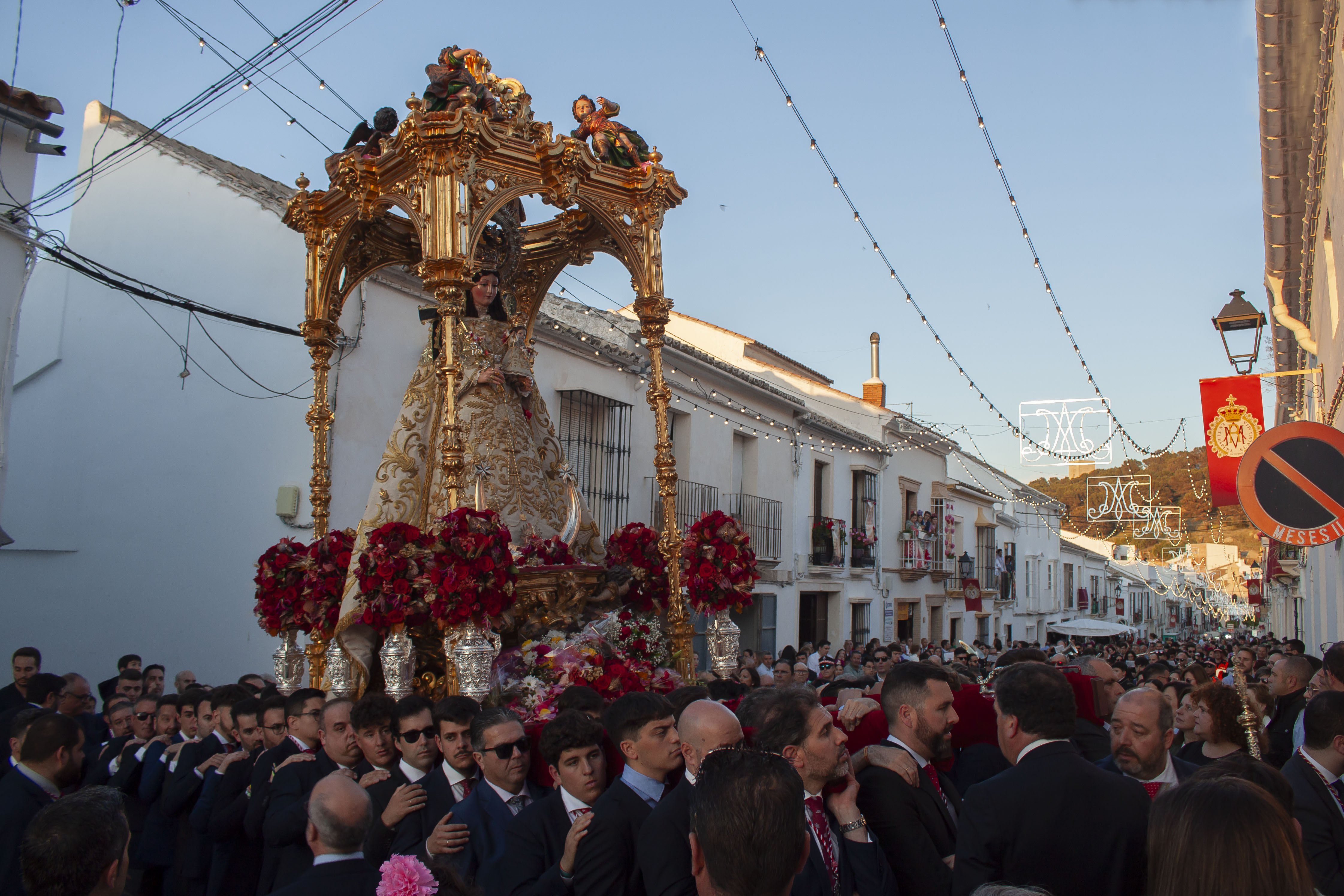 El momento en que las andas de la Virgen encamina la calle Roya, con el sol cayendo de frente y repleta de estepeñas y estepeños esperando su paso, es uno de los instantes más esperados.