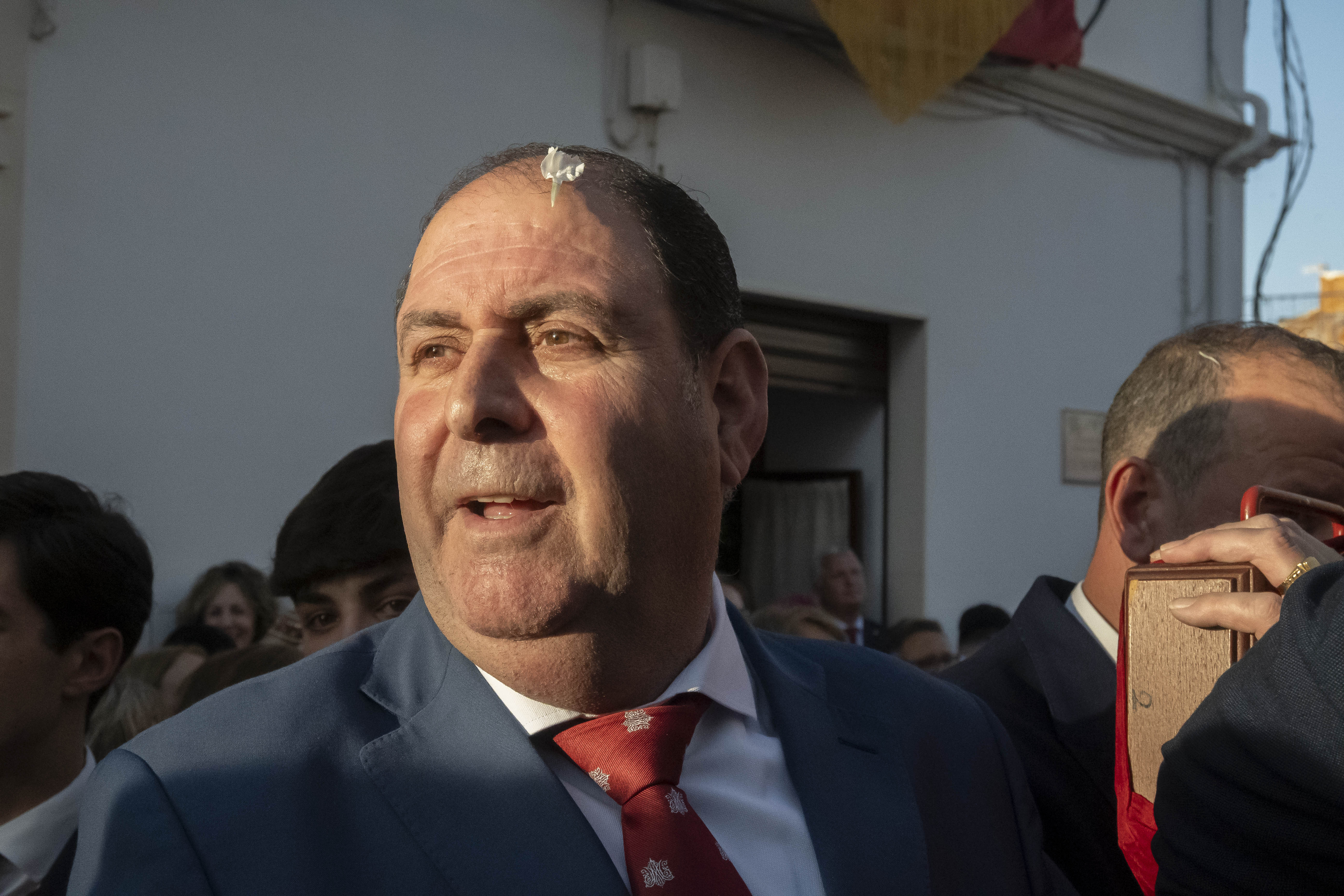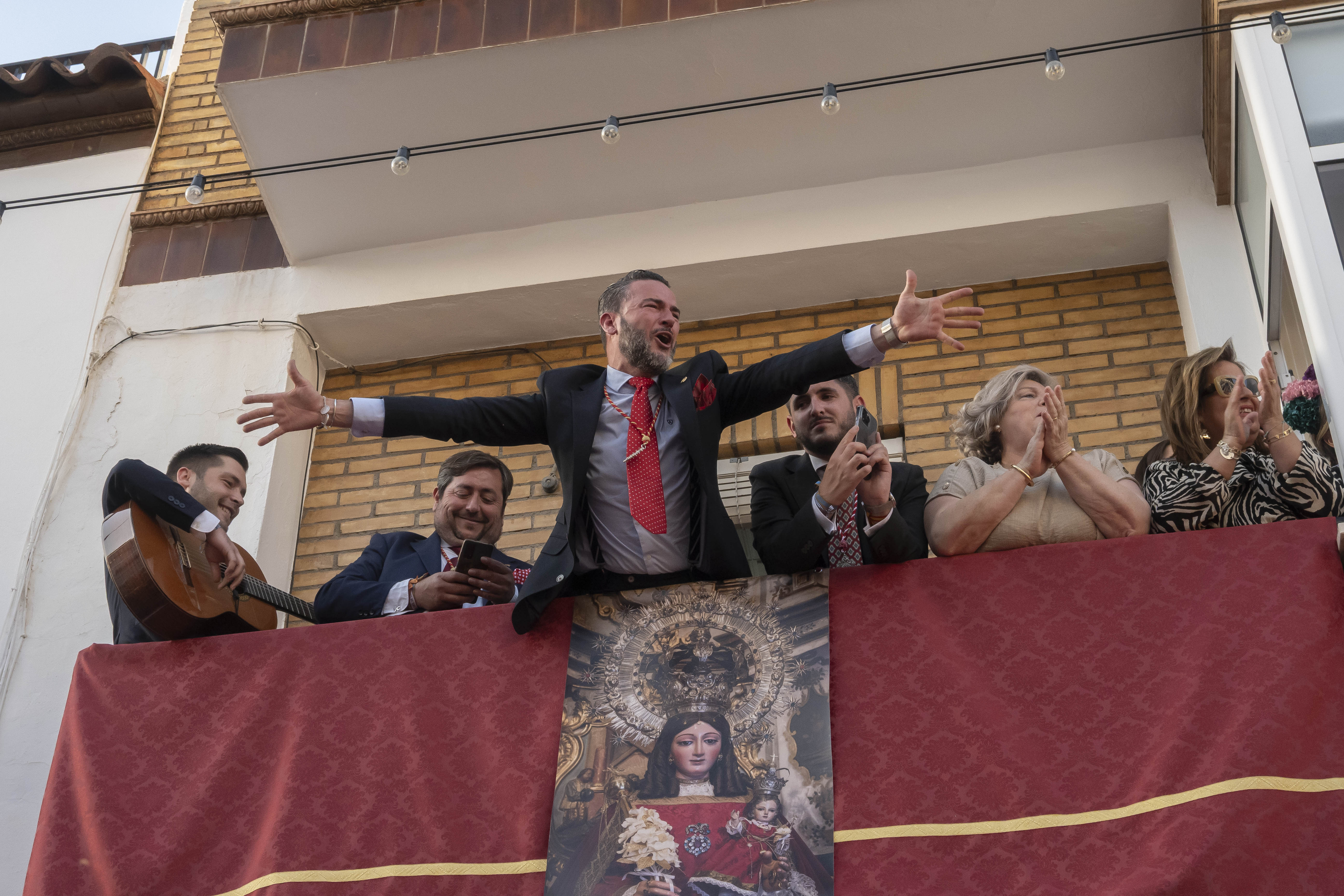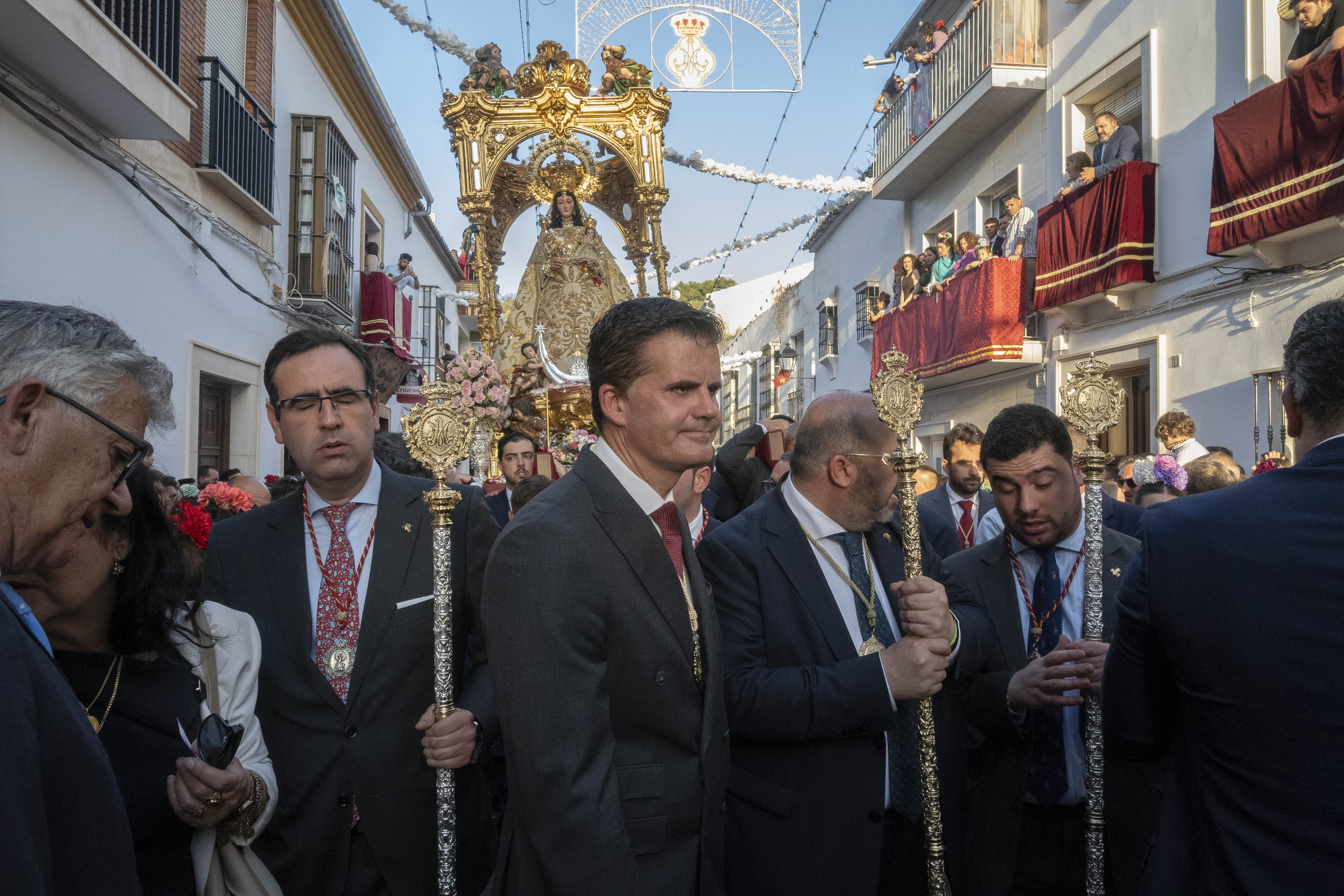 El alcalde de Estepa, Antonio Jesús Muñoz, ha acompañado a la junta directiva de la hermandad delante del paso de la Virgen, junto al hermano Mayor, Antonio J. Martín; el párroco de Santa María y San Sebastián, Manuel Ávalos Fernández y el Vicario Parroquial, Andrés Rodríguez Sánchez.