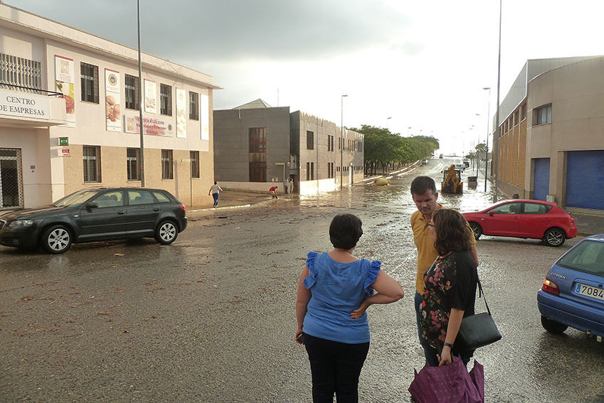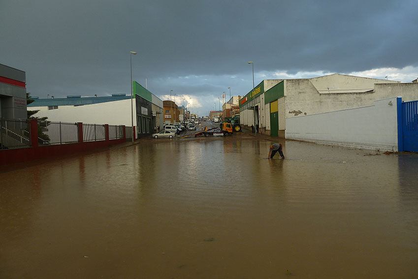En cambio, el Polígono Industrial Sierra Sur, situado en la parte más baja de la ciudad, ha sufrido una importante inundación al no poder evacuar tanta agua las arquetas de las dos calles principales, la avenida de la Canela y Juan Antonio Blanco.