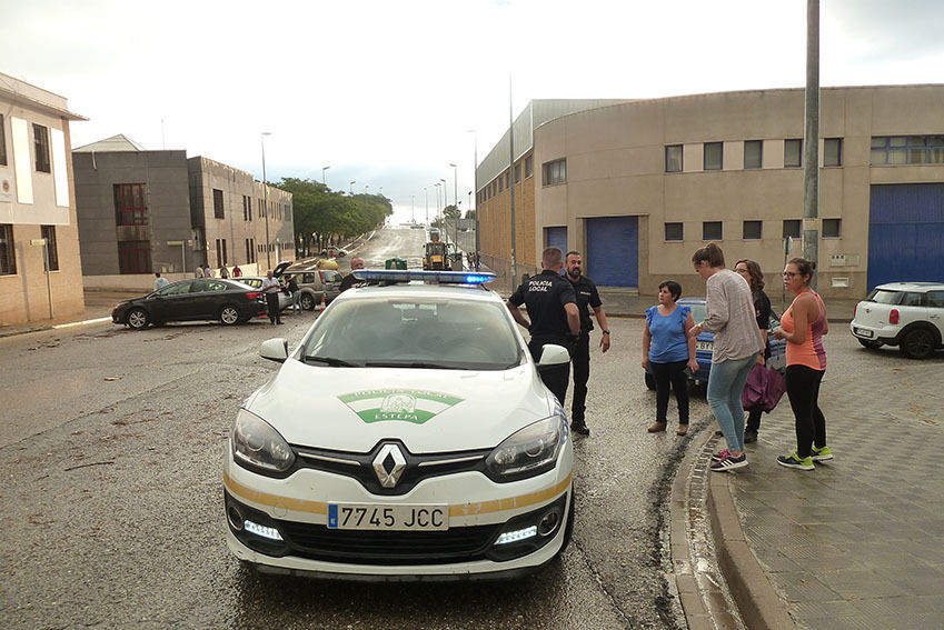 Una fuerte tromba de agua ha descargado hoy sobre las seis y media de la tarde en la localidad de Estepa. La tormenta apenas duraba unos diez o quince minutos, pero la fuerza de la lluvia y granizo ha sido de tal magnitud que en los primeros cinco minutos ya se contabilizaban en torno a los treinta y cinco litro de agua por metro cuadrado, lo que ha provocado inundaciones leves en algunas viviendas.