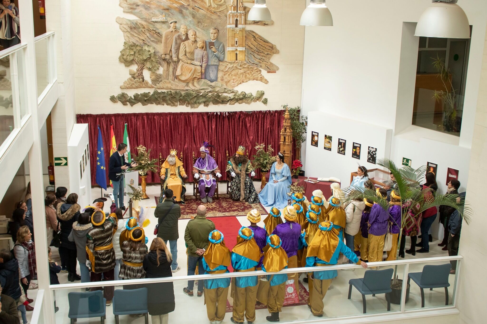 En estas horas previas a la cabalgata de Reyes Magos 2024, ya hemos recibido la visita de SSMM Los Reyes Magos y la Estrella de la Ilusión. A primera hora de la mañana eran recibidos por el alcalde de Estepa, Antonio Jesús Muñoz en el Ayuntamiento, donde han recibido la llave de la ciudad. Seguidamente y tras saludar a la ciudad desde los balcones del Ayuntamiento, han paseado por las calles de Estepa con visitas tradicionales, como la del convento de las Hermanas de la Cruz, la Peña Bética y la sede de ASEMI, donde las niñas y niños de la asociación han recibido algunos de sus regalos, de manos de los Reyes y la Estrella de la Ilusión.