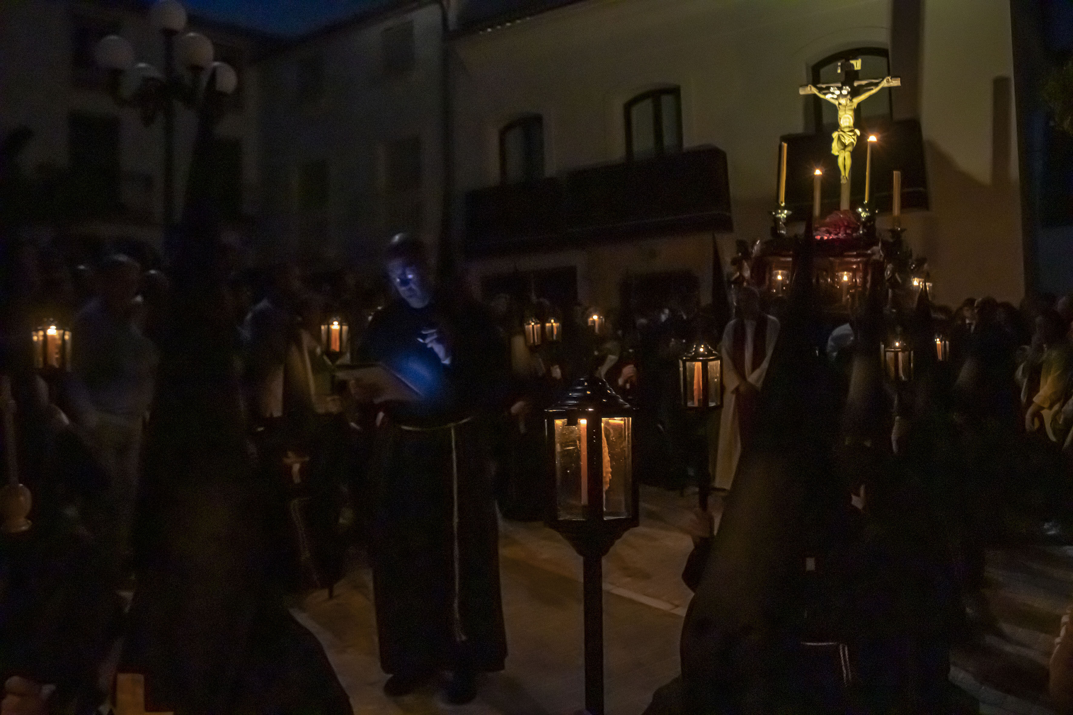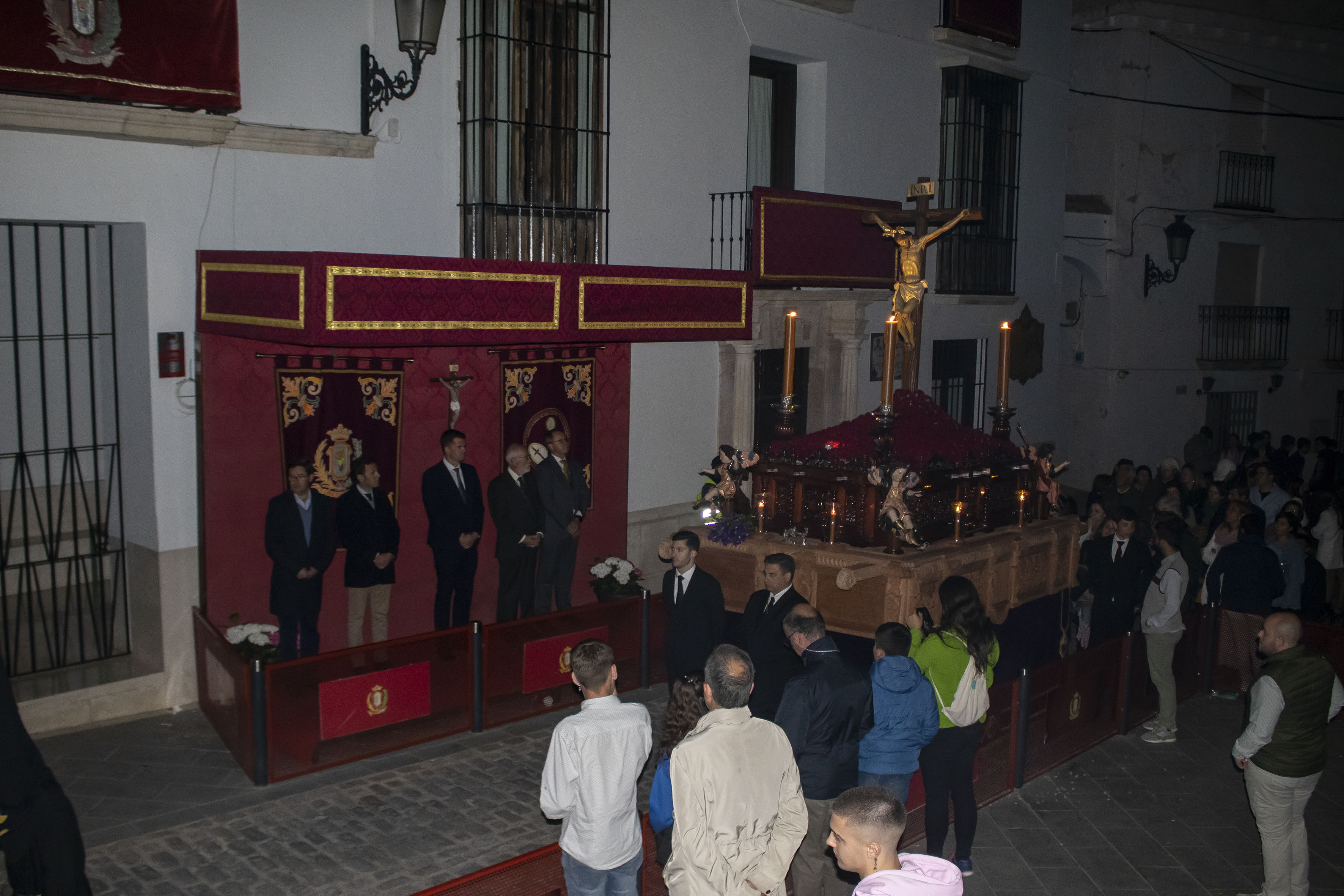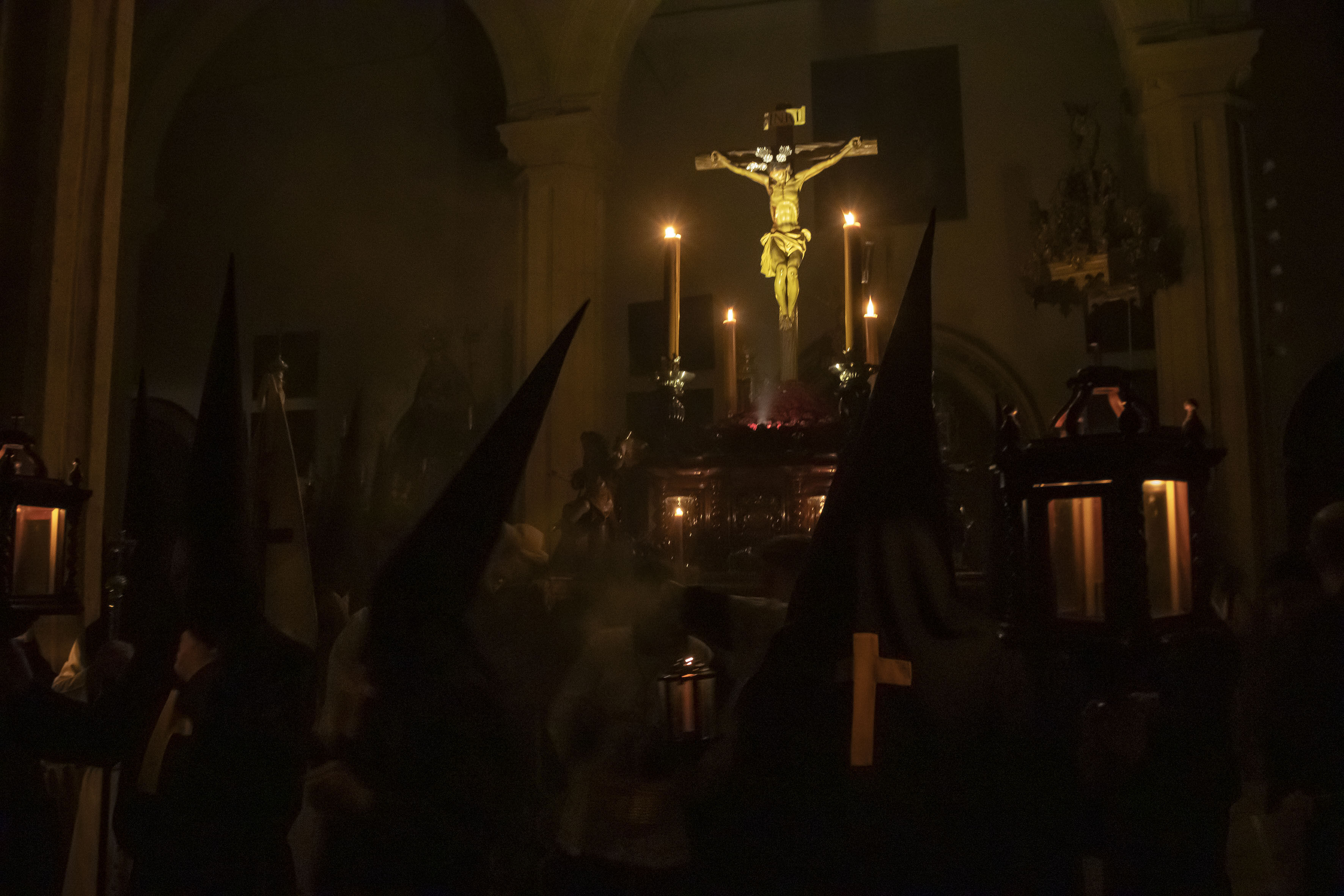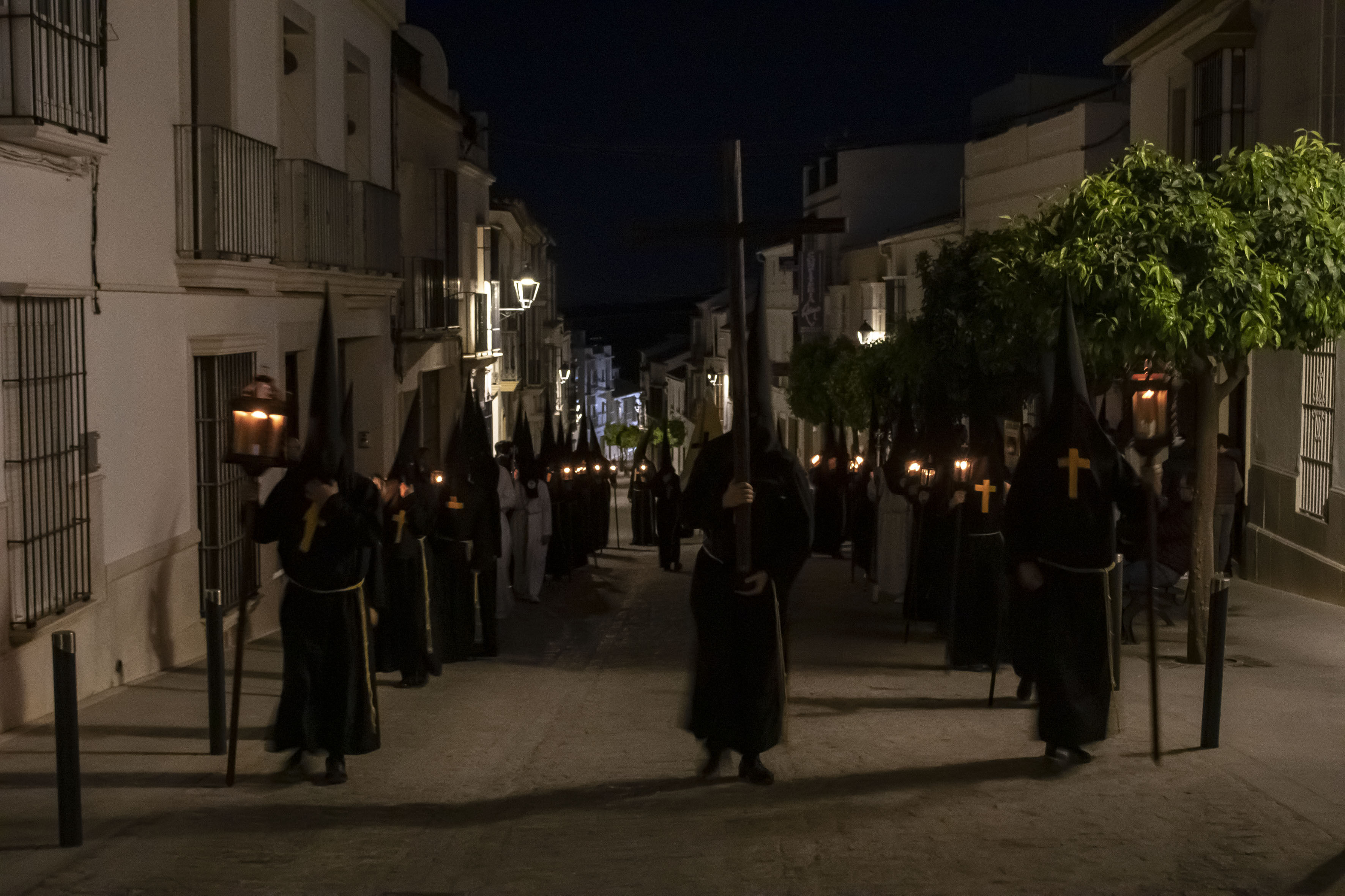La Estación de Penitencia de esta Cofradía consiste en un Vía Crucis, en el cual los nazarenos se arrodillan en cada una de las estaciones. Resalta el silencio (no lleva música), la austeridad y la seriedad del cuerpo de nazarenos que hacen la Estación de Penitencia.