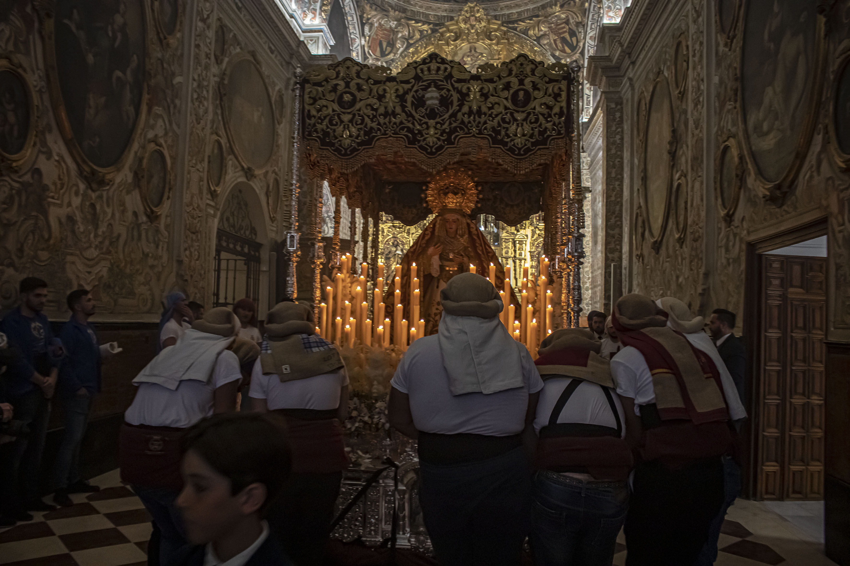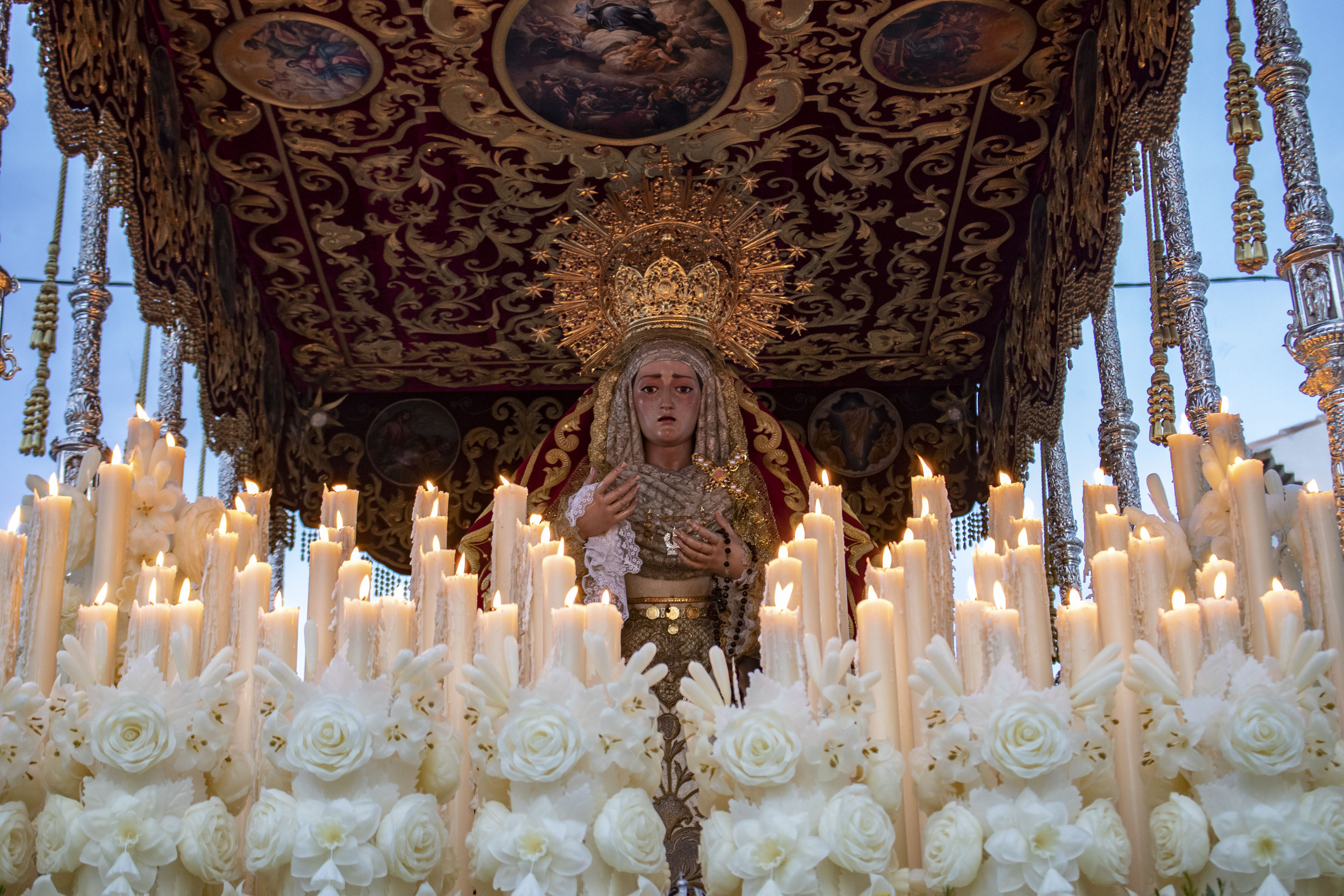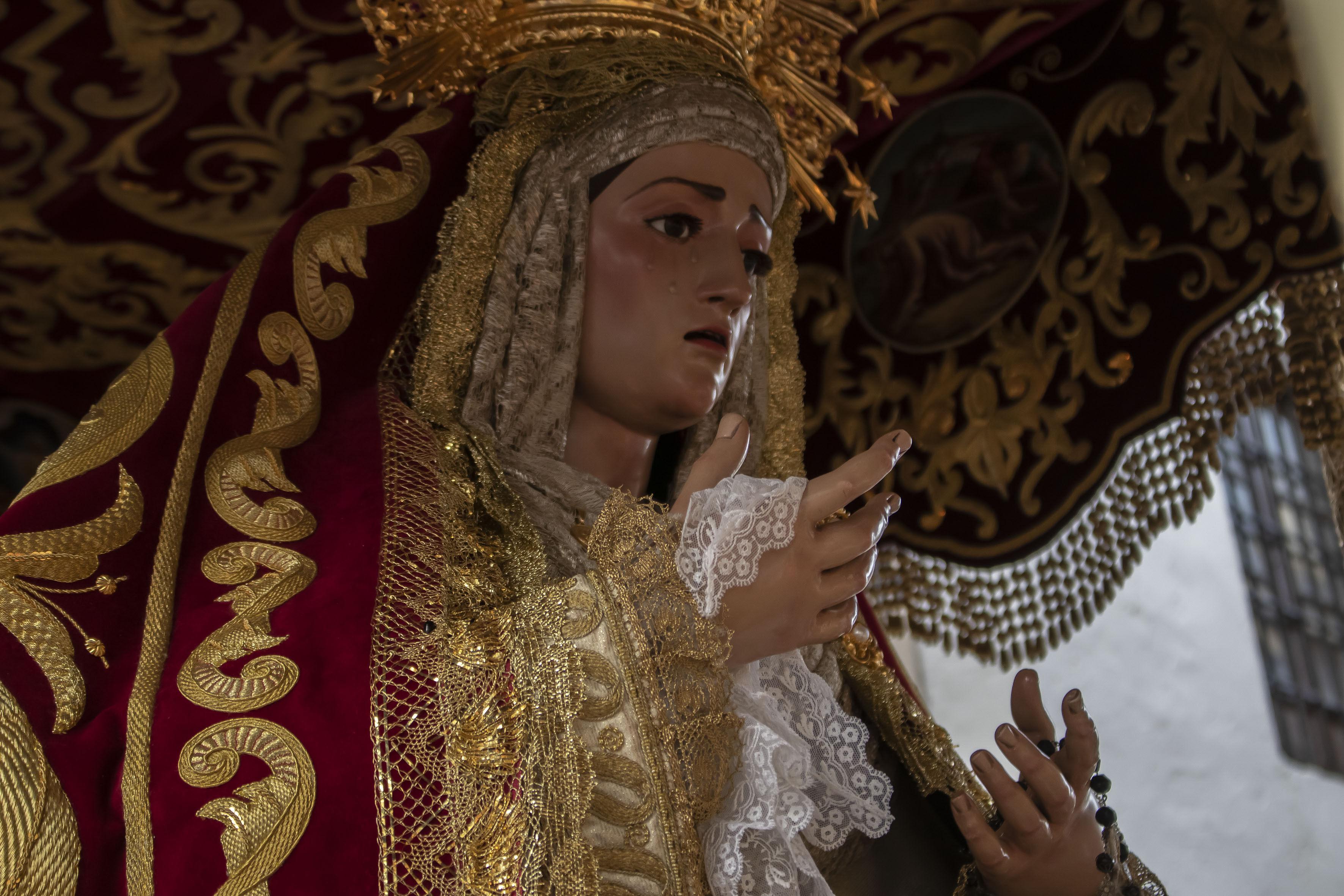 Bajo palio procesiona la imagen de María Santísima de los Dolores.