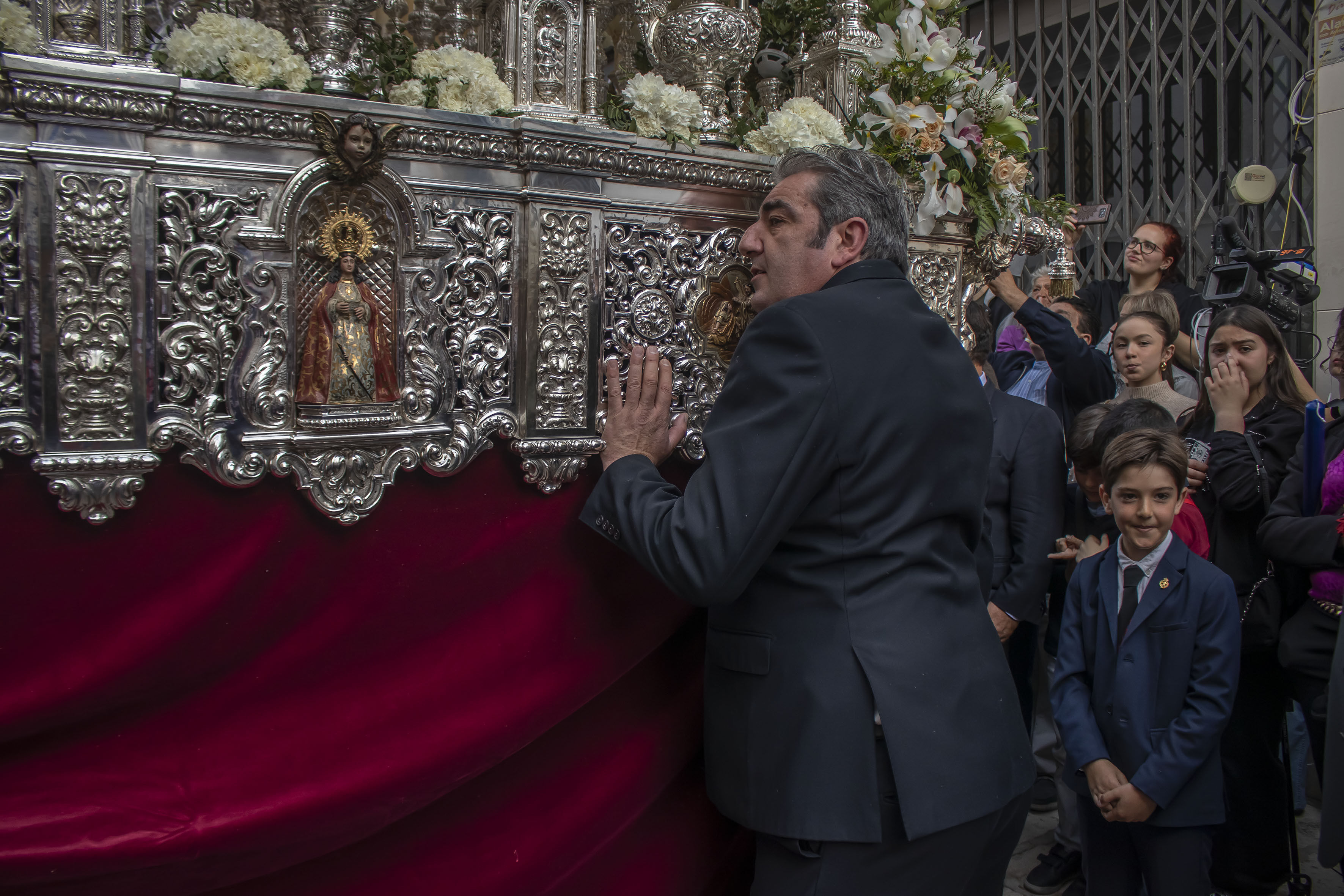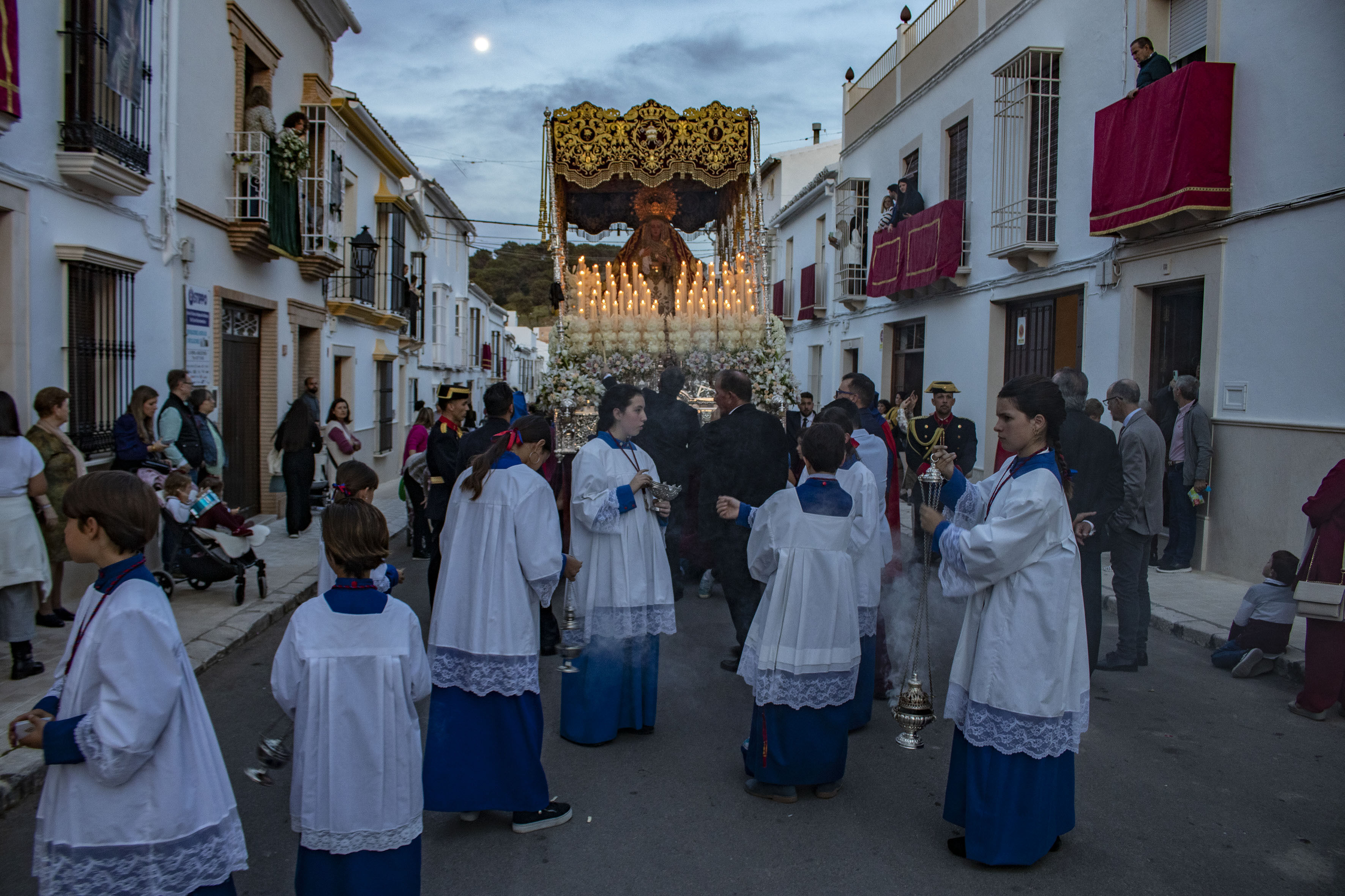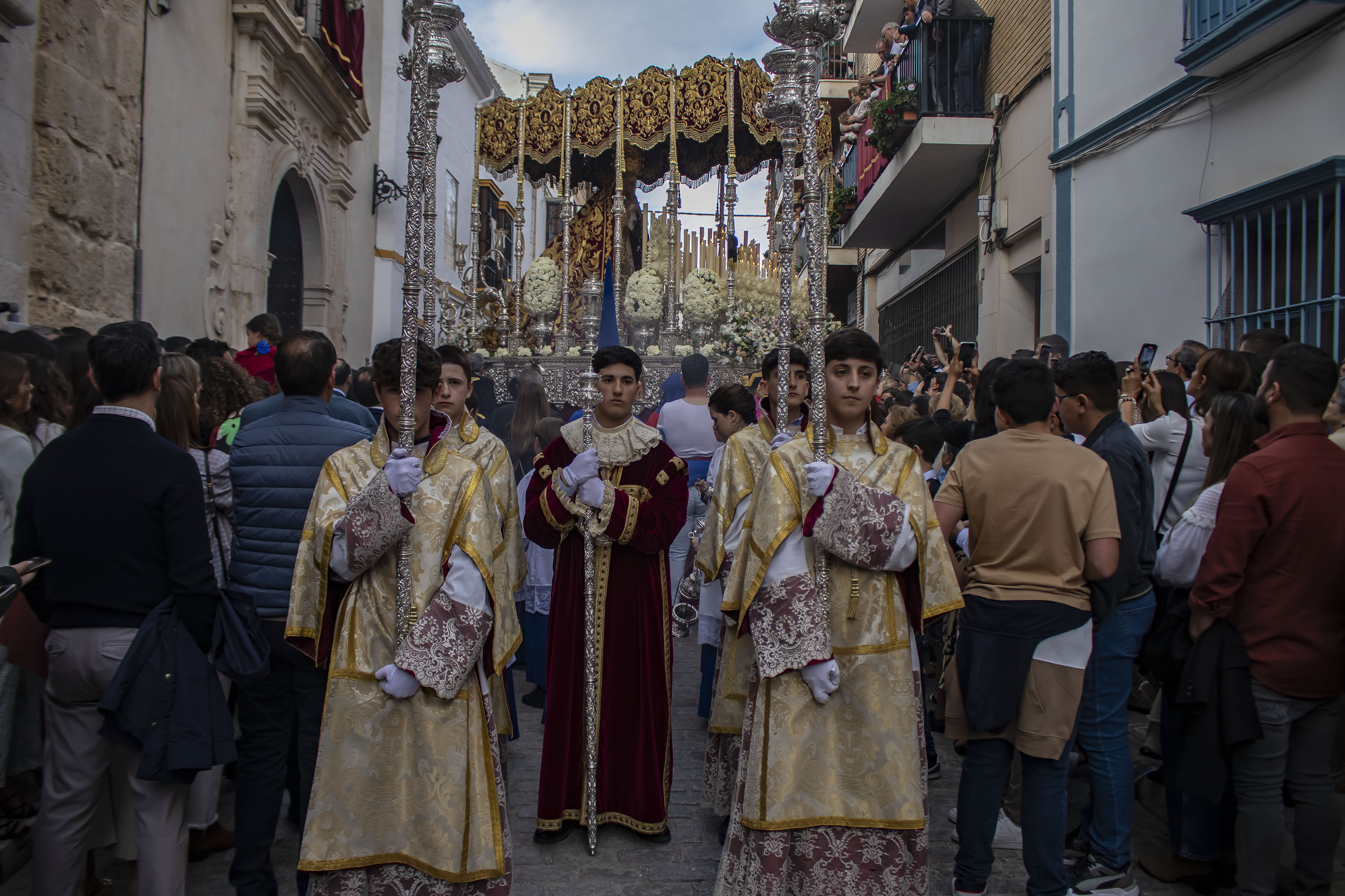 Bajo palio procesiona la imagen de María Santísima de los Dolores.