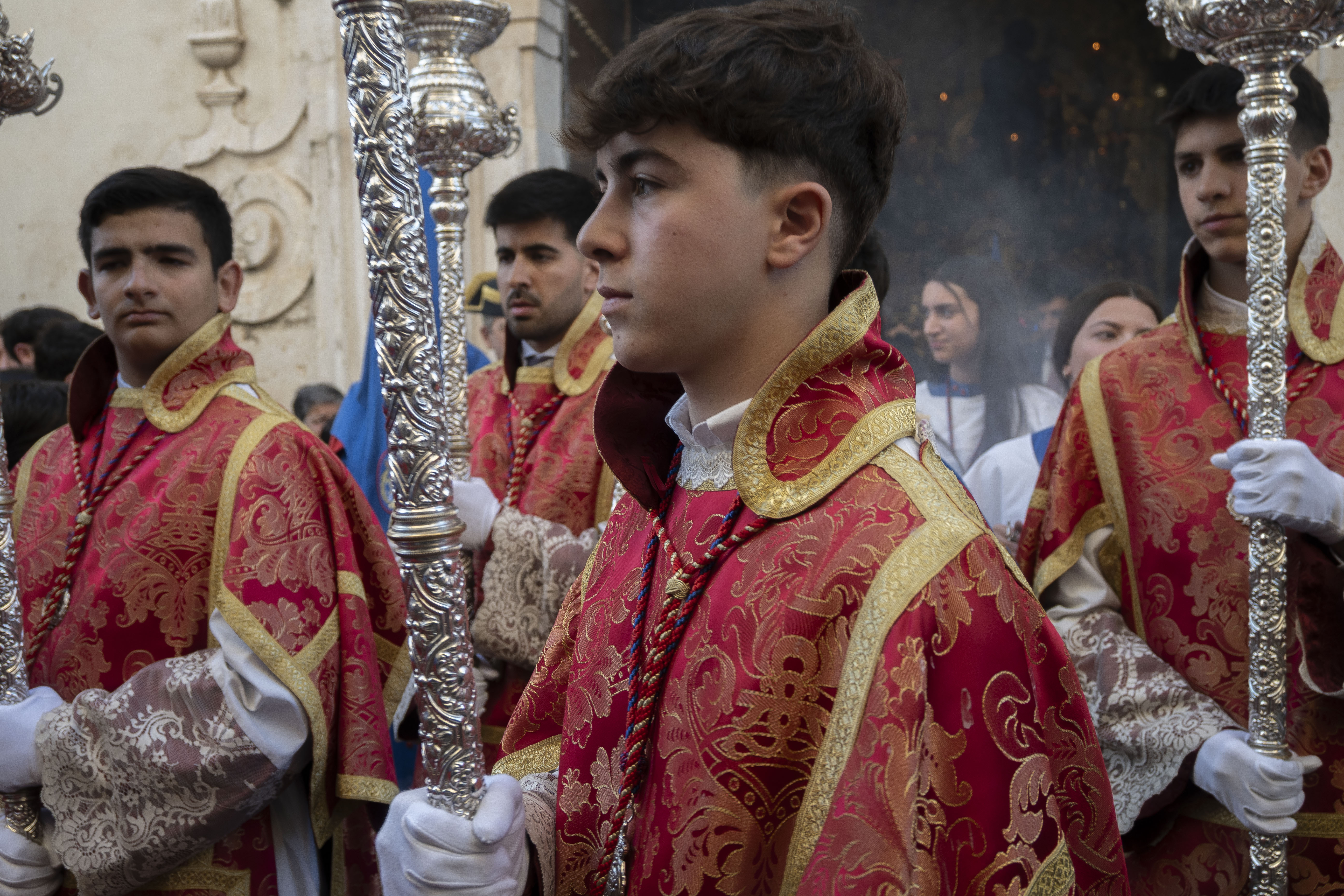 Capataces: Francisco Muñoz Sánchez y Antonio Jesús Marín Fernández en San Pedro. Antonio Borrego González y Jesús Rodríguez Rodríguez en el palio.
