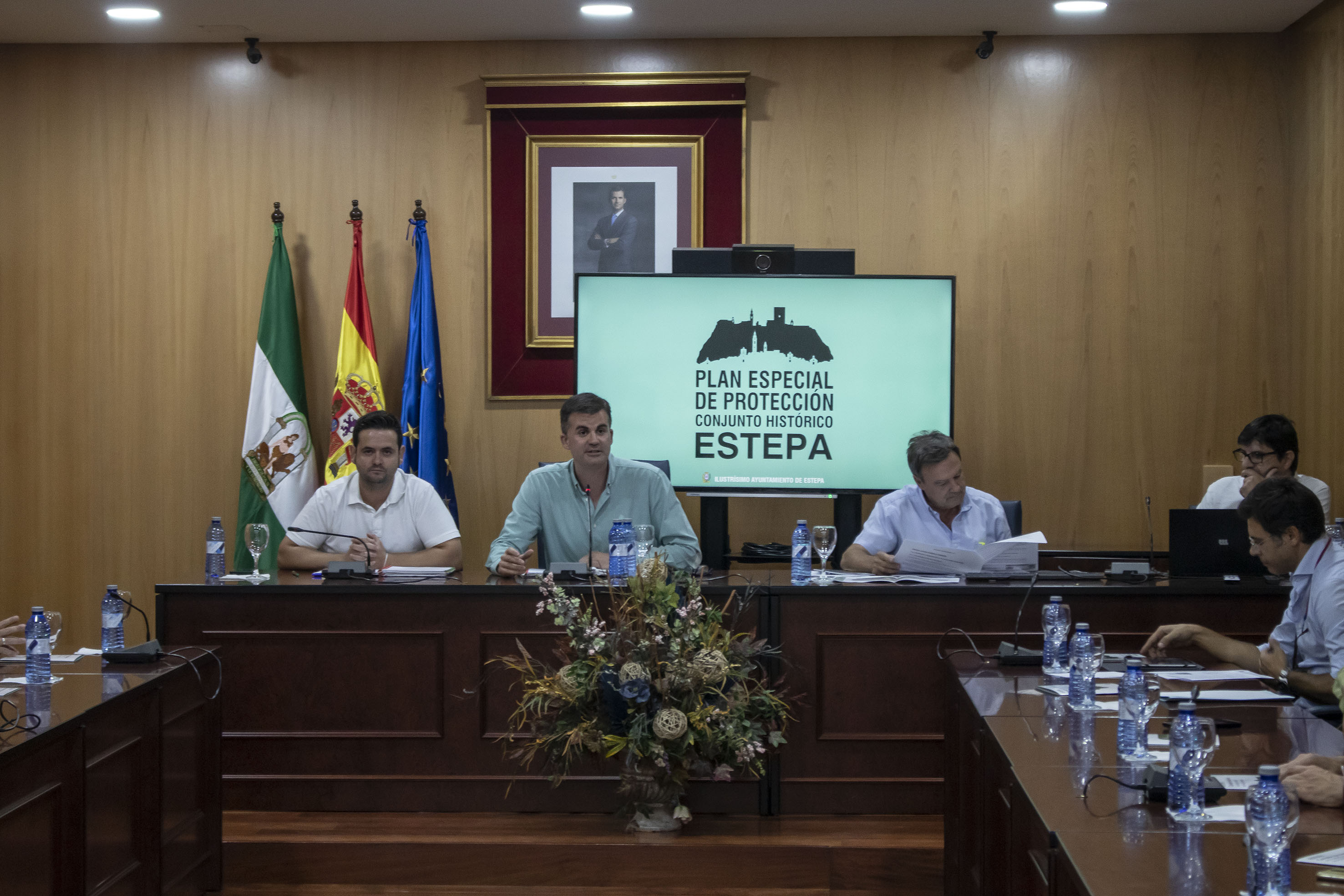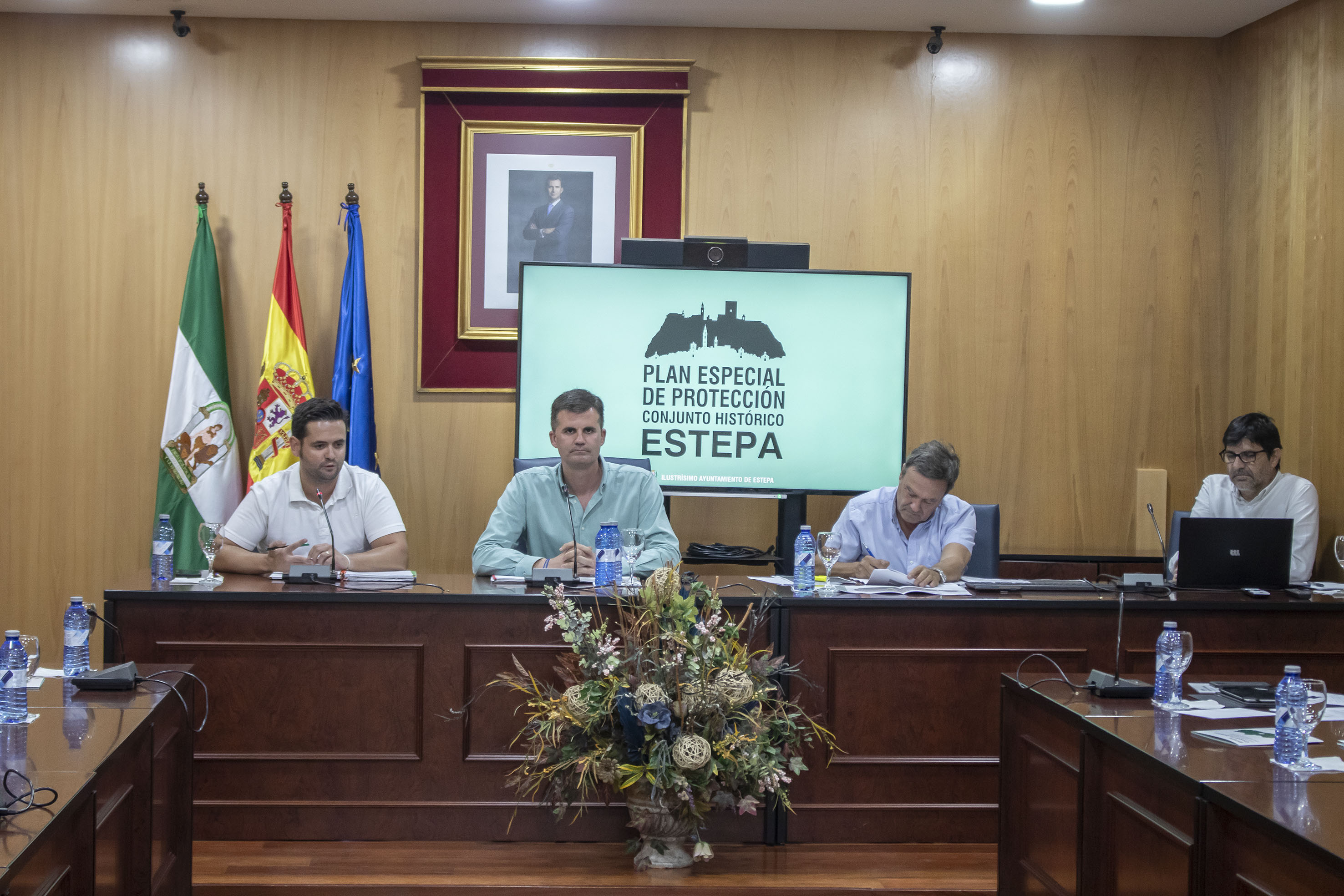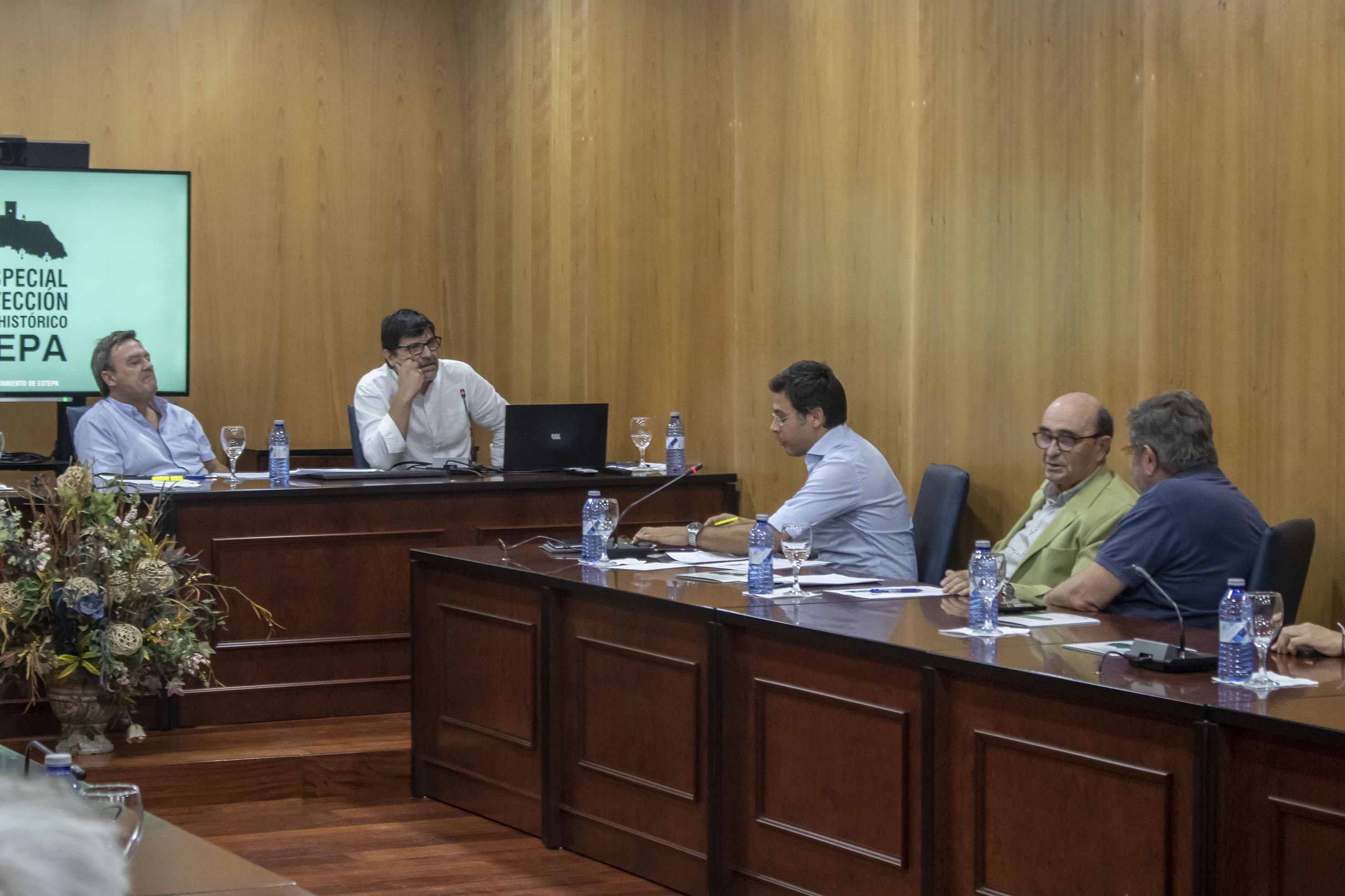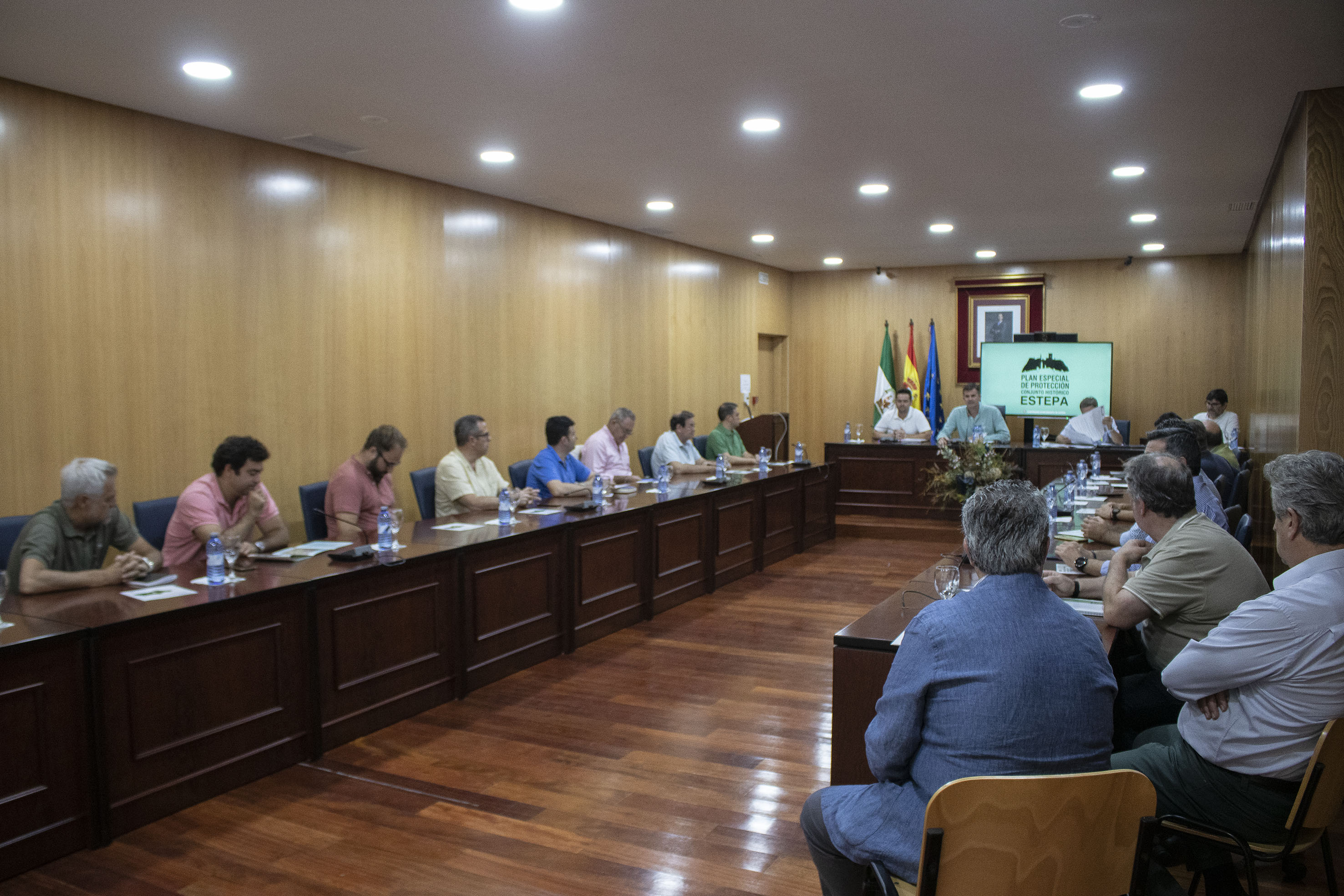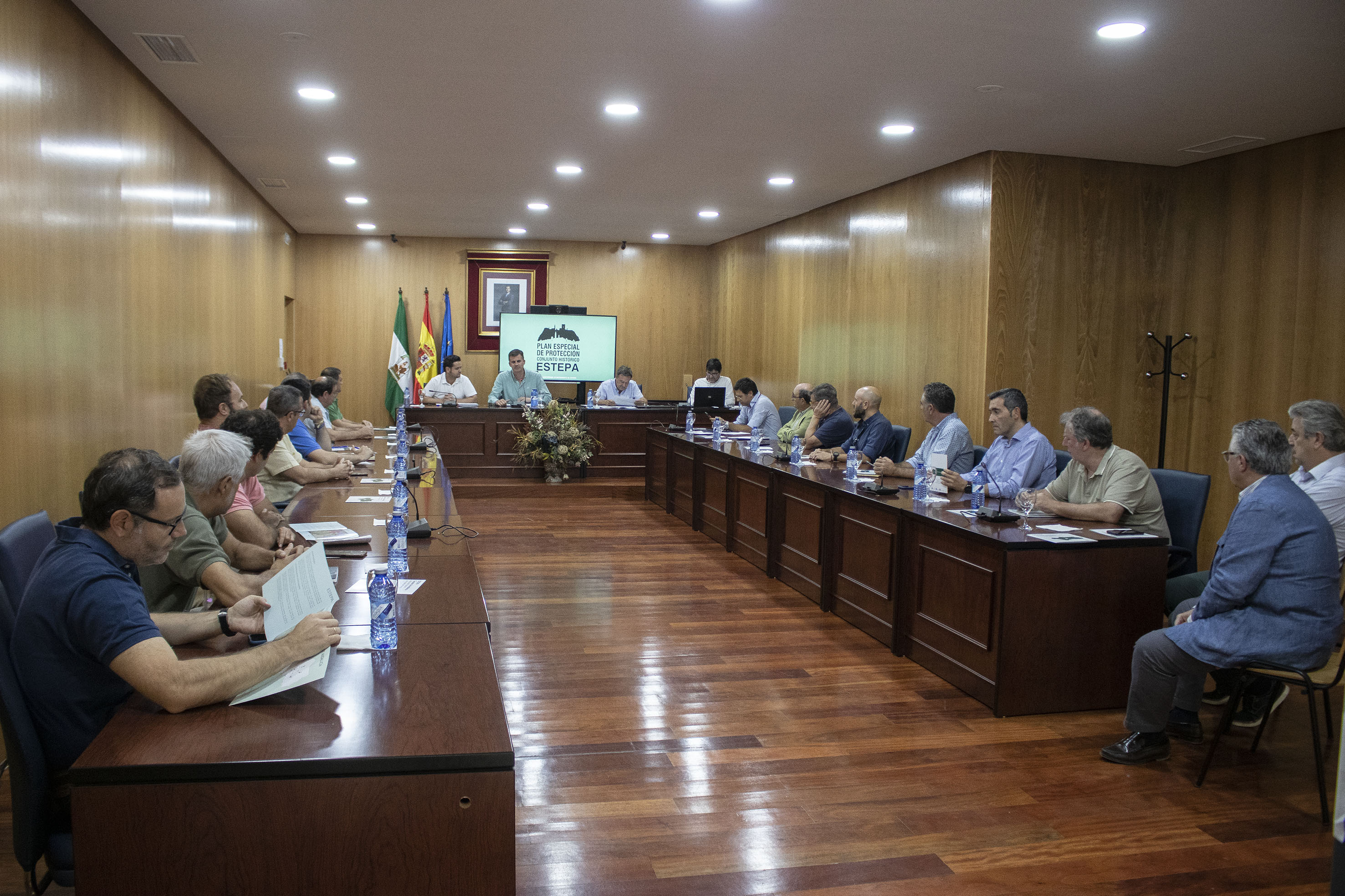 Dentro de ese proceso de información pública, el ayuntamiento en aras de la transparencia y gobierno participativo, celebró ayer en el Salón de Plenos del Ayuntamiento de Estepa una reunión de la mesa técnica del Plan Especial del Conjunto Histórico en la que los arquitectos municipales José Manuel Jiménez y Antonio García Calderón, el concejal de Urbanismo David Gamito y el alcalde Antonio Jesús Muñoz, explicaron a los técnicos que normalmente trabajan sus proyectos en el TM de Estepa las cuestiones de mayor relevancia del amplio trabajo que ha supuesto el plan, sus objetivos y todas las cuestiones técnicas de mayor relevancia.