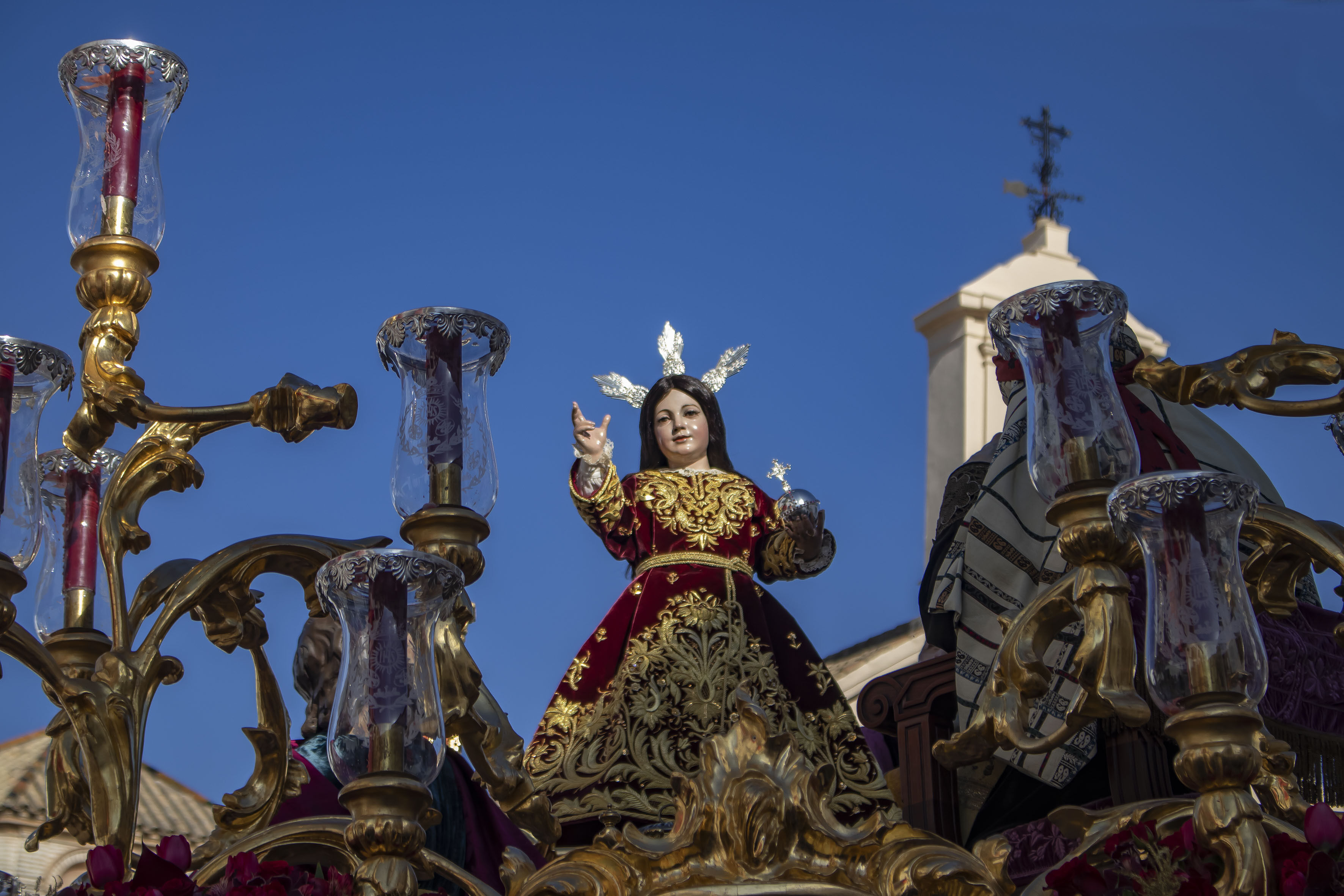 La imagen del Dulce Nombre de Jesús es obra anónima del s. XVII, tallada en madera de cedro y policromada, de cuerpo entero con sudario y de pelo natural. La Virgen de la Paz, es obra del escultor imaginero don Francisco Buiza Fernández, adquirida por la Hermandad en 1981.