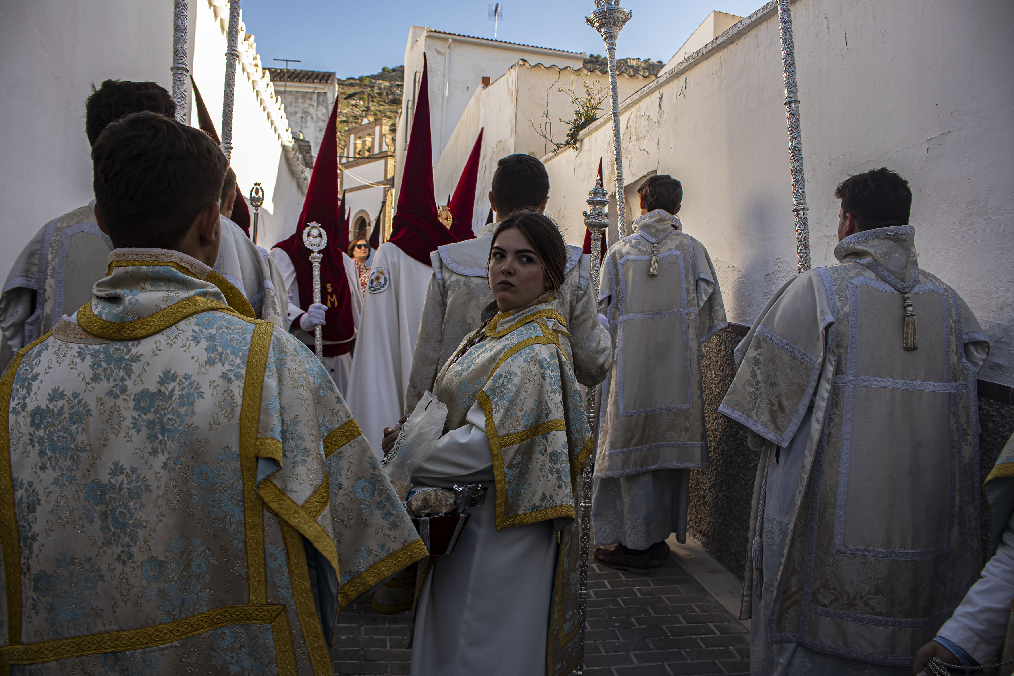 Esta Hermandad, conocida por los estepeños como "El Niño Perdío", es la Hermandad más antigua de las que procesionan en Estepa. La salida del palio va acompañada de una suelta de palomas blancas. Destaca el paso de la cofradía por la estrechez de la calle San Marcos, y por la Carrera Oficial, al igual que su llegada al Templo.