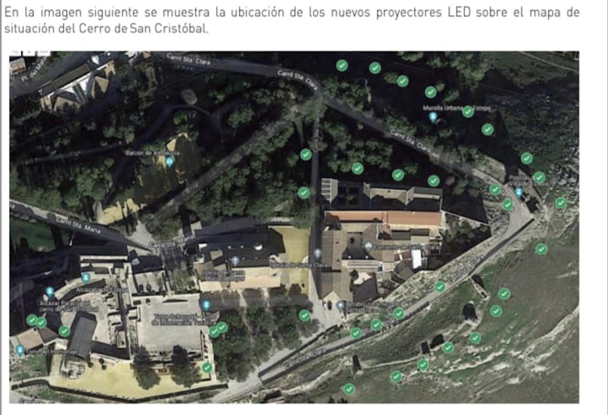 Con la instalación de 35 nuevos proyectores LED de la marca Artesolar, modelo Omega, de 40W y 100W de potencia, y una temperatura de color de 3000K, hemos logrado una luz cálida que cumple con la normativa vigente sobre iluminación artística. Esto no solo resalta la belleza de nuestro cerro, sino que también lo hace de manera eficiente y respetuosa con el medio ambiente.