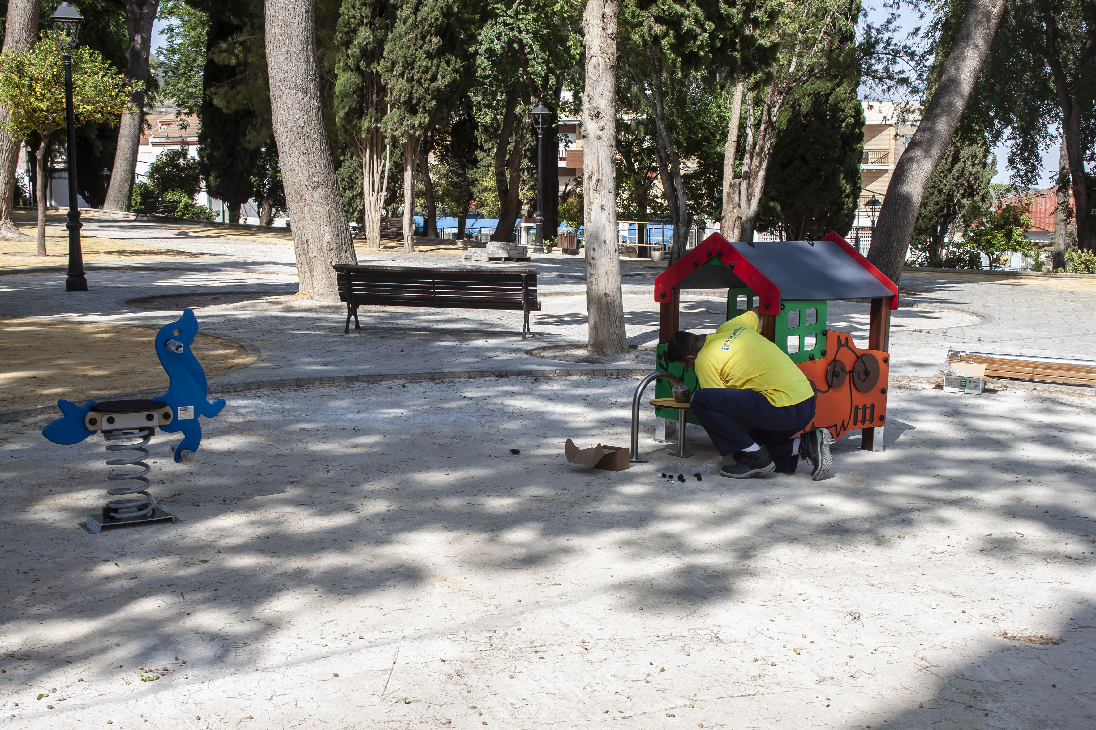 Hoy han comenzado las obras de instalación de los nuevos juegos infantiles que se van a instalar en el parque Príncipe de Asturias en la Avenida de Andalucía de Estepa.