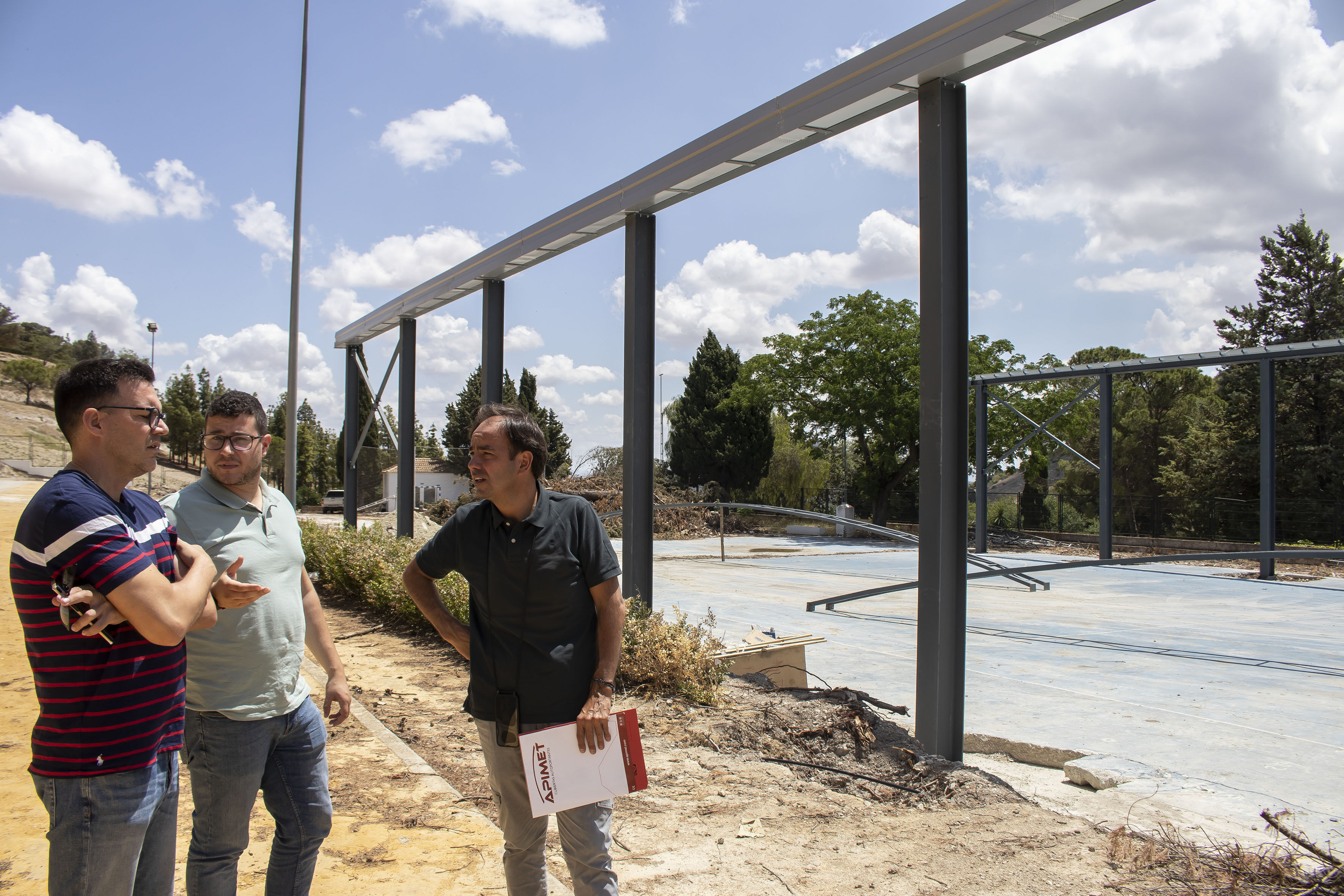 El alcalde de Estepa en funciones, Antonio Jesús Muños y el concejal de Deporte en funciones, Manuel Rodríguez, han visitado hoy las obras para comprobar que avanzan según lo previsto.