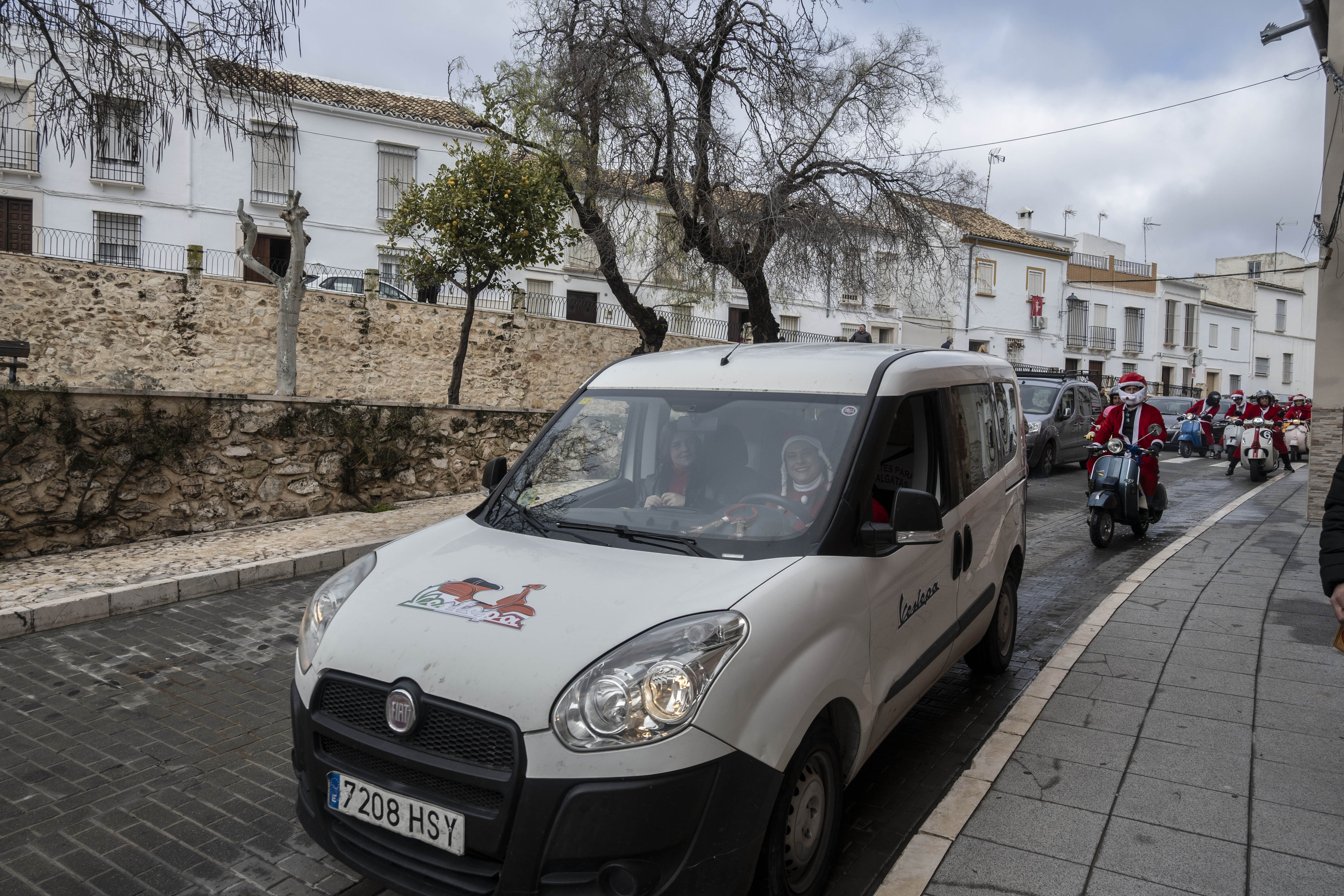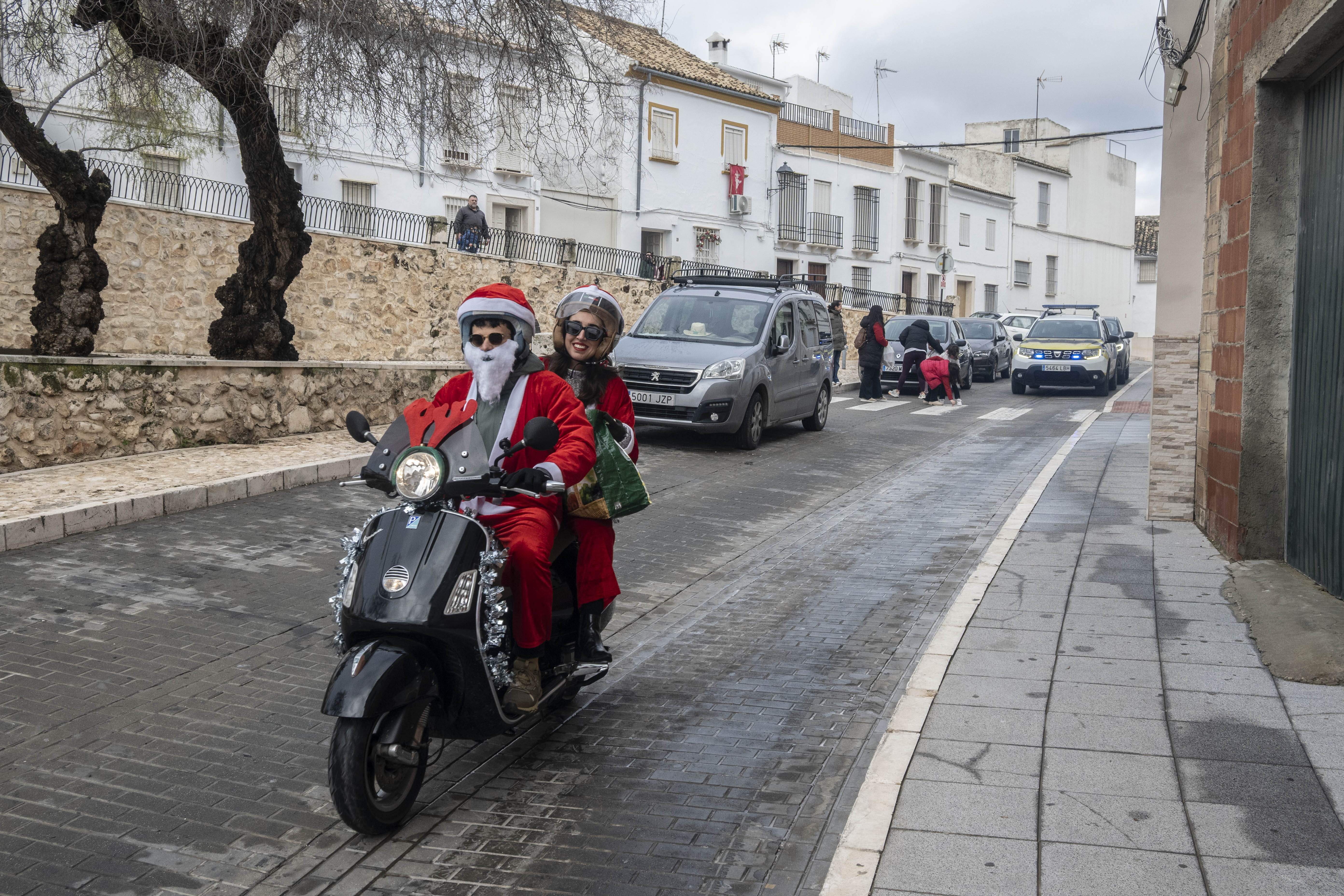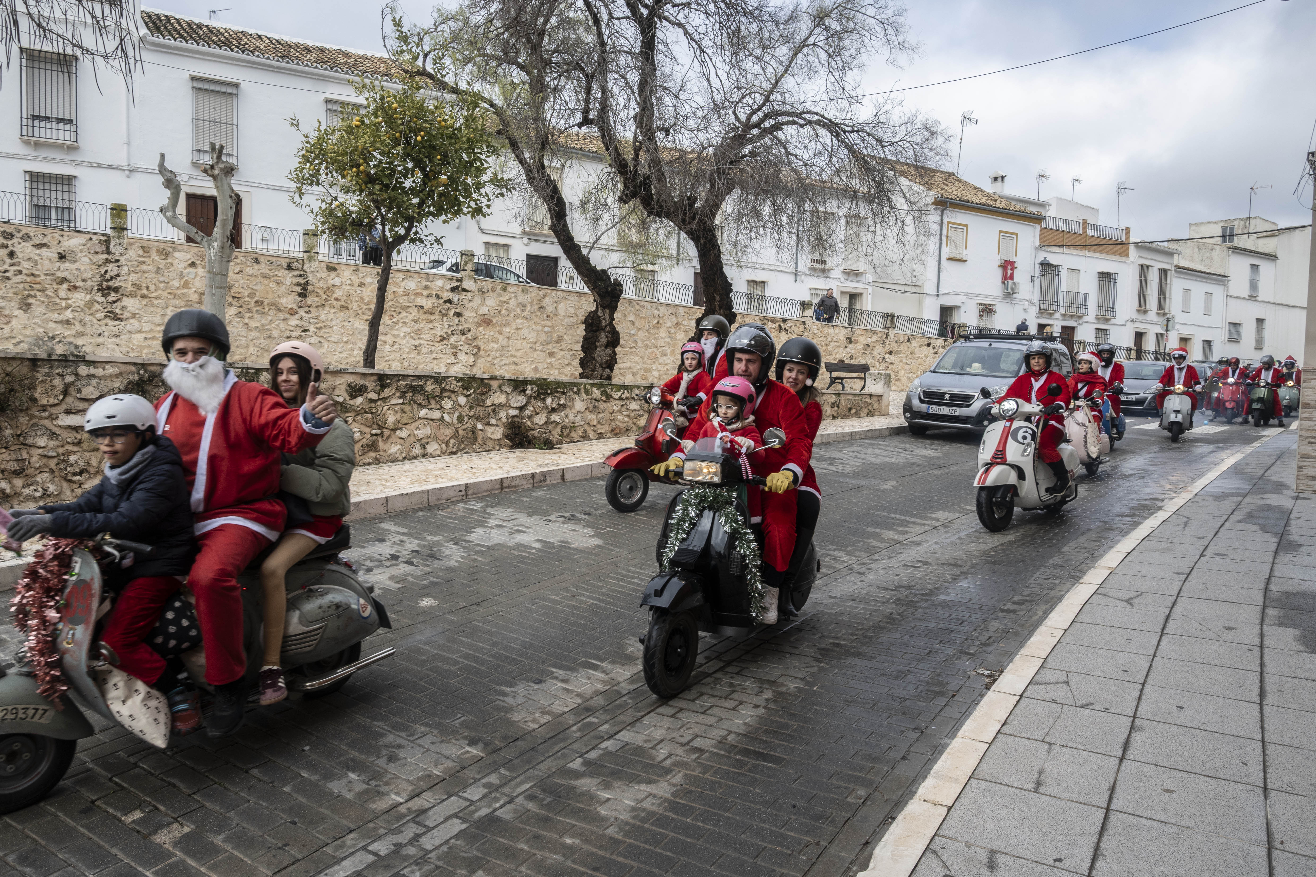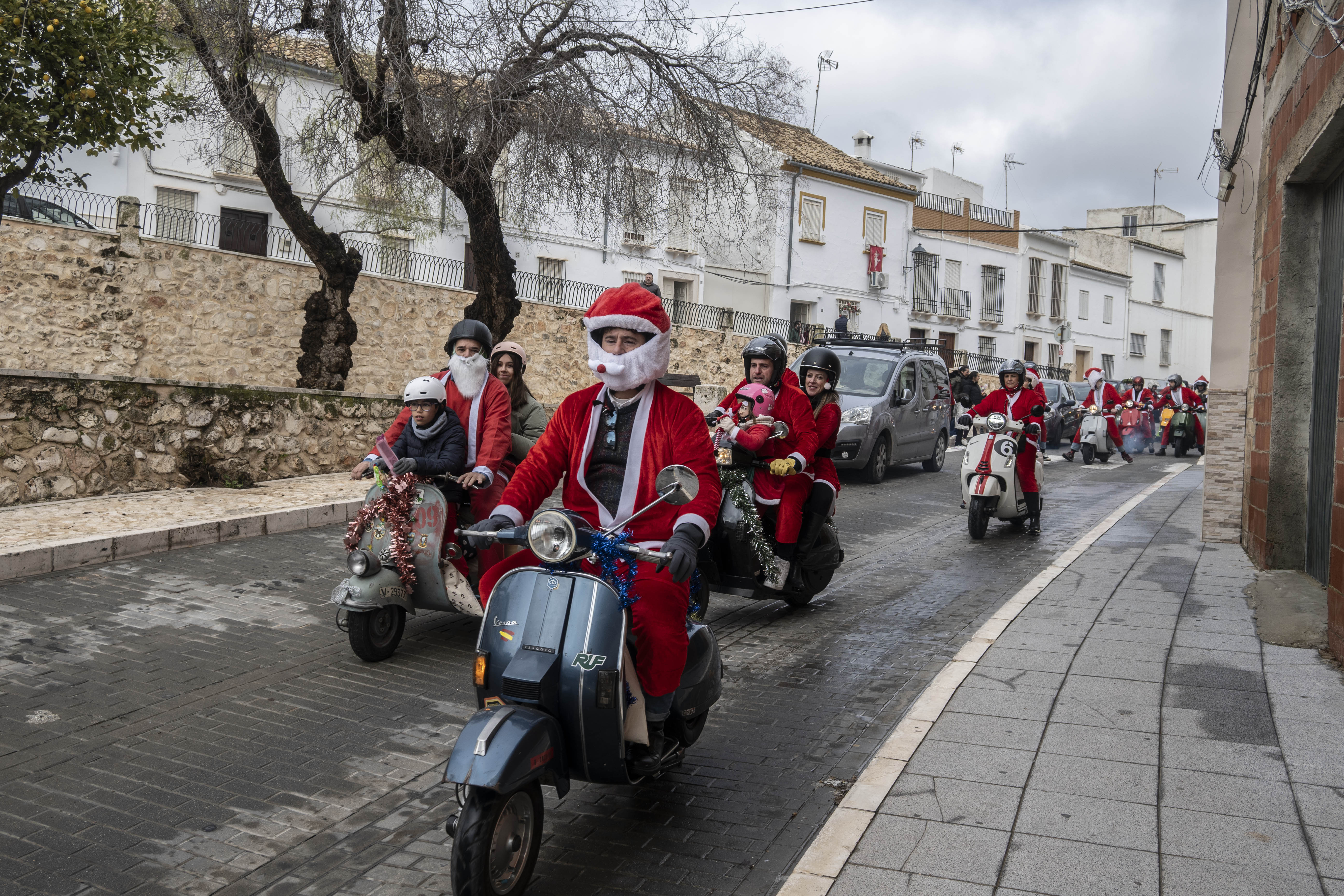 El grupo Vestepa recorre en moto las calles de nuestra ciudad repartiendo caramelos y bombones a las niñas y niños de Estepa y al mismo tiempo van recogiendo las cartas que los pequeños han escrito a Papa Noel pidiendo algún regalo por Navidad.