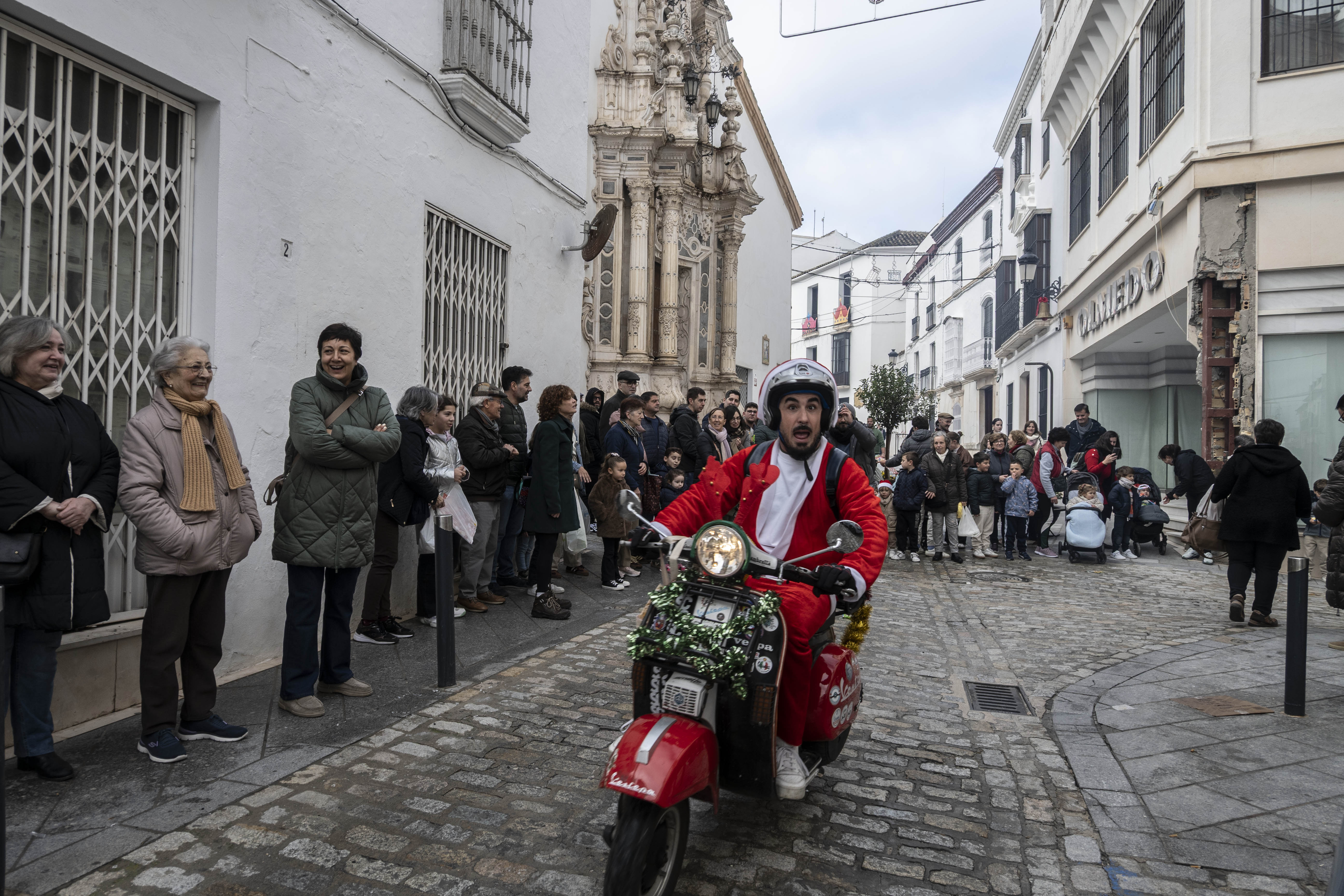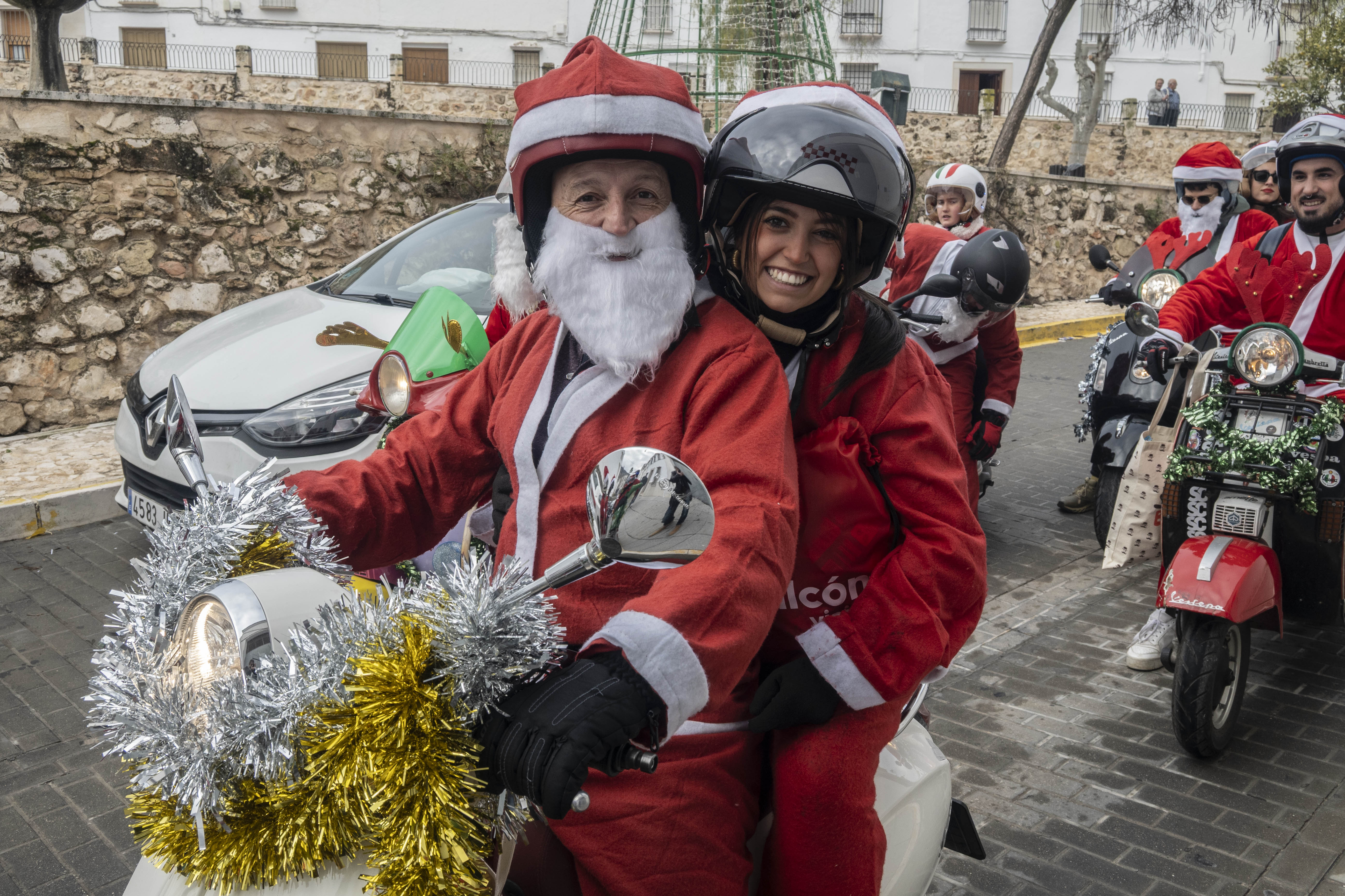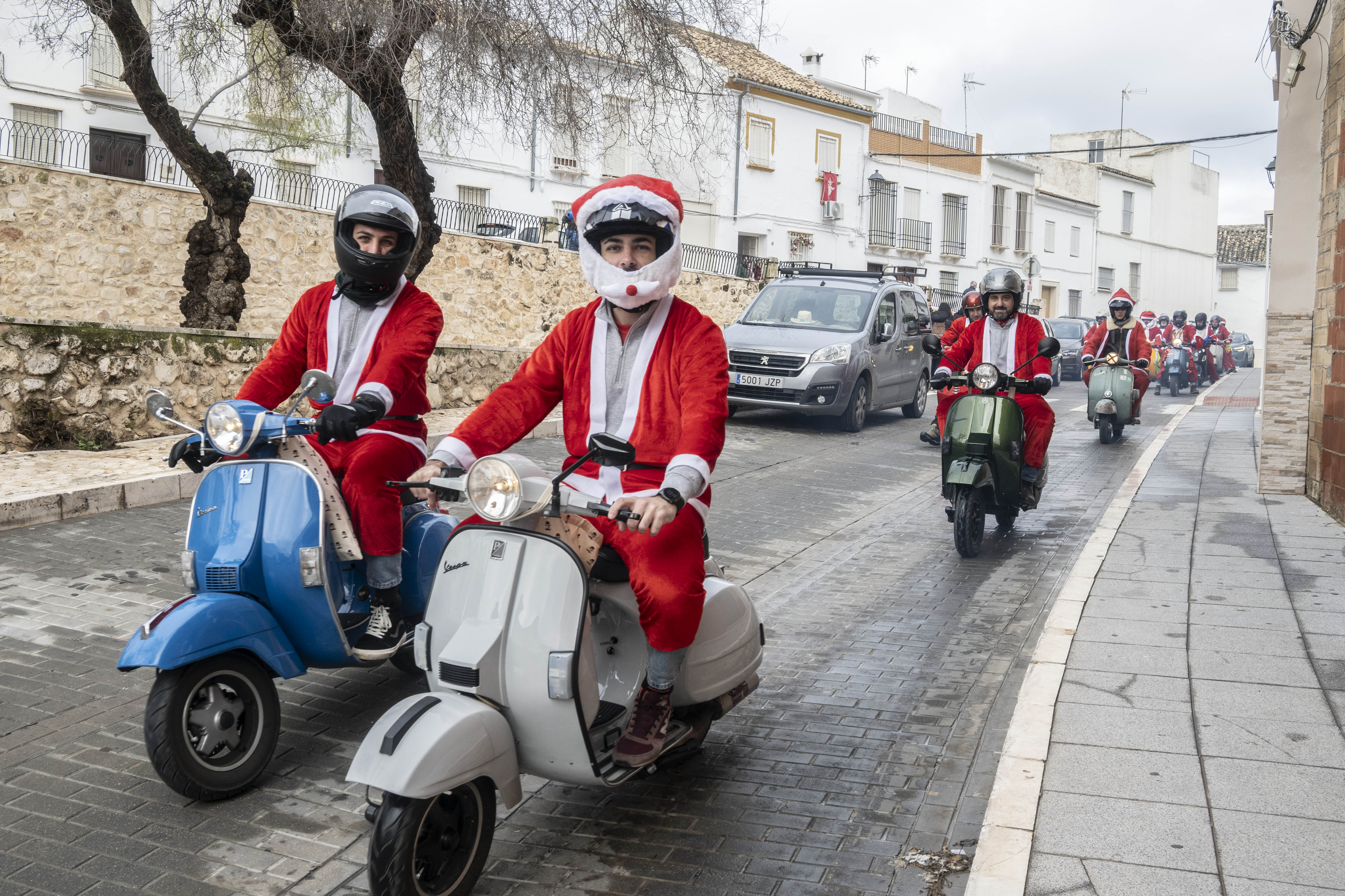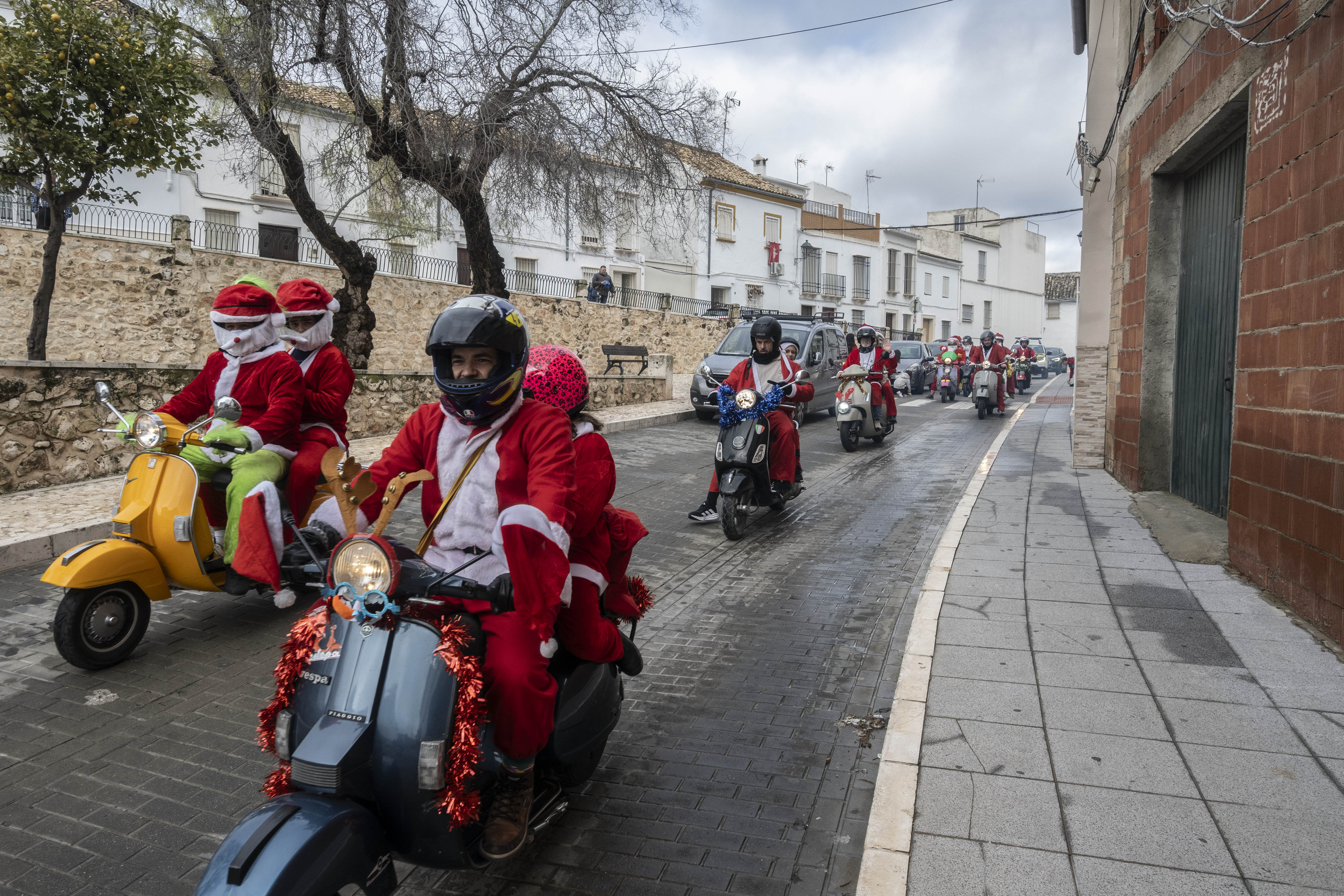 El grupo Vestepa recorre en moto las calles de nuestra ciudad repartiendo caramelos y bombones a las niñas y niños de Estepa y al mismo tiempo van recogiendo las cartas que los pequeños han escrito a Papa Noel pidiendo algún regalo por Navidad.