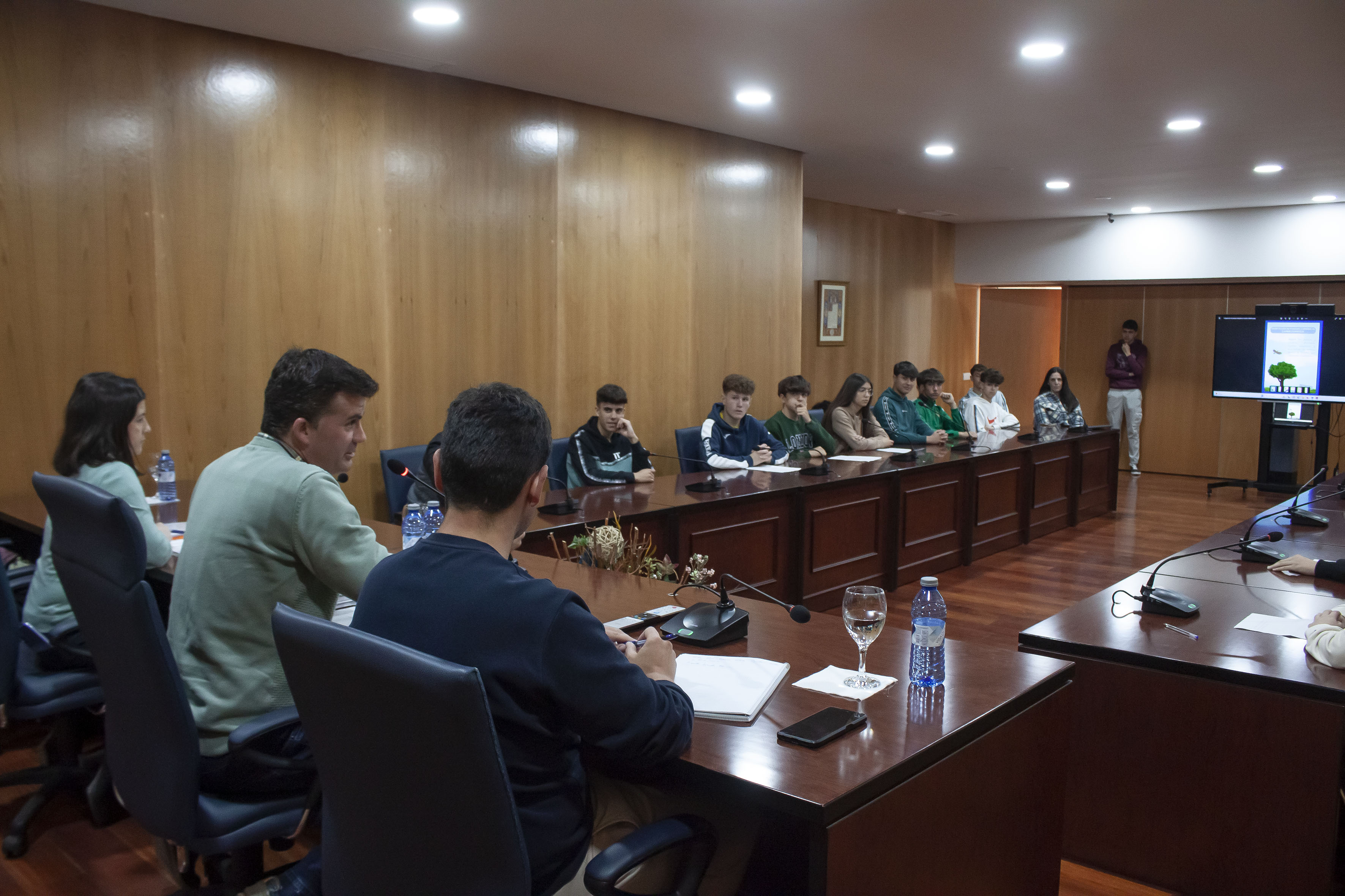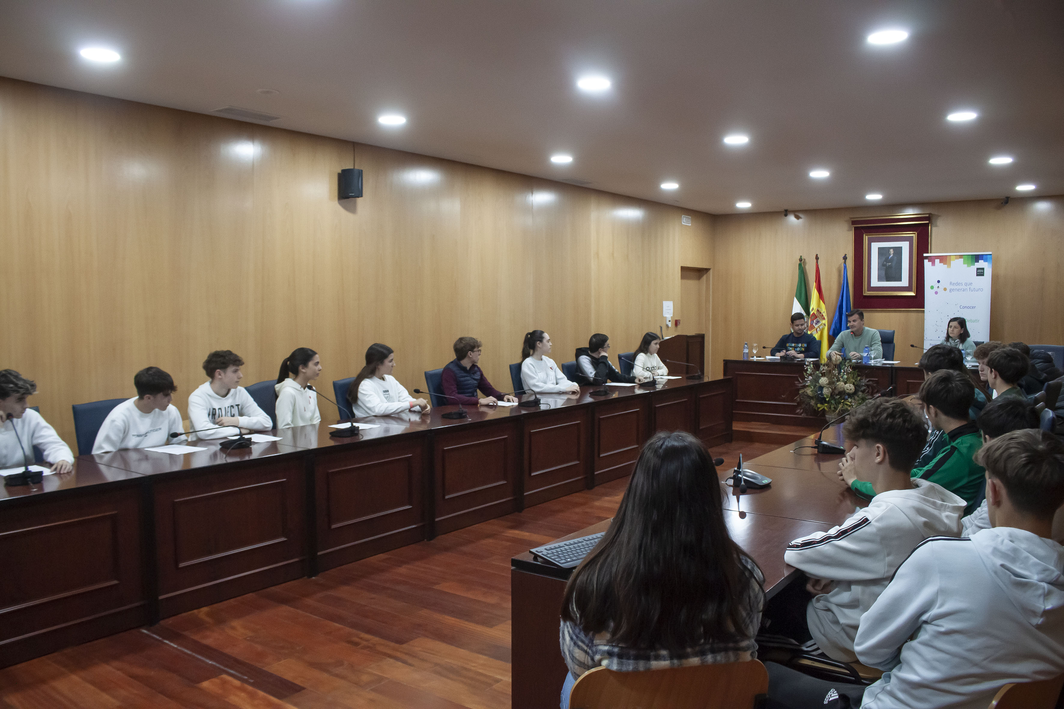 Ayer tuvo lugar en el salón de Plenos del Ayuntamiento de Estepa un encuentro entre el alcalde de la ciudad, Antonio Jesús Muñoz Quirós y el concejal de Urbanismo, David Gamito Rodríguez con un grupo de alumnas y alumnos del IES Ostippo.