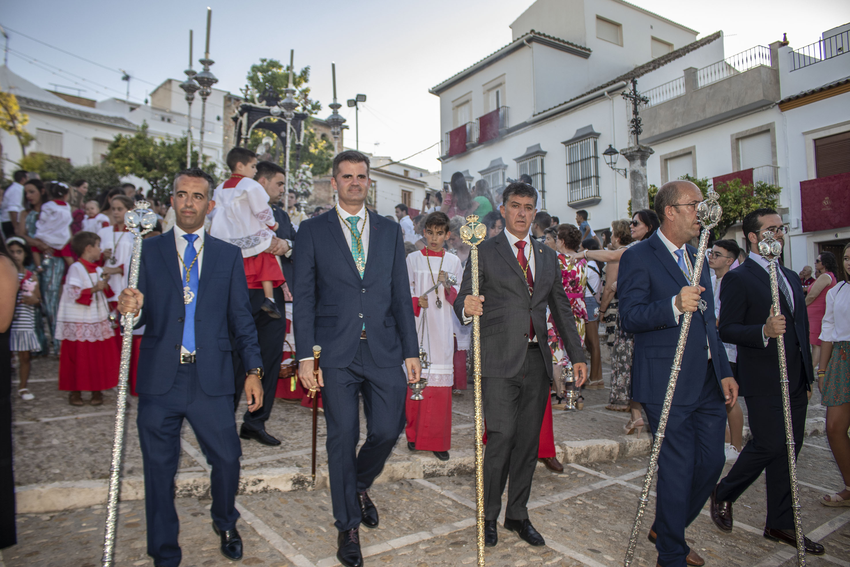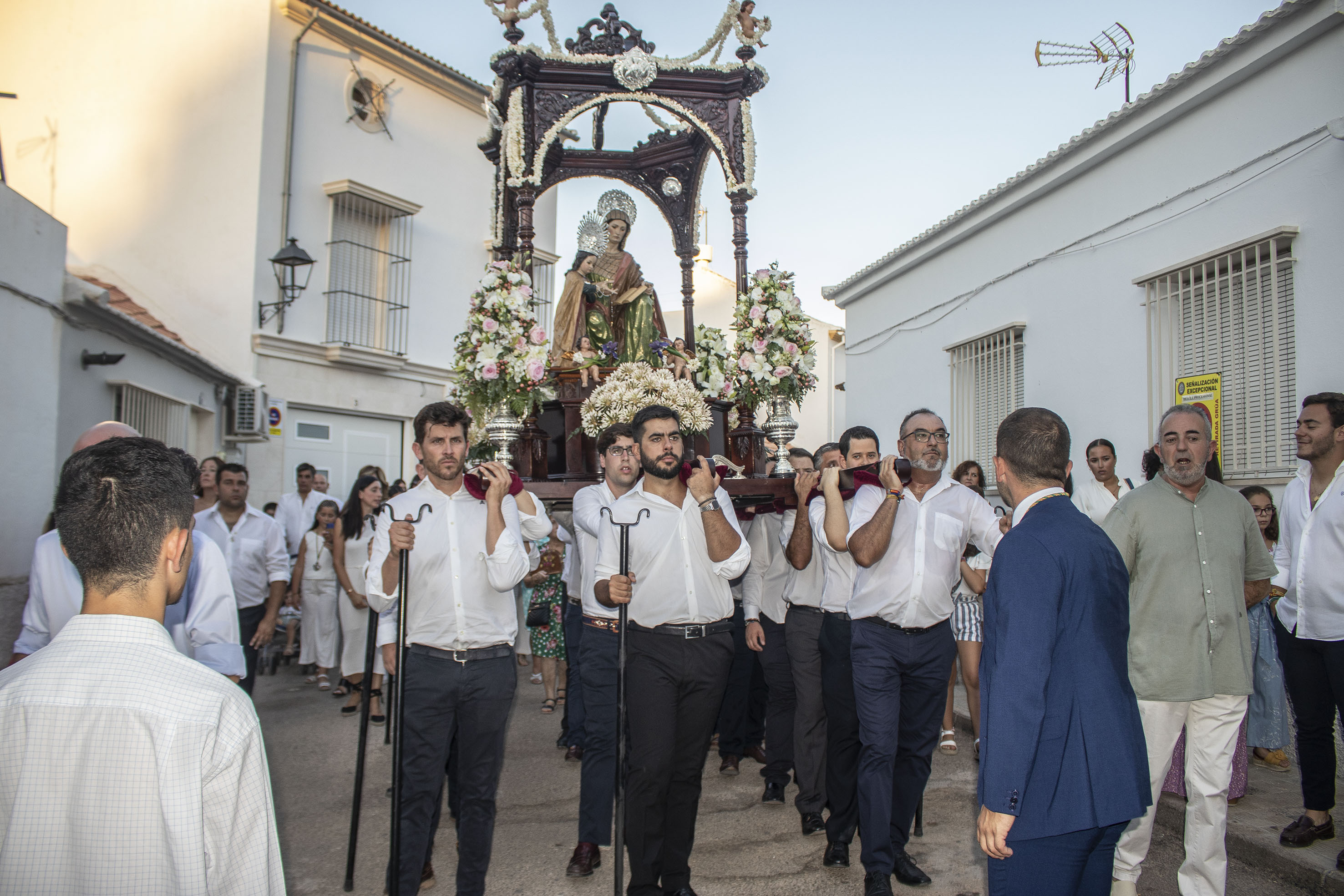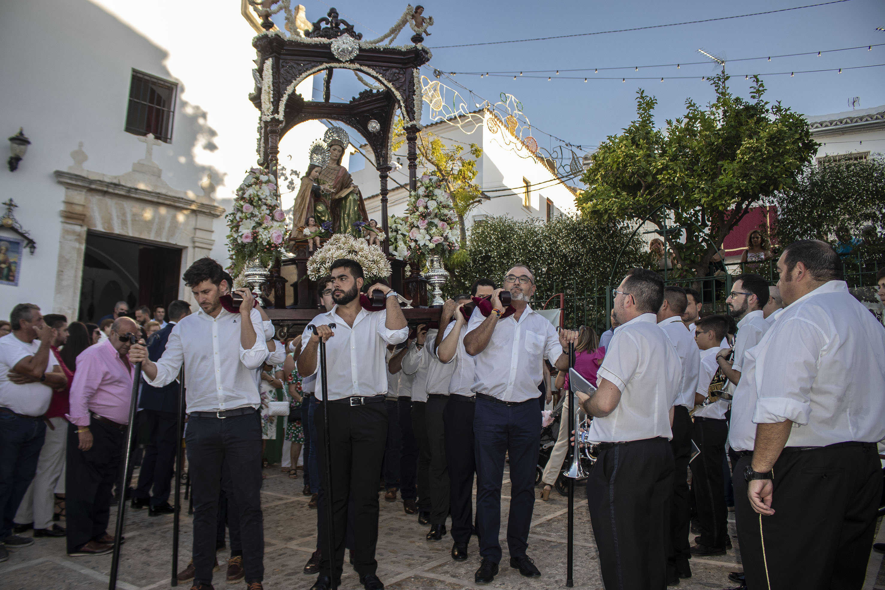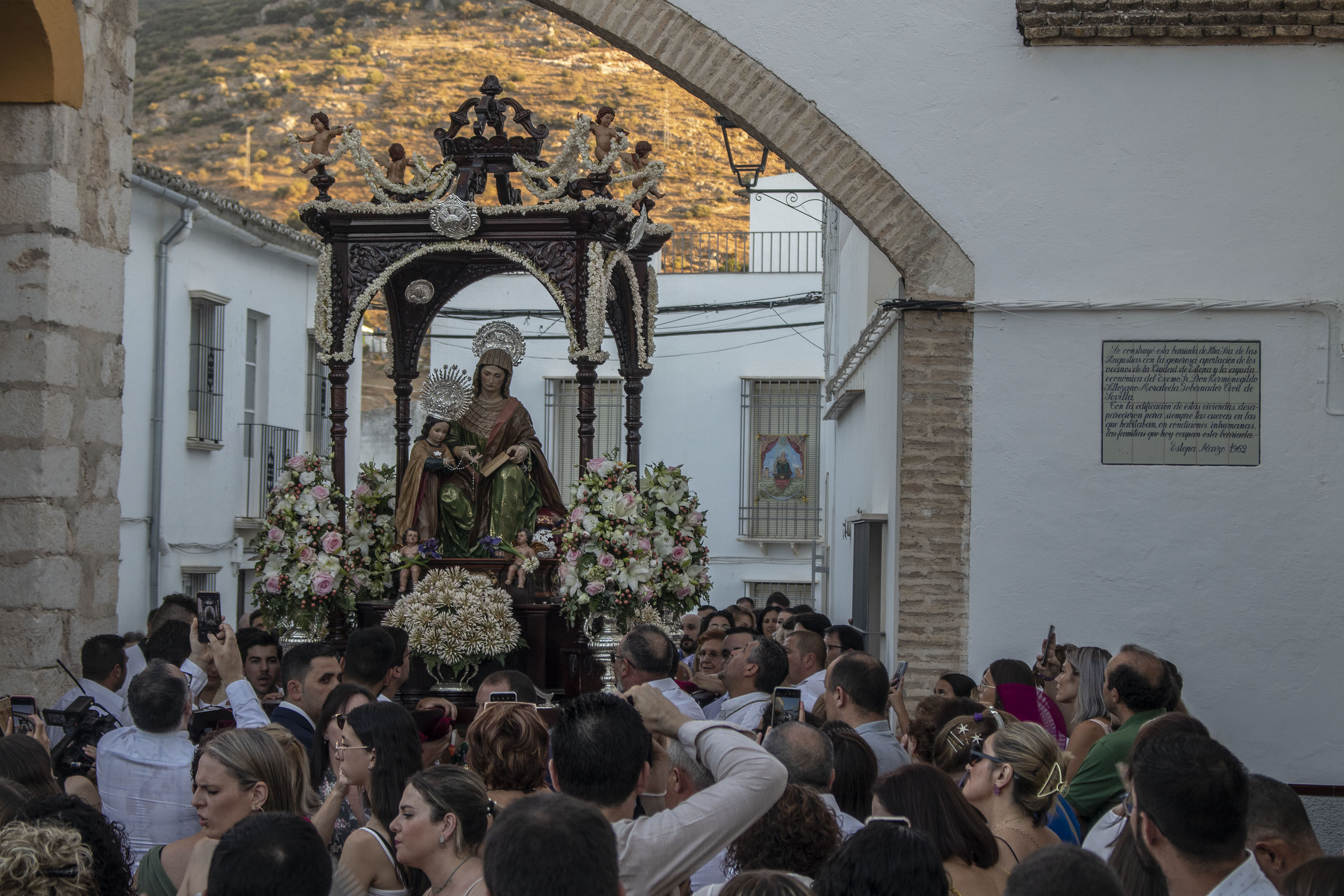 Hoy, domingo de Velá, disfrutamos de la procesión de Santa Ana, a la que ha acudido el alcalde, invitado por la hermandad a presidir el cortejo. La procesión finalizará con un castillo de fuegos artificiales que pondrán el broche final a la fiesta santanera.