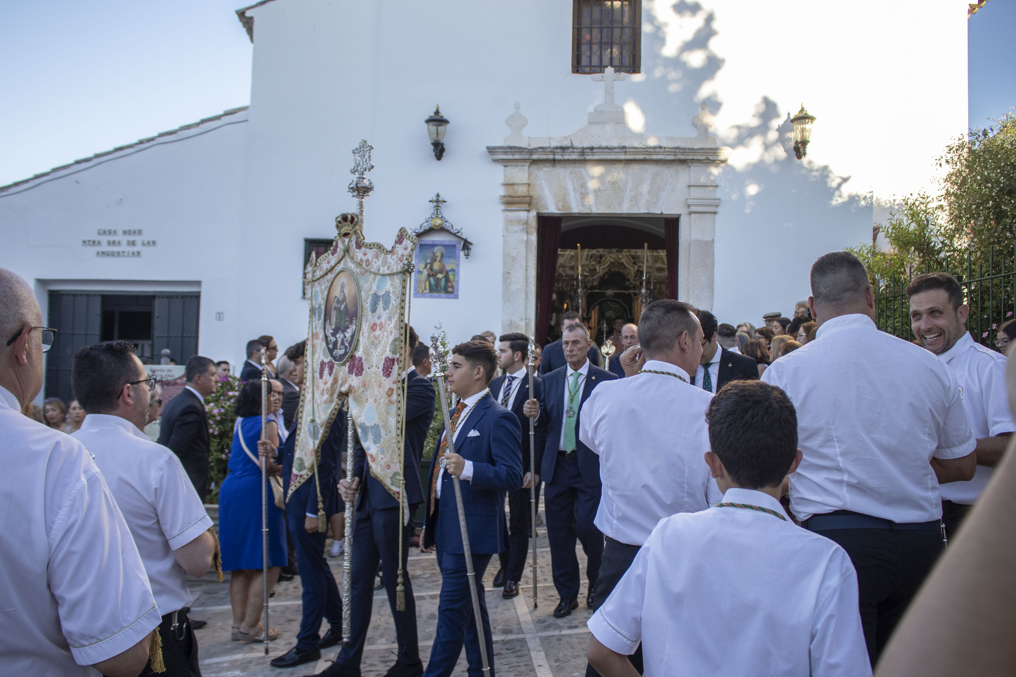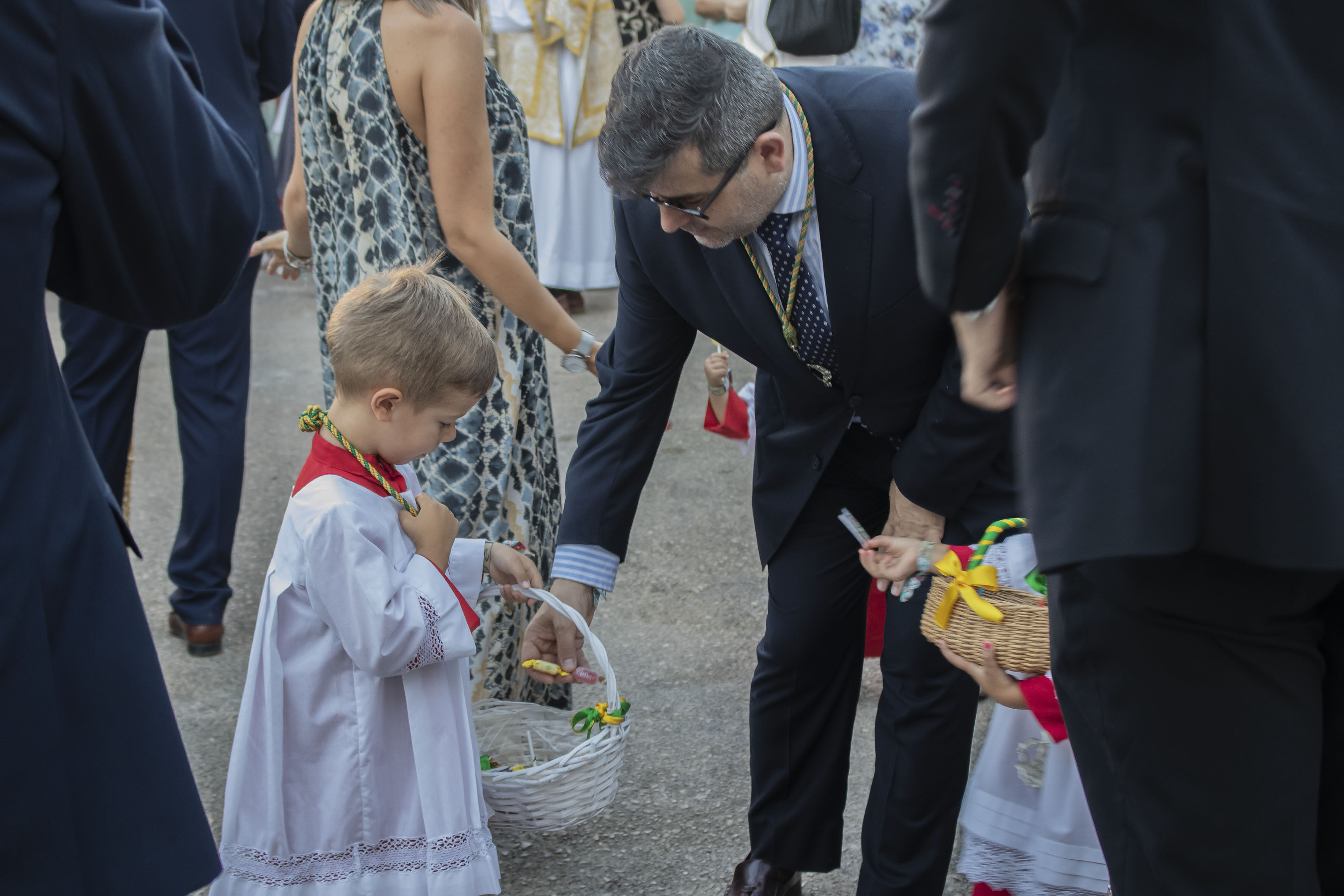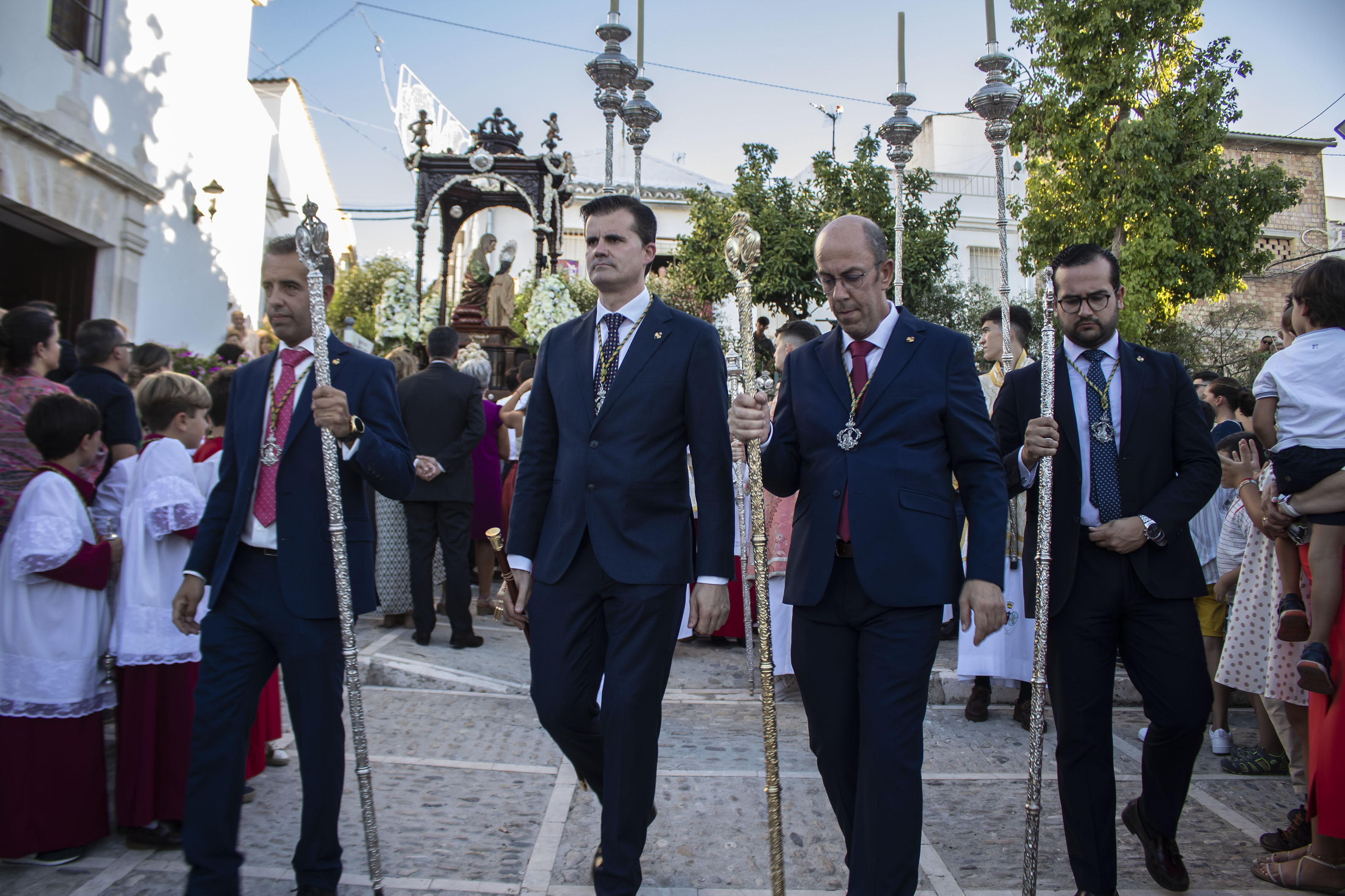 El alcalde de la ciudad, Antonio Jesús Muñoz, acompaña como cada año a la hermandad y preside el desfile procesional junto al hermano mayor de la hermandad, Jesús Fernández.