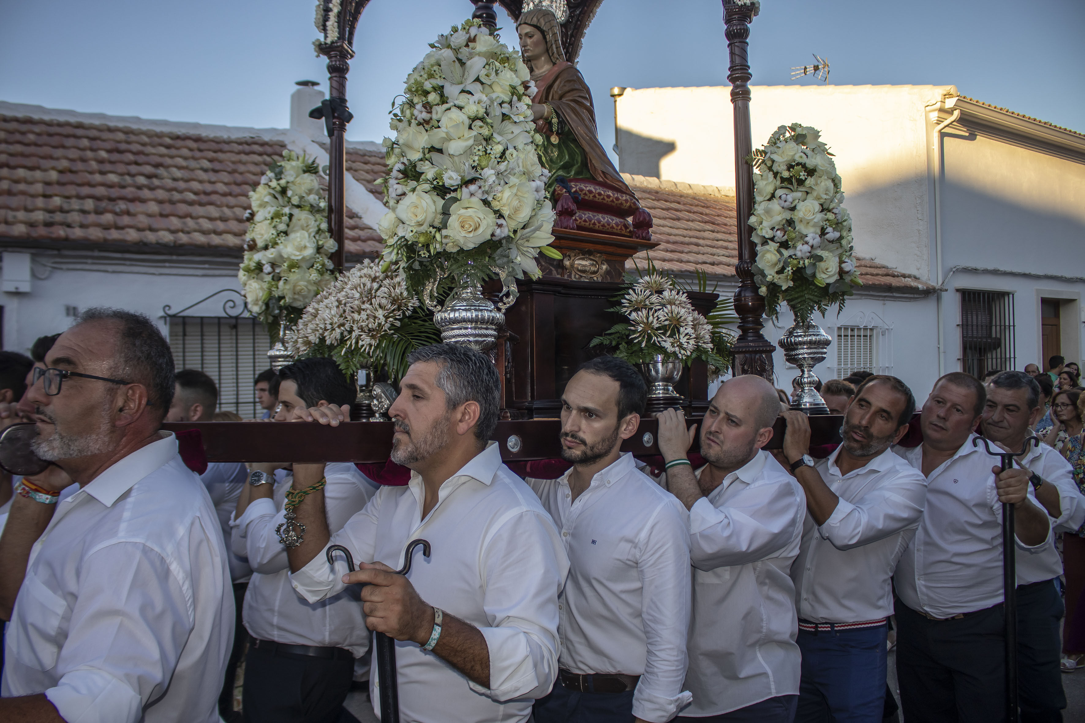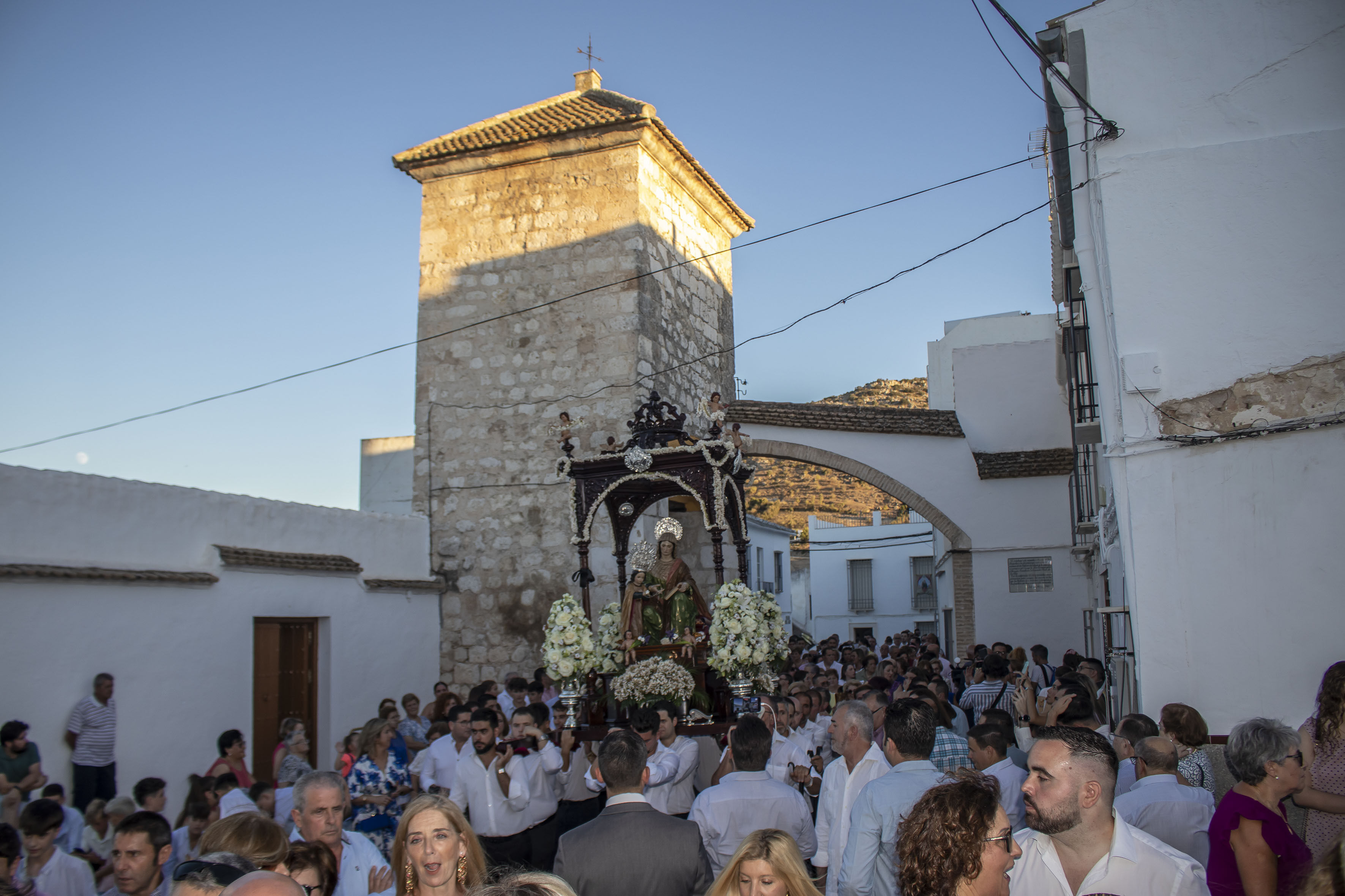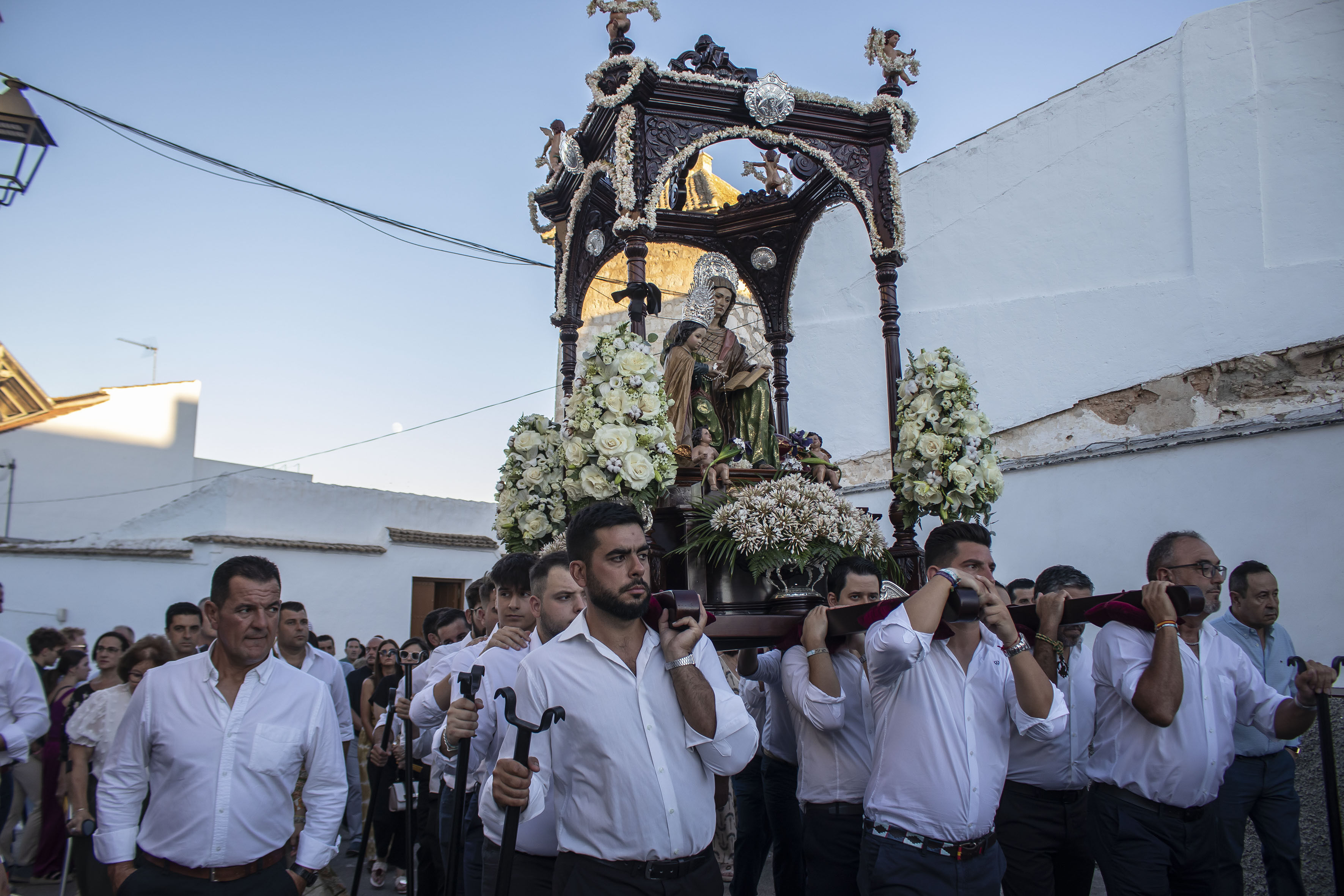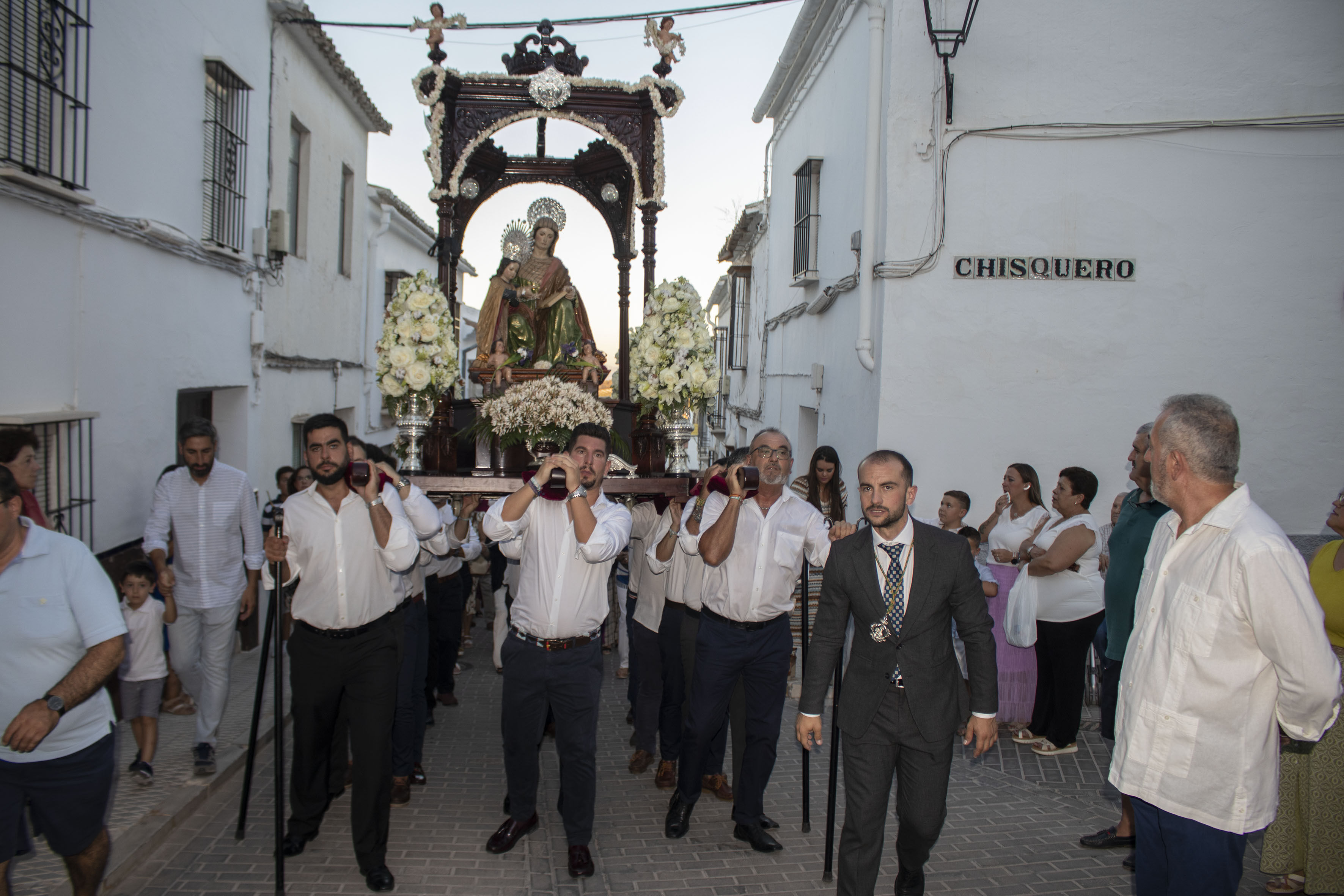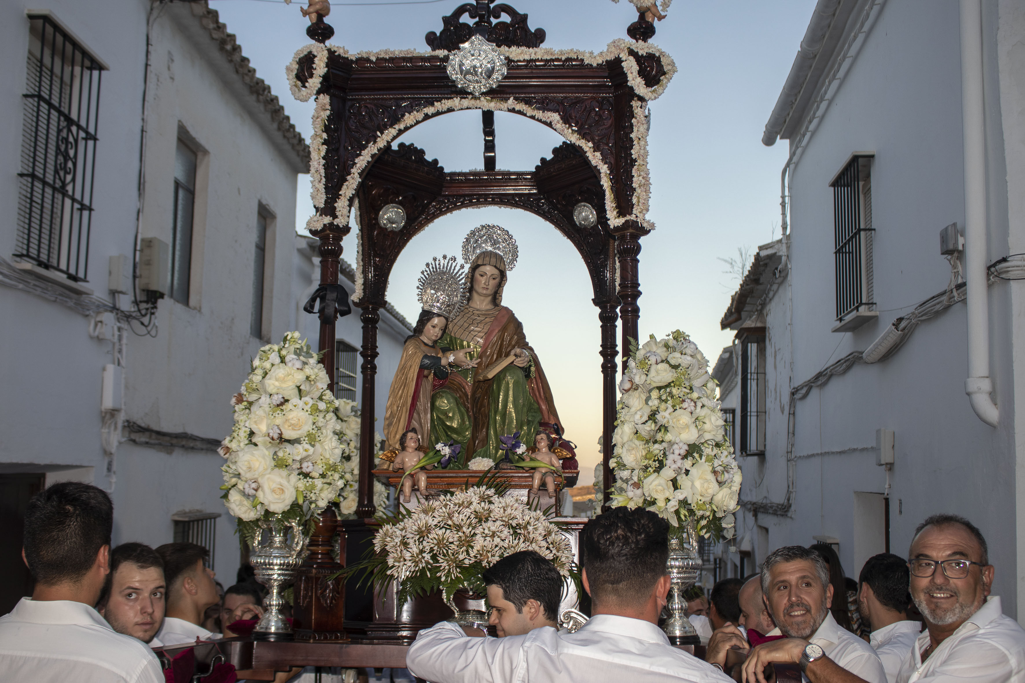 Hoy domingo, último día de la Velá de Santa Ana 2023, tiene lugar la procesión de Santa Ana, que procesiona por las calles de Estepa y que finaliza en la ermita que lleva su nombre con un espectáculo de fuegos artificiales y música.