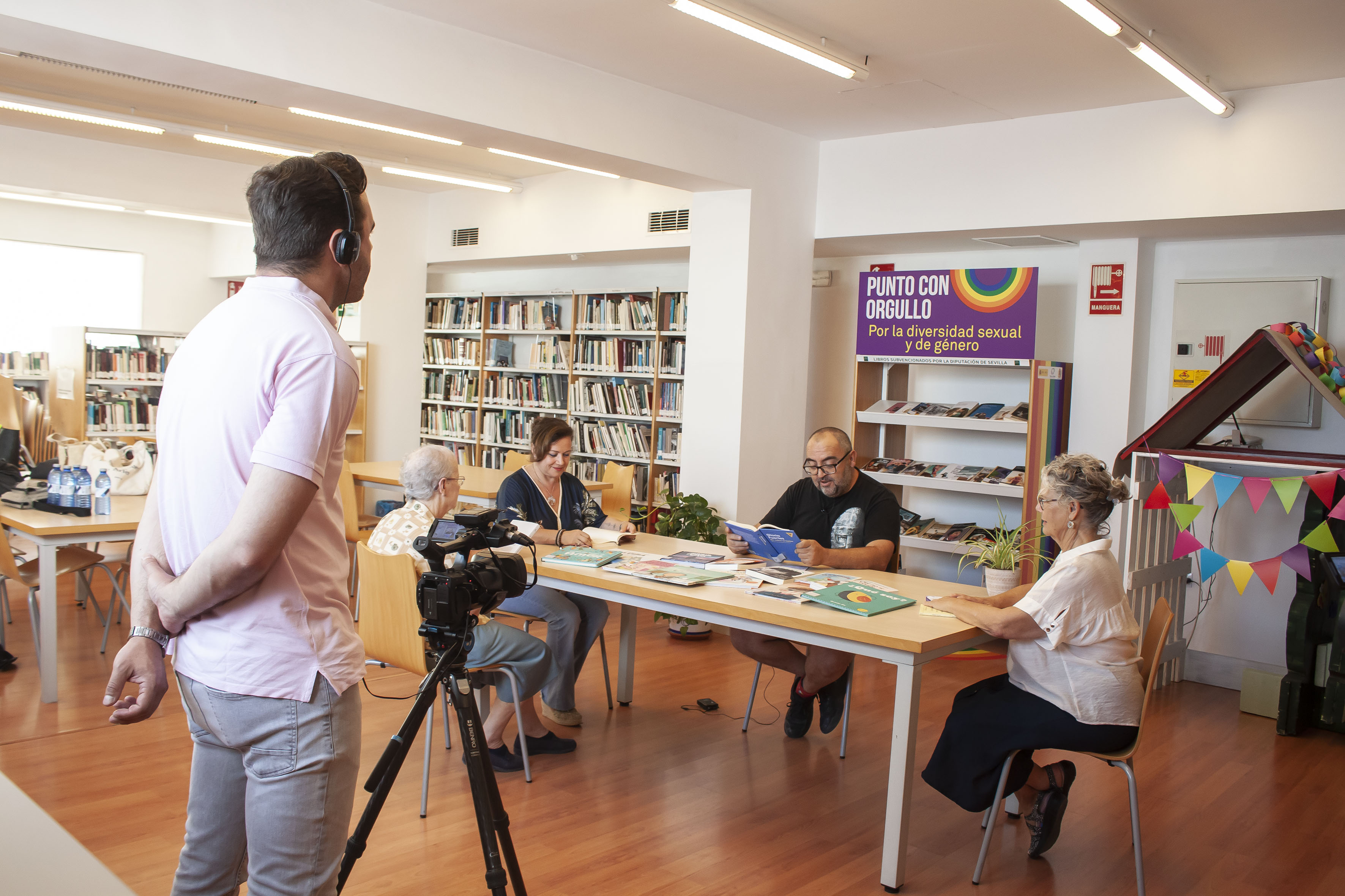 Hoy se han llevado a cabo la grabación de una serie de vídeos para dar visibilidad a esta "estantería lgtbi", dentro de los actos programados con motivo del Día con Orgullo por la homosexualidad, transexualidad, bisexualidad e identidades no binarias.