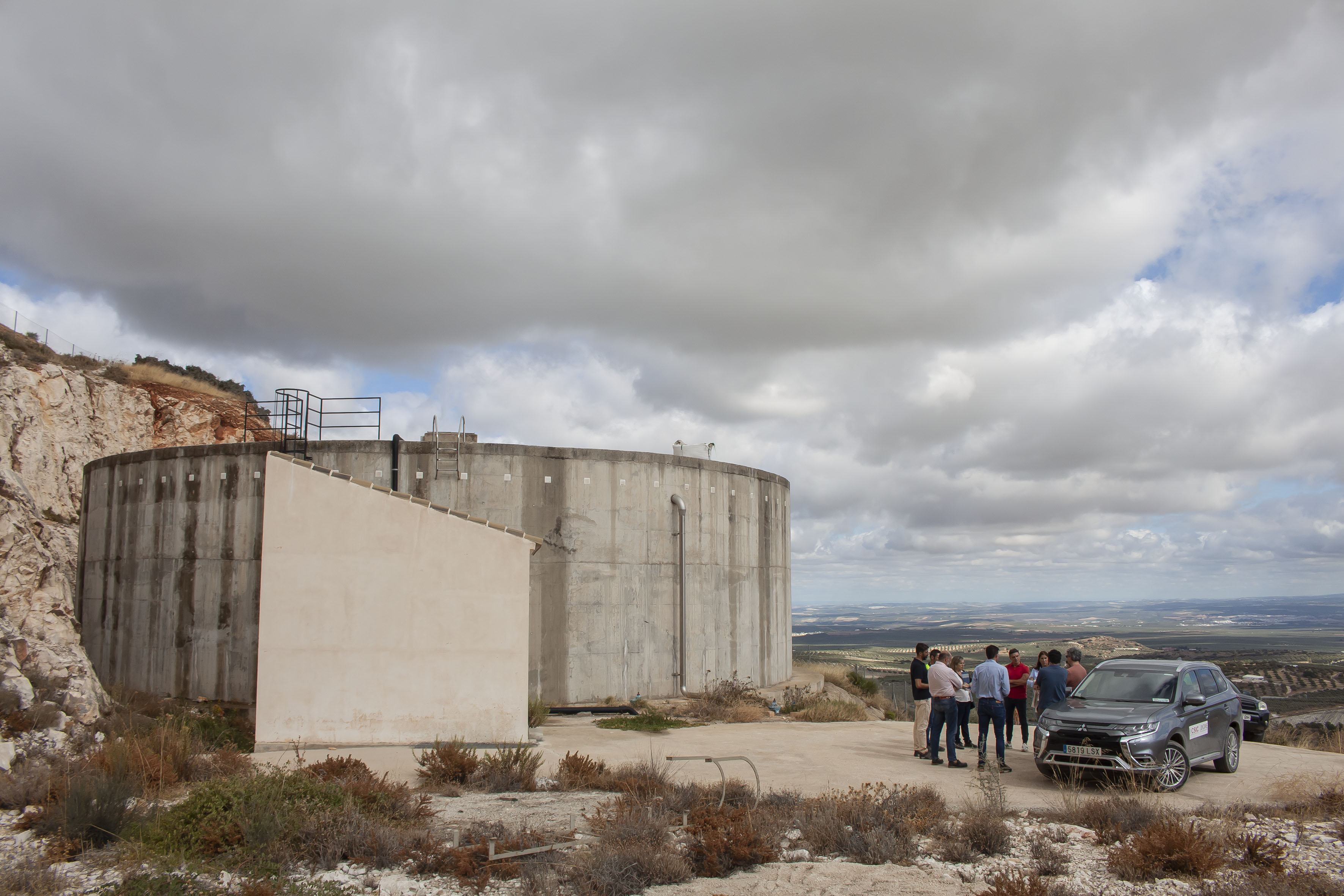 El alcalde acompañó a los técnicos de la Diputación e Instituto Geológico a la zona de El Cuerno, donde se construyó hace años el depósito general desde donde se distribuye el agua al resto de depósitos repartidos por Estepa.