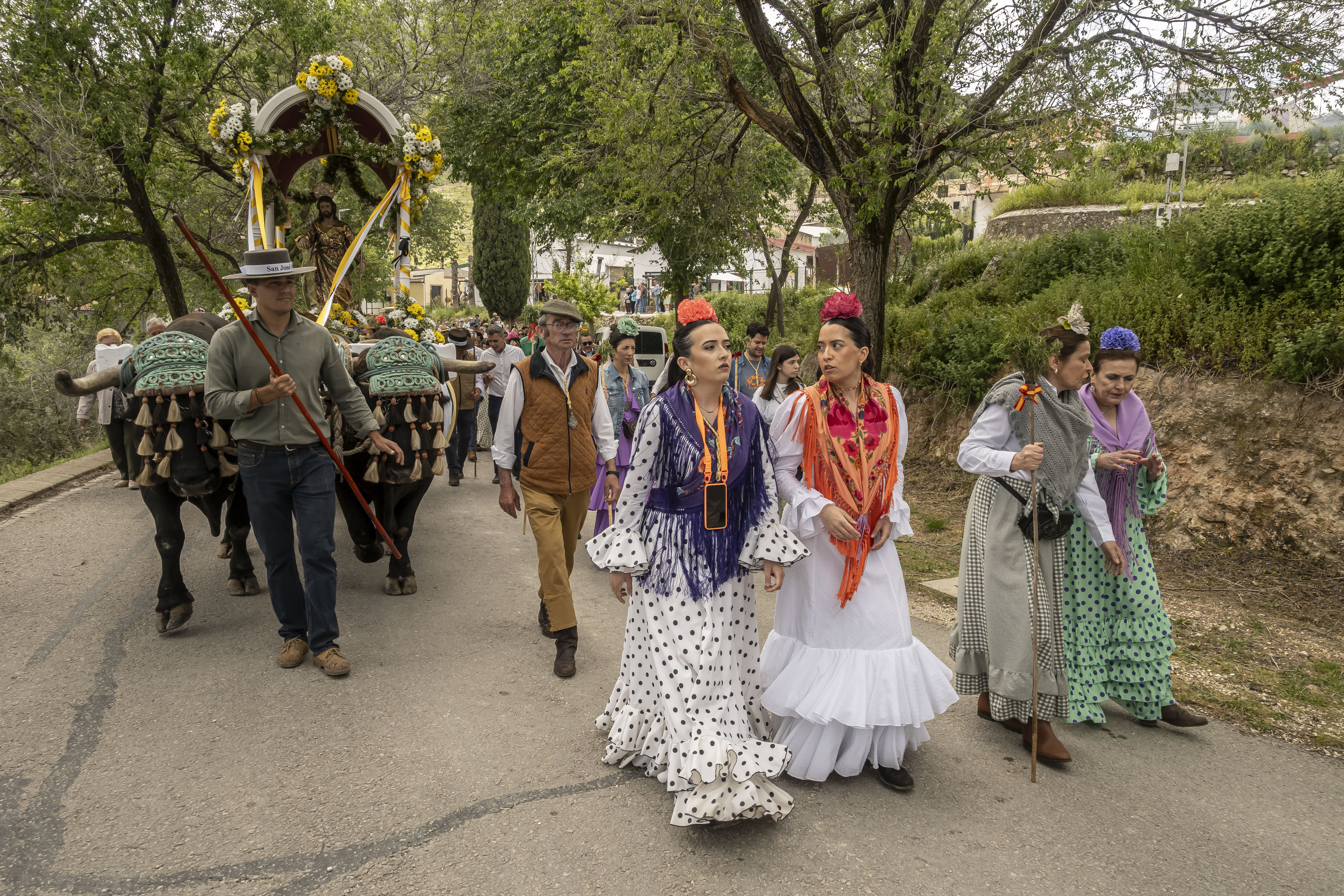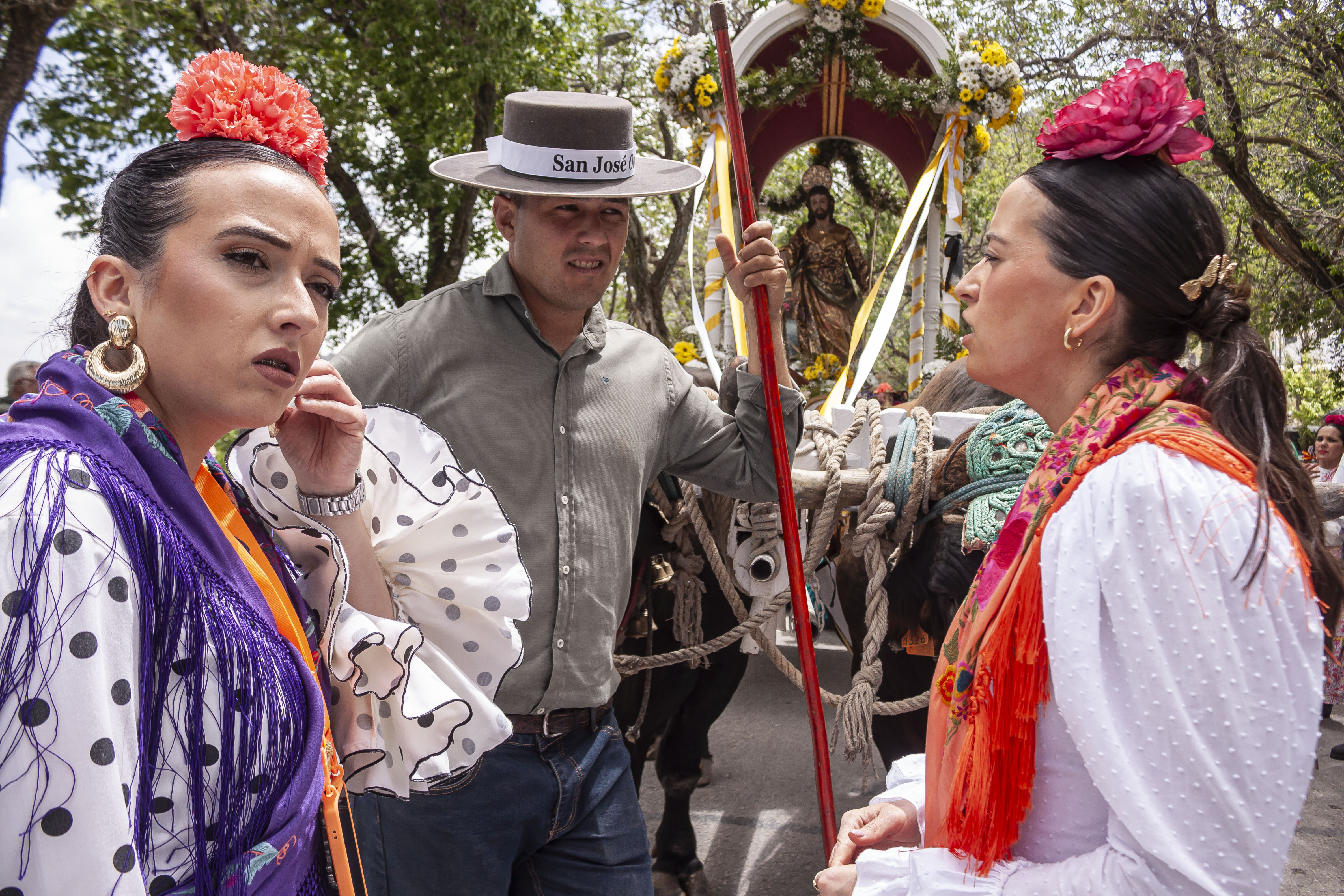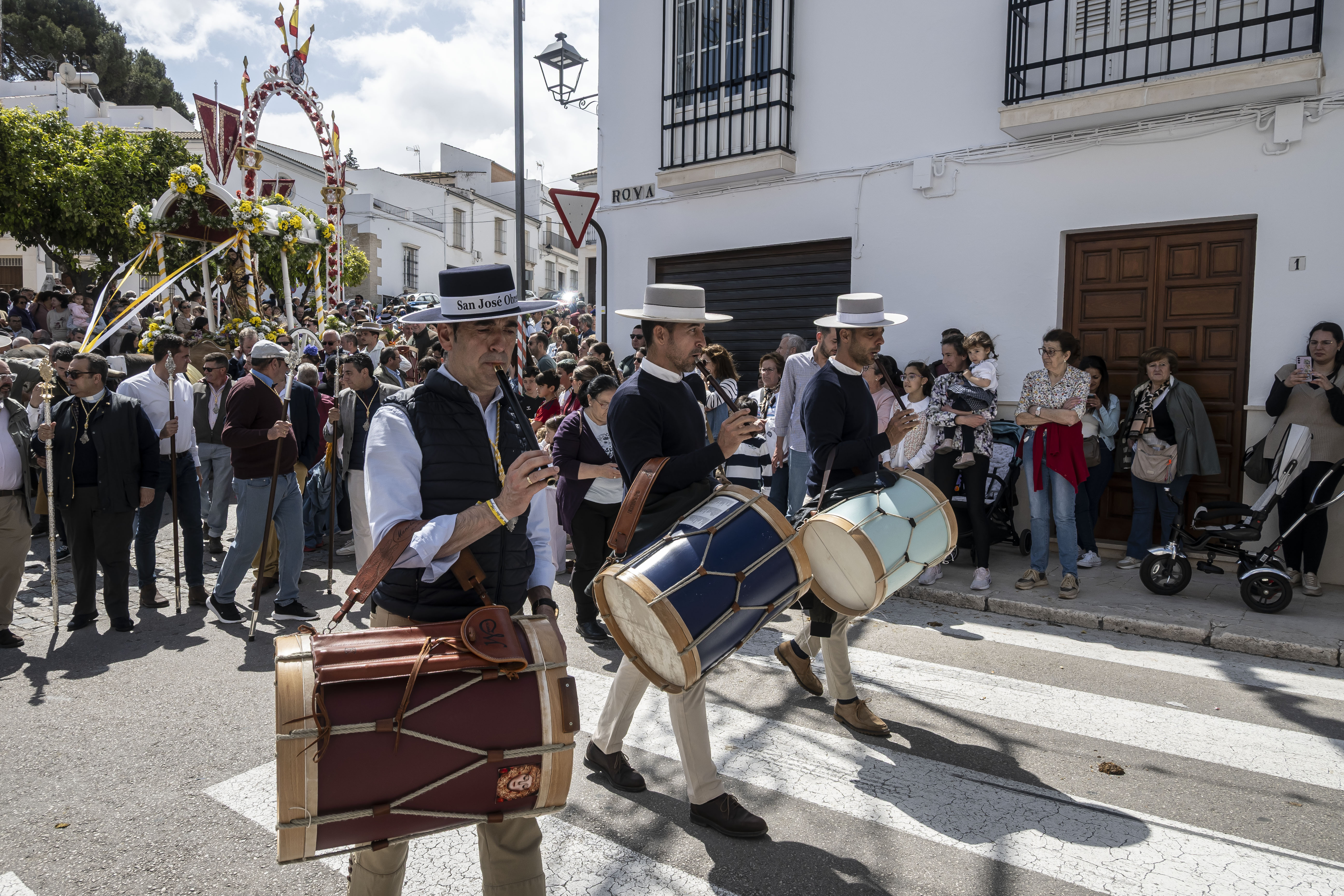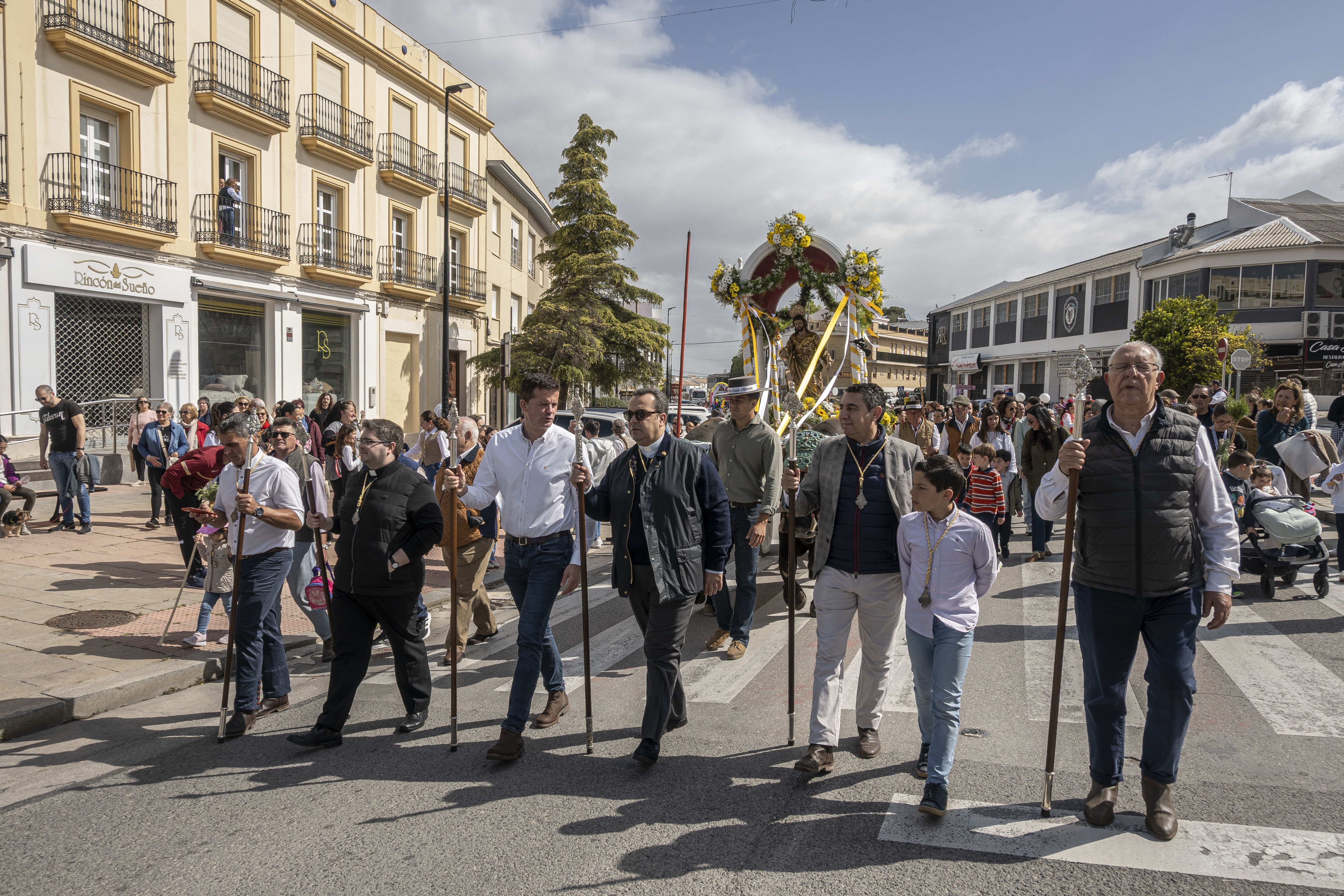 El cortejo de la carroza de San José, con toda la presidencia de la hermandad de Ntra. Sra. de las Angustias, han entrado en el tempo de Los Remedios, donde han sido recibidos por la hermandad de Ntra. Sra. de los Remedios y su hermano mayor, Antonio Martín, que este año están de celebración por la coronación de la Virgen el próximo sábado 3 de mayo.