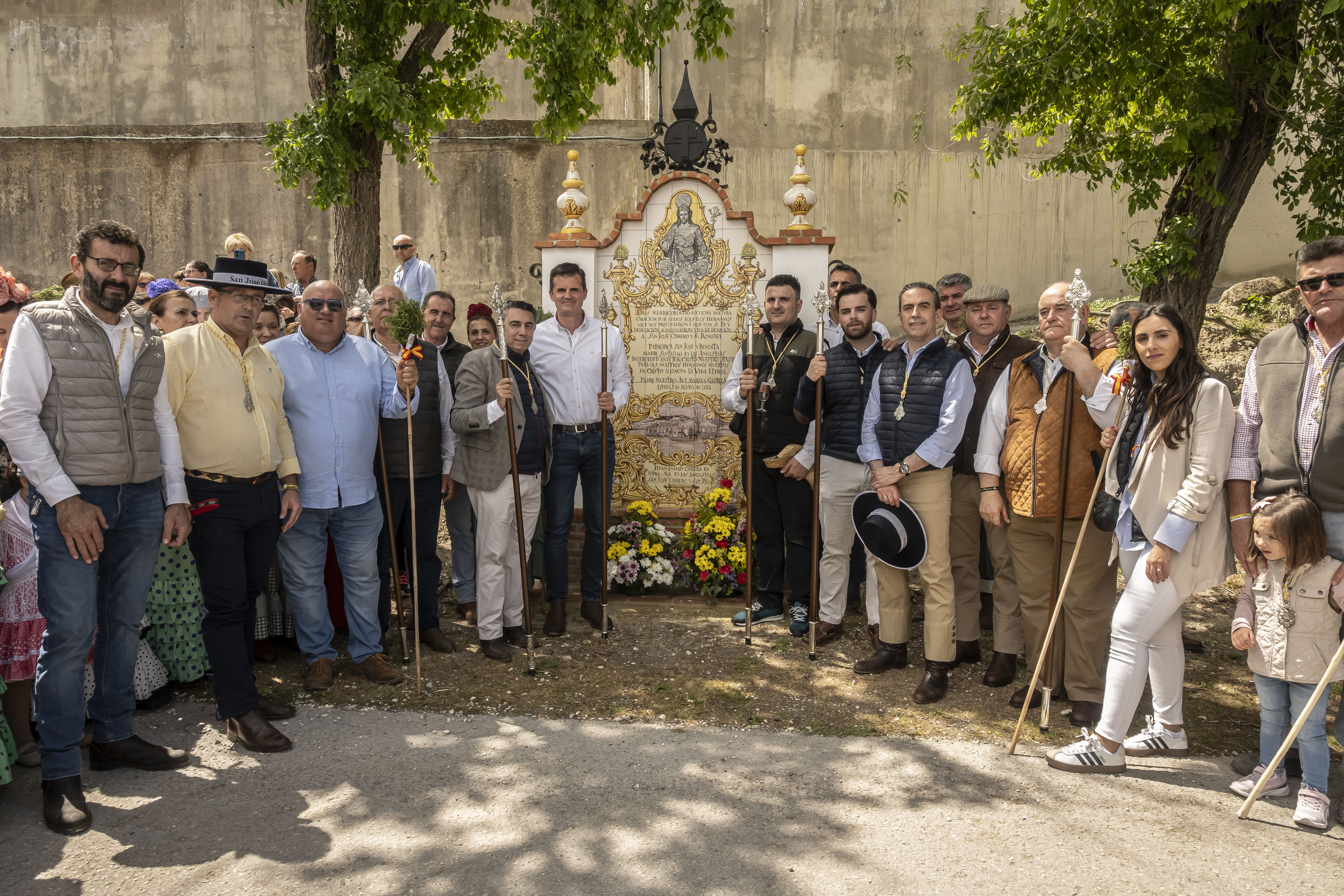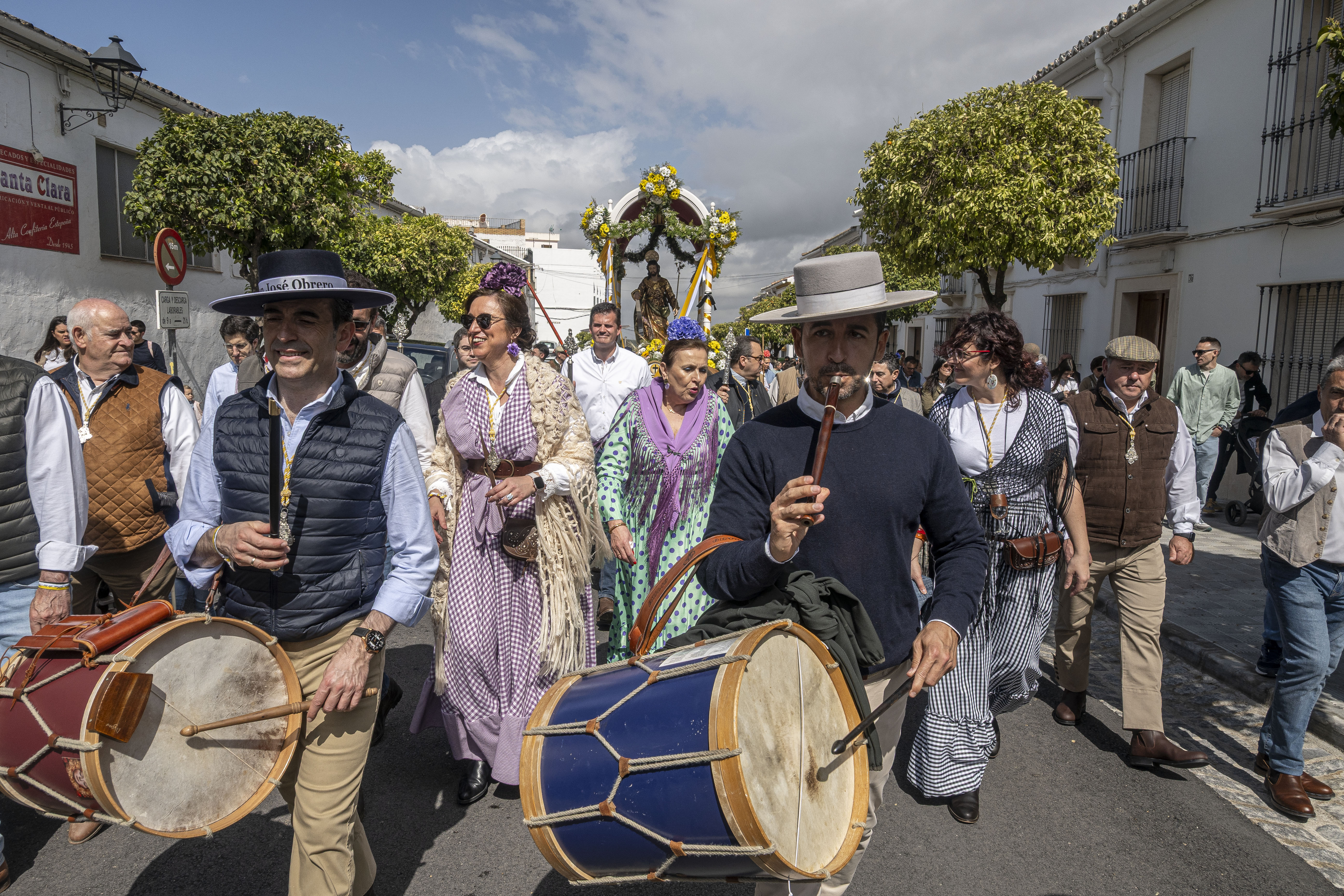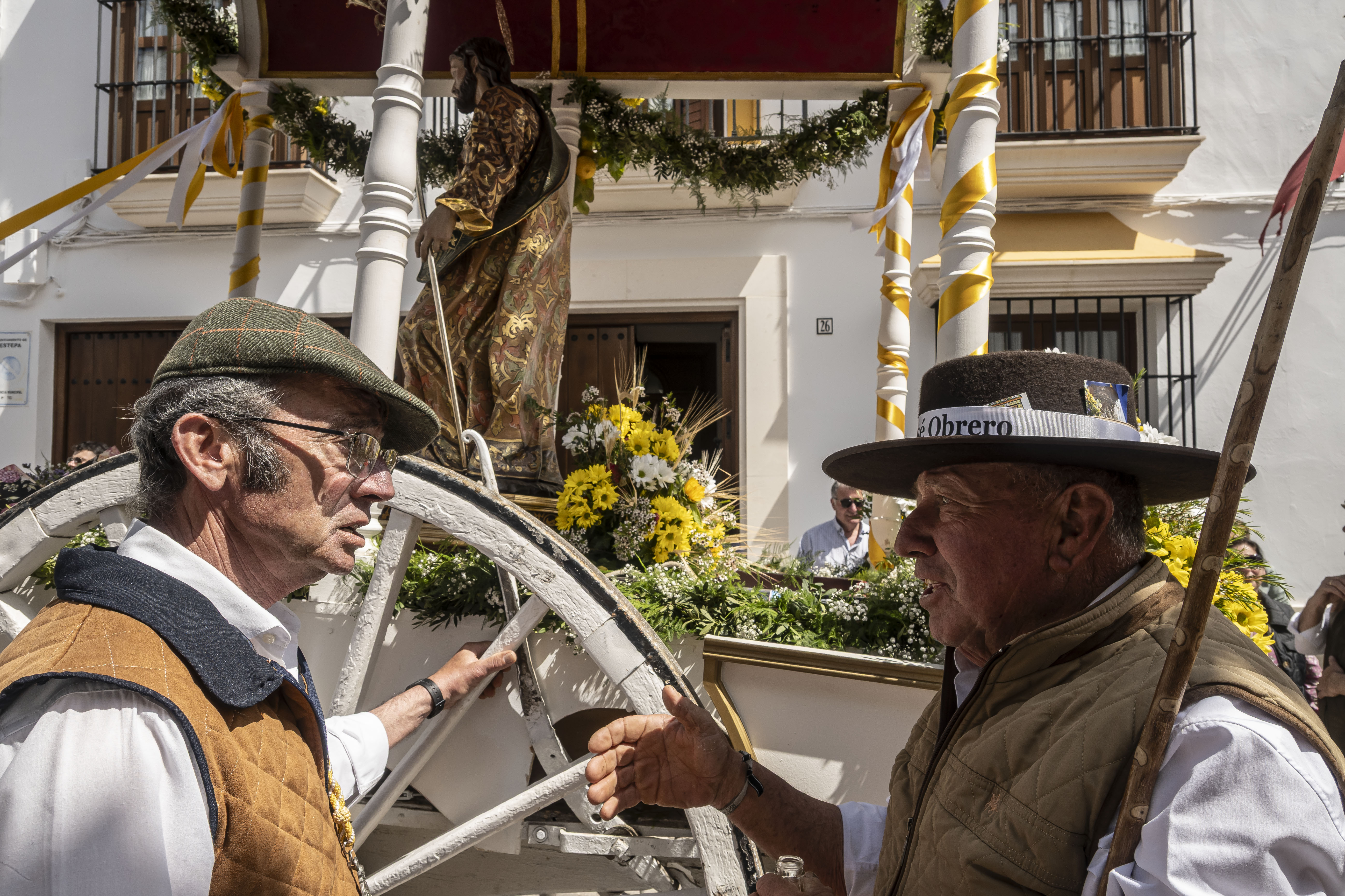 El alcalde de Estepa, Antonio Jesús Muñoz y el hermano mayor de la hermandad de Las Angustias, Enrique Moreno, han acompañado a San José Obrero junto al párroco de Santa María y San Sebastián, Manuel Ávalos Fernández y el Vicario Parroquial, Andrés Rodríguez Sánchez. La hermana mayor de la Hermandad del Calvario, Pilar Reina también ha estado presente en el recibimiento de la comitiva de la Romería.