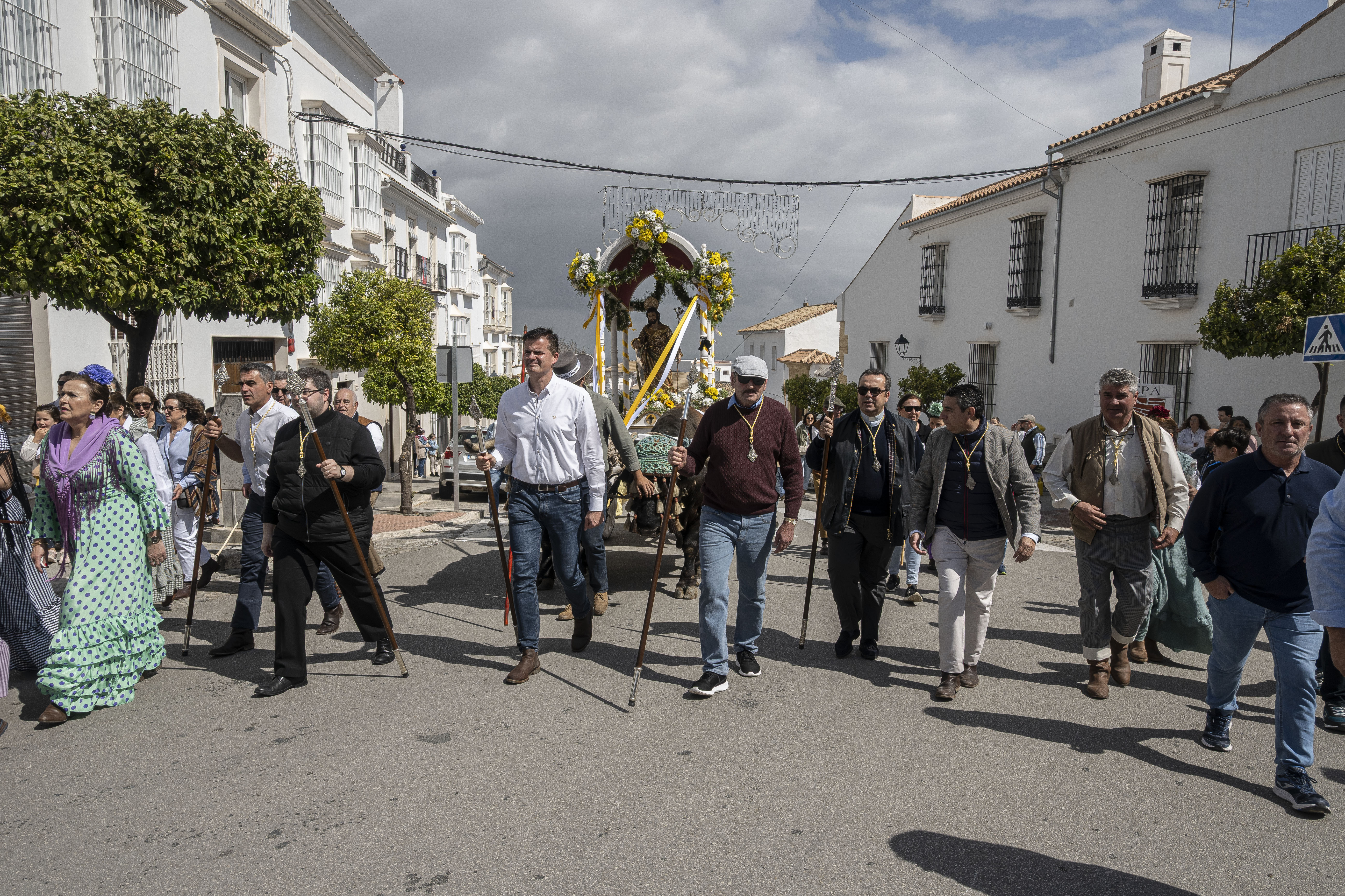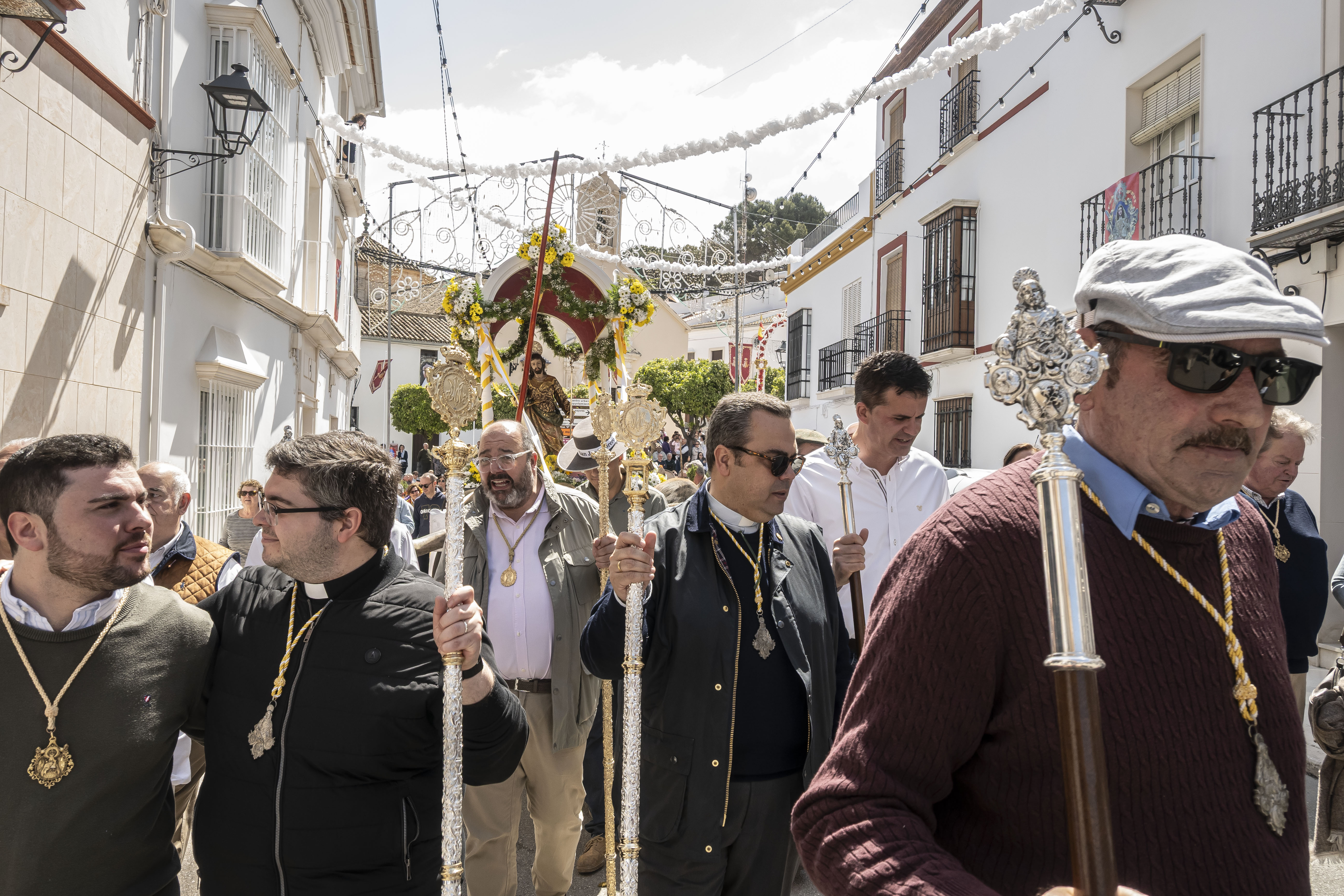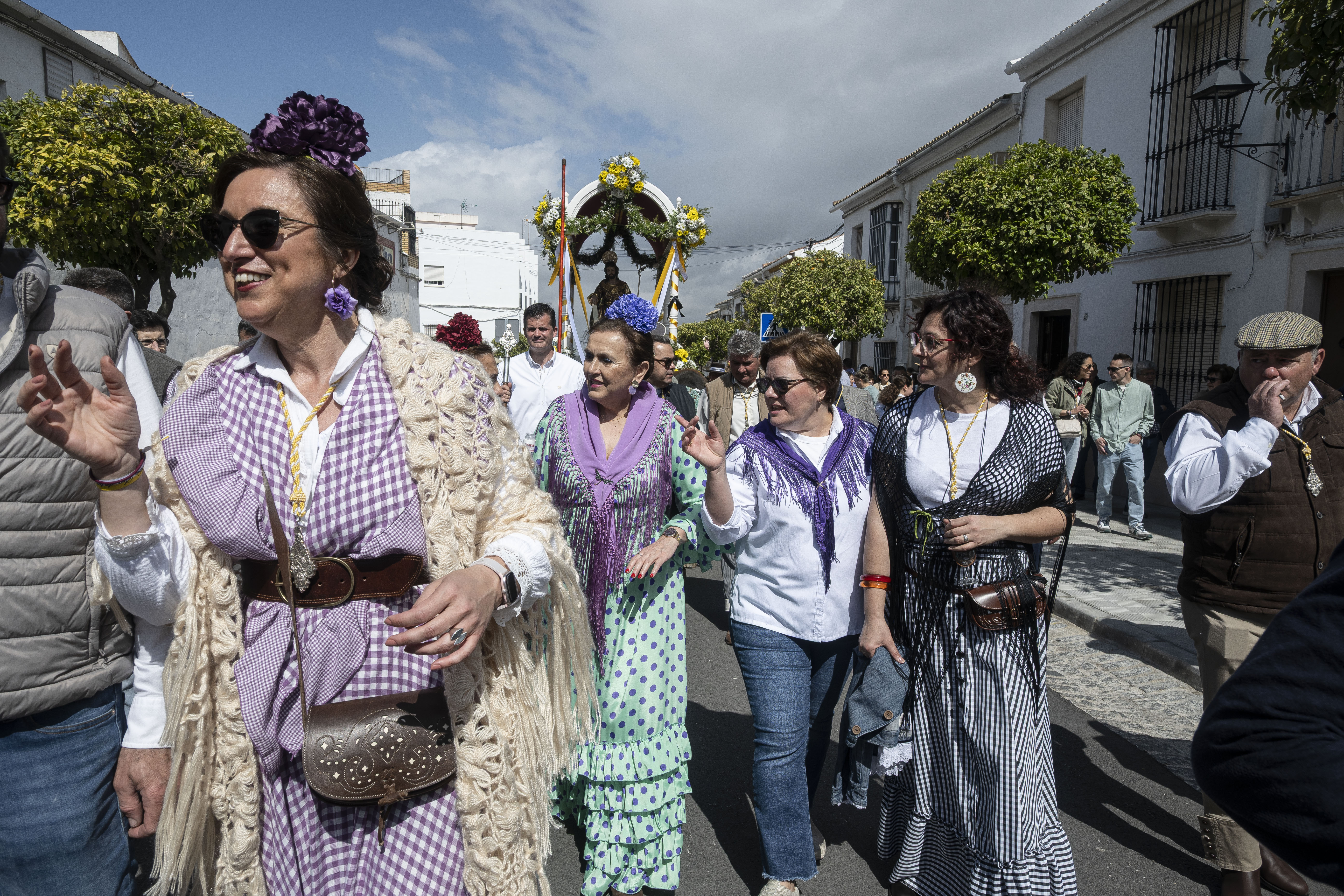 El alcalde de Estepa, Antonio Jesús Muñoz y el hermano mayor de la hermandad de Las Angustias, Enrique Moreno, han acompañado a San José Obrero junto al párroco de Santa María y San Sebastián, Manuel Ávalos Fernández y el Vicario Parroquial, Andrés Rodríguez Sánchez. La hermana mayor de la Hermandad del Calvario, Pilar Reina también ha estado presente en el recibimiento de la comitiva de la Romería.