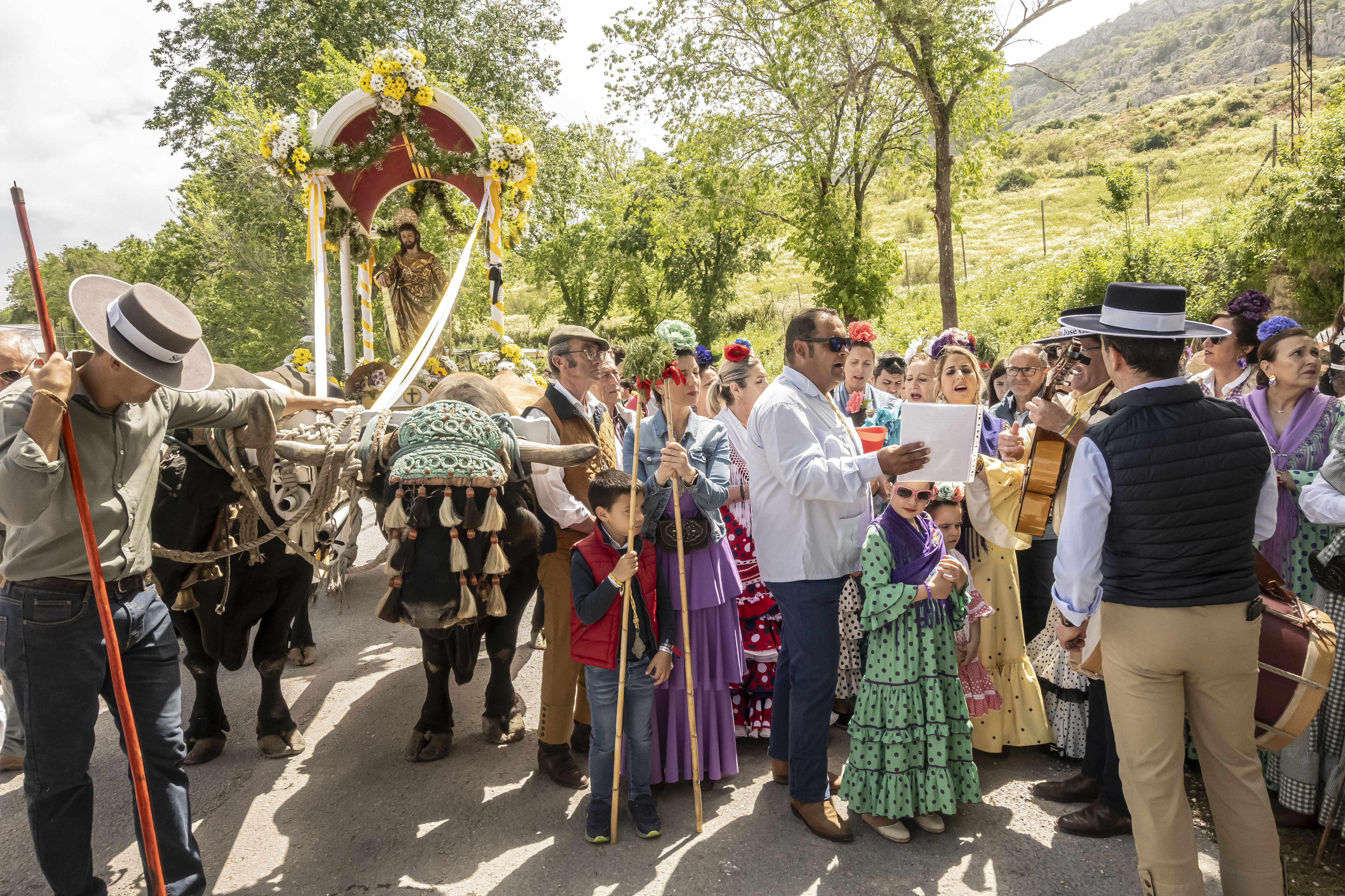 Tras la parada en la iglesia de los Remedios, la romería ha seguido su camino hasta el paraje de Roya, donde a estas horas, disfrutan ya todos los romeros, de una jornada de convivencia en torno a este primero de Mayo.