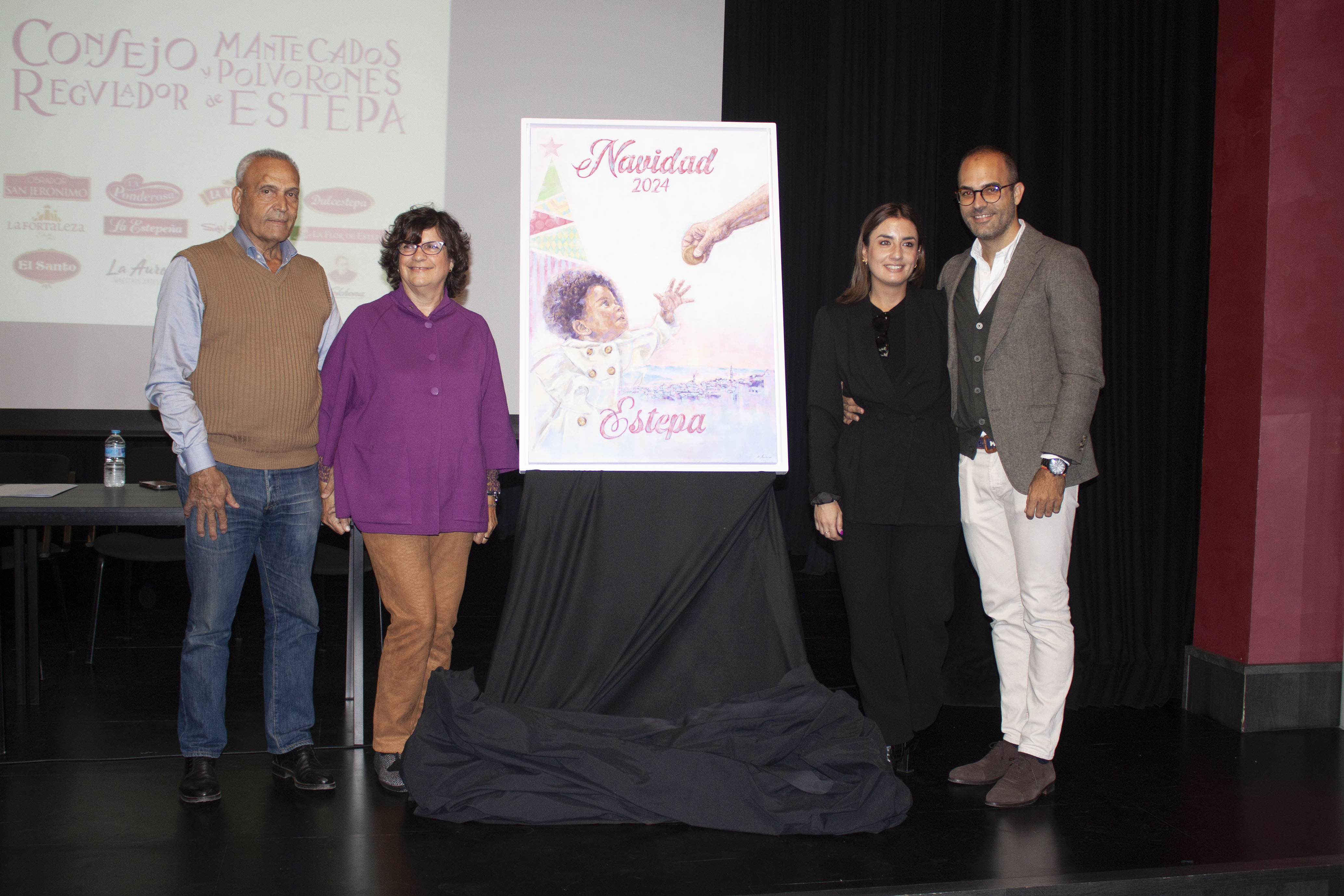 La presentación tuvo lugar en La Casa de la Cultura de Estepa, donde autoridades locales se dieron cita para conocer la propuesta que acompañará las celebraciones navideñas de este año. En este caso, el acto ha sido dirigido por Carmen Prados y en el que estuvo presente el alcalde de Estepa, Antonio Jesús Muñoz Quirós, José María Fernández, presidente del consejo Regulador de la doble IGP “Mantecados de Estepa” y “Polvorones de Estepa” y el propio cartelista, Marcos Moreno.