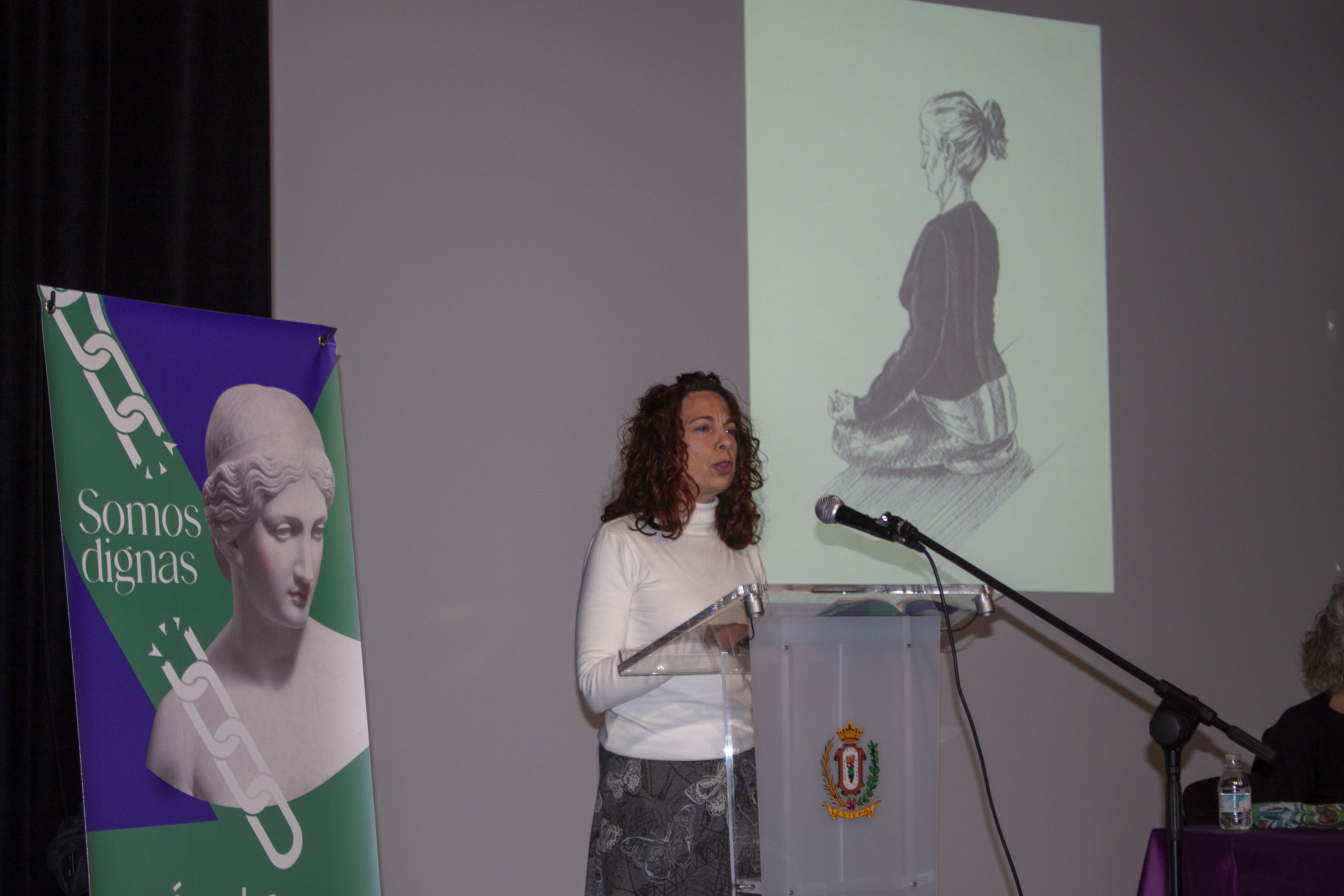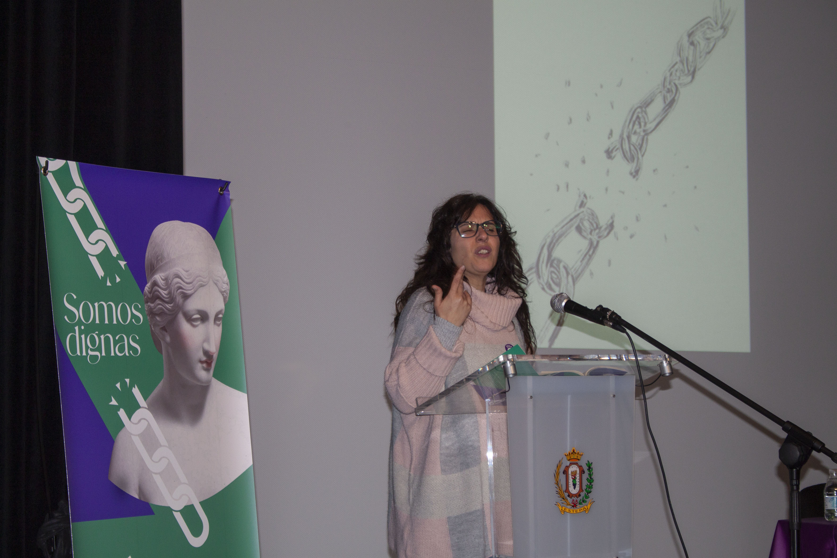 Los actos conmemorativos de este 8M en Estepa han finalizado con la presentación de un libro de poemas, "Somos Dignas" de la estepeña Ángeles Velasco, una mujer que expresa sus sentimientos a través de sus poemas.