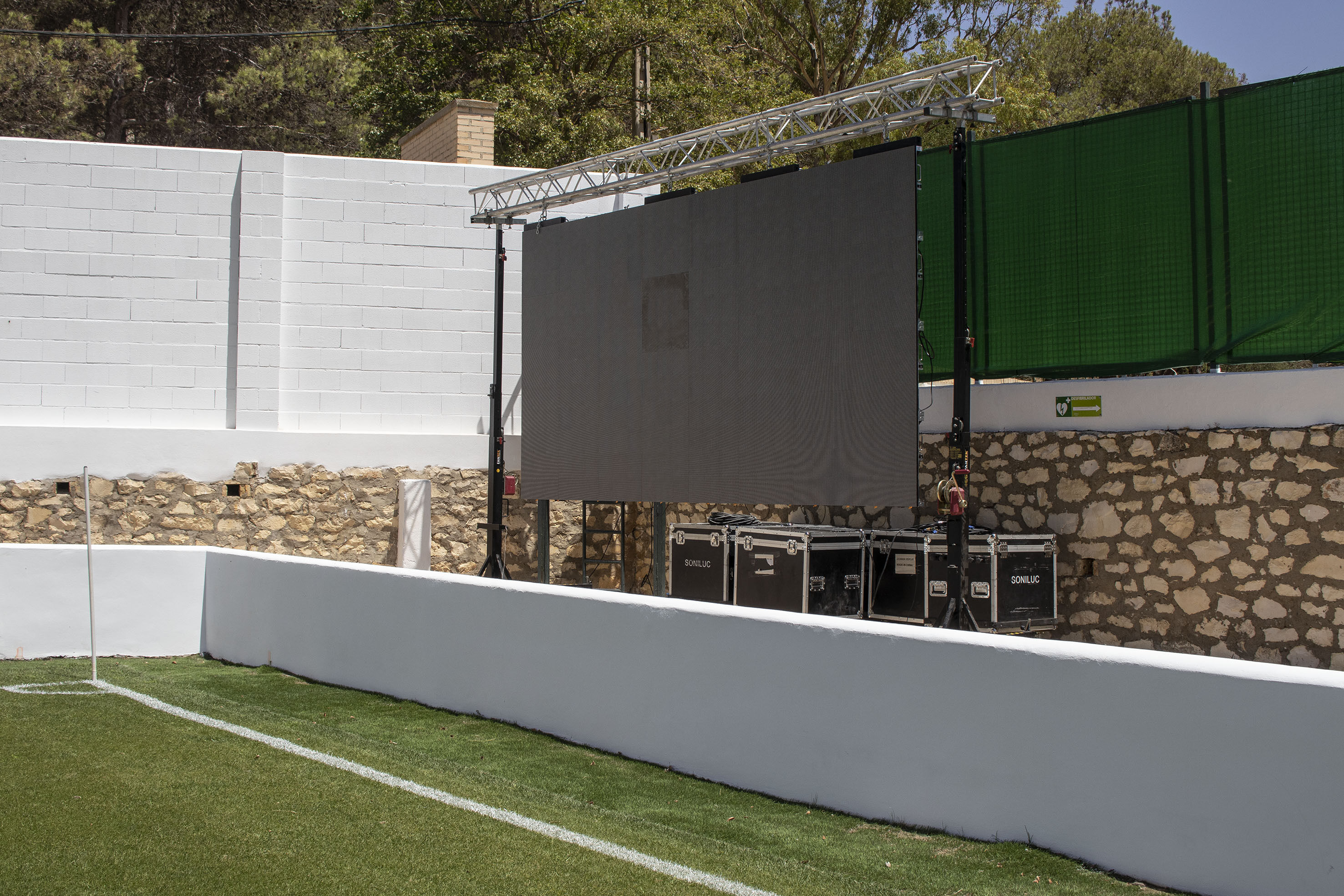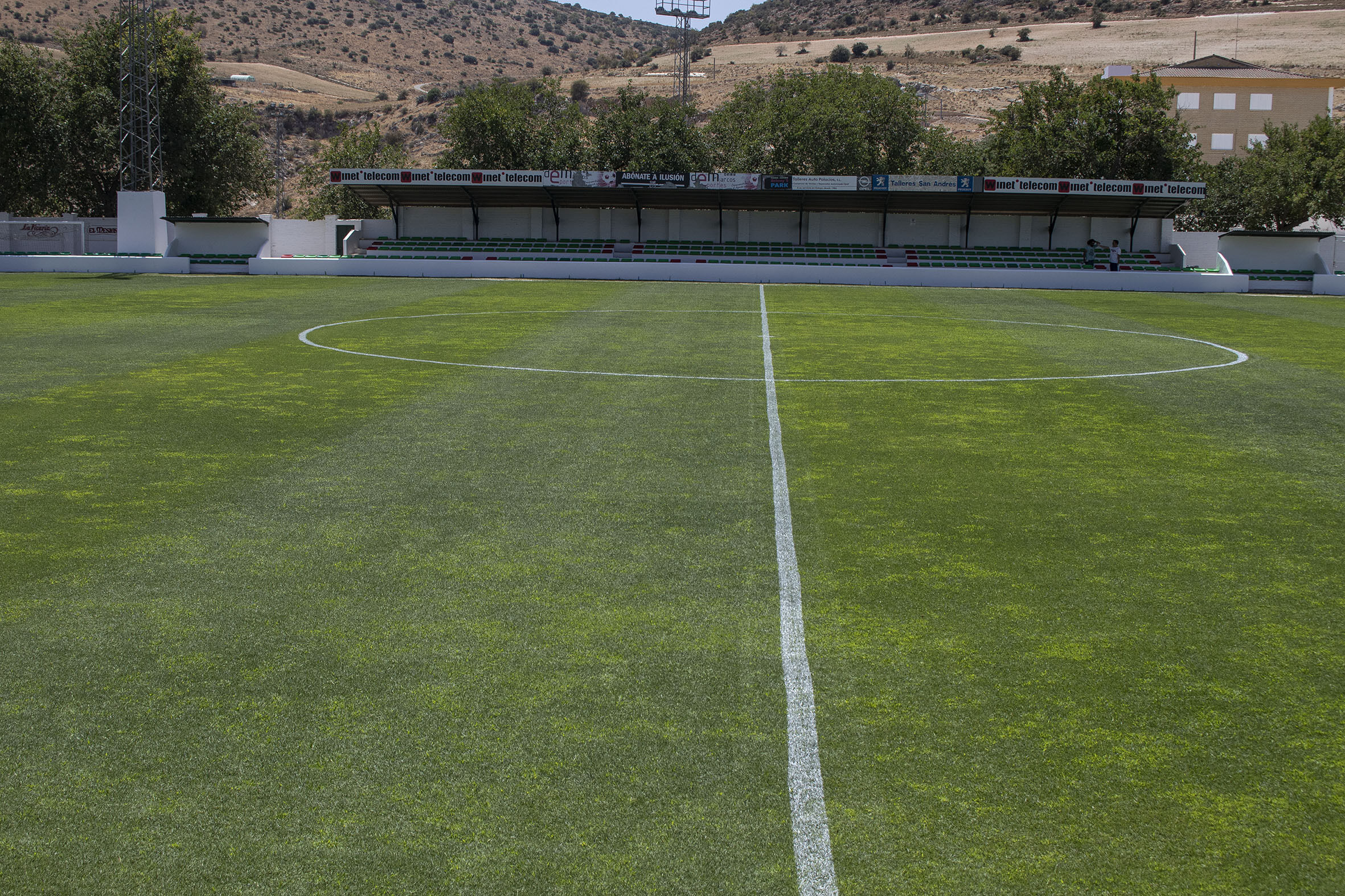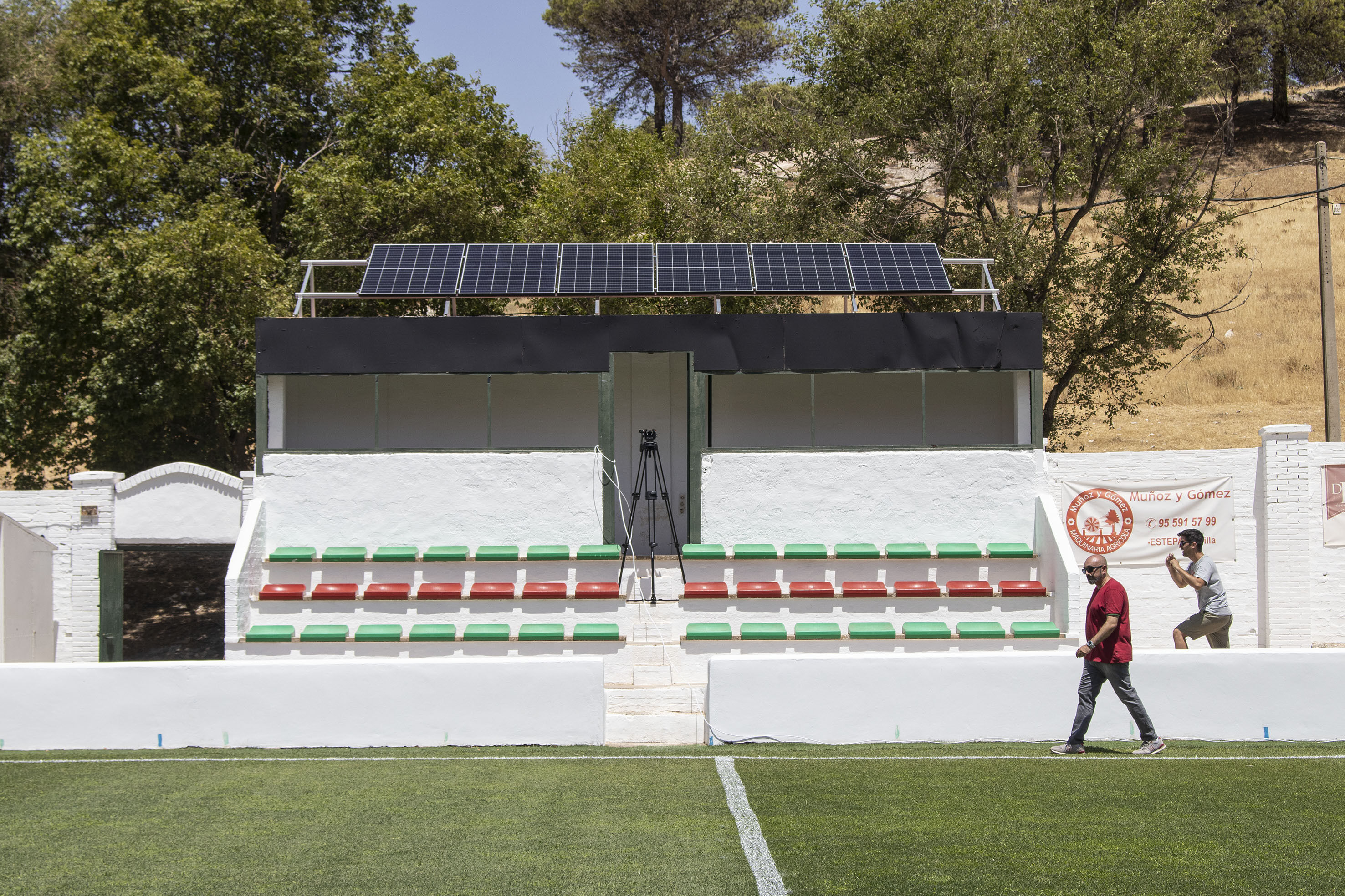 El campo de fútbol José Antonio Caro Martínez, luce un flamante y renovado césped natural, cuidado con mimo durante meses para este día. Se han instalado nuevos asientos, un marcador gigante electrónico y placas solares que añadirán una potencia de 5.000 w aliviando así el consumo del evento.