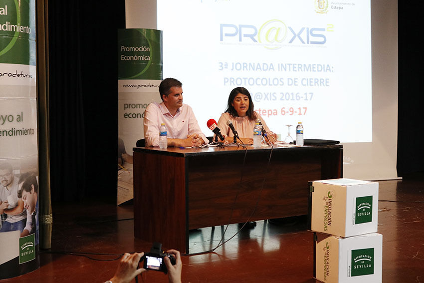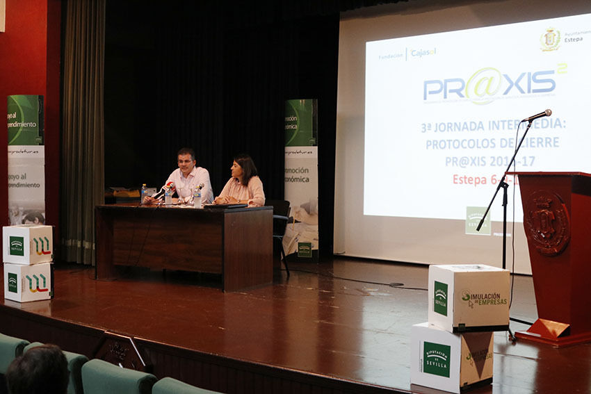 La casa de la cultura Miguel de Cervantes de Estepa ha acogido esta mañana la tercera y última jornada del programa PRAXIS, por el cual 64 jóvenes de la comarca de Estepa se han beneficiado de prácticas laborales en empresas de diferentes sectores industriales de nuestra zona.