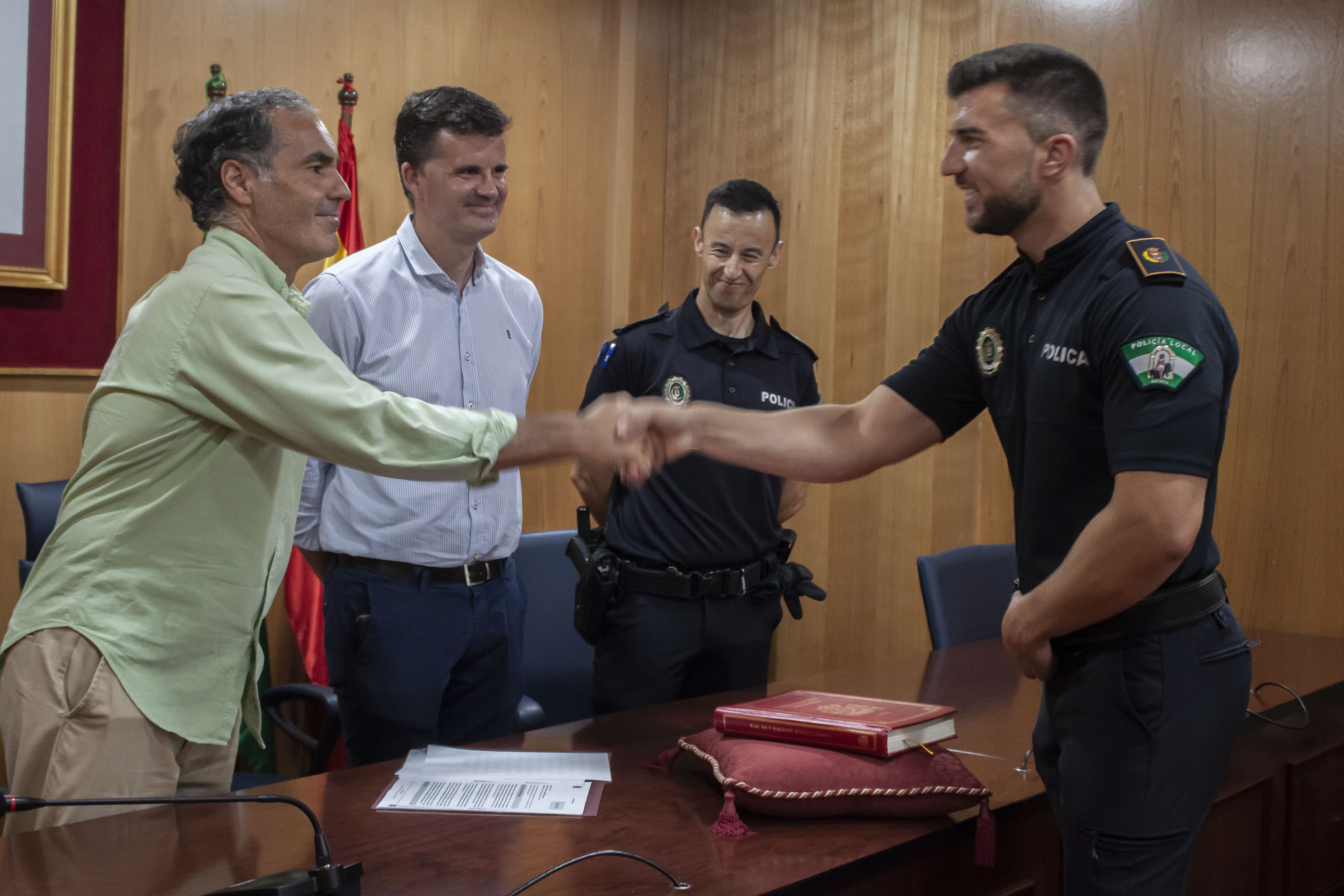 El nuevo agente, toma posesión del puesto de Policía Local, perteneciente a la Escala de Administración Especial, Subescala de Servicios Especiales, tras haber superado con éxito el procedimiento selectivo convocado al efecto, a través del sistema de oposición libre y cuyo nombramiento se ha realizado por Decreto de Alcaldía nº 1471/2024, de 26 de junio de 2024.