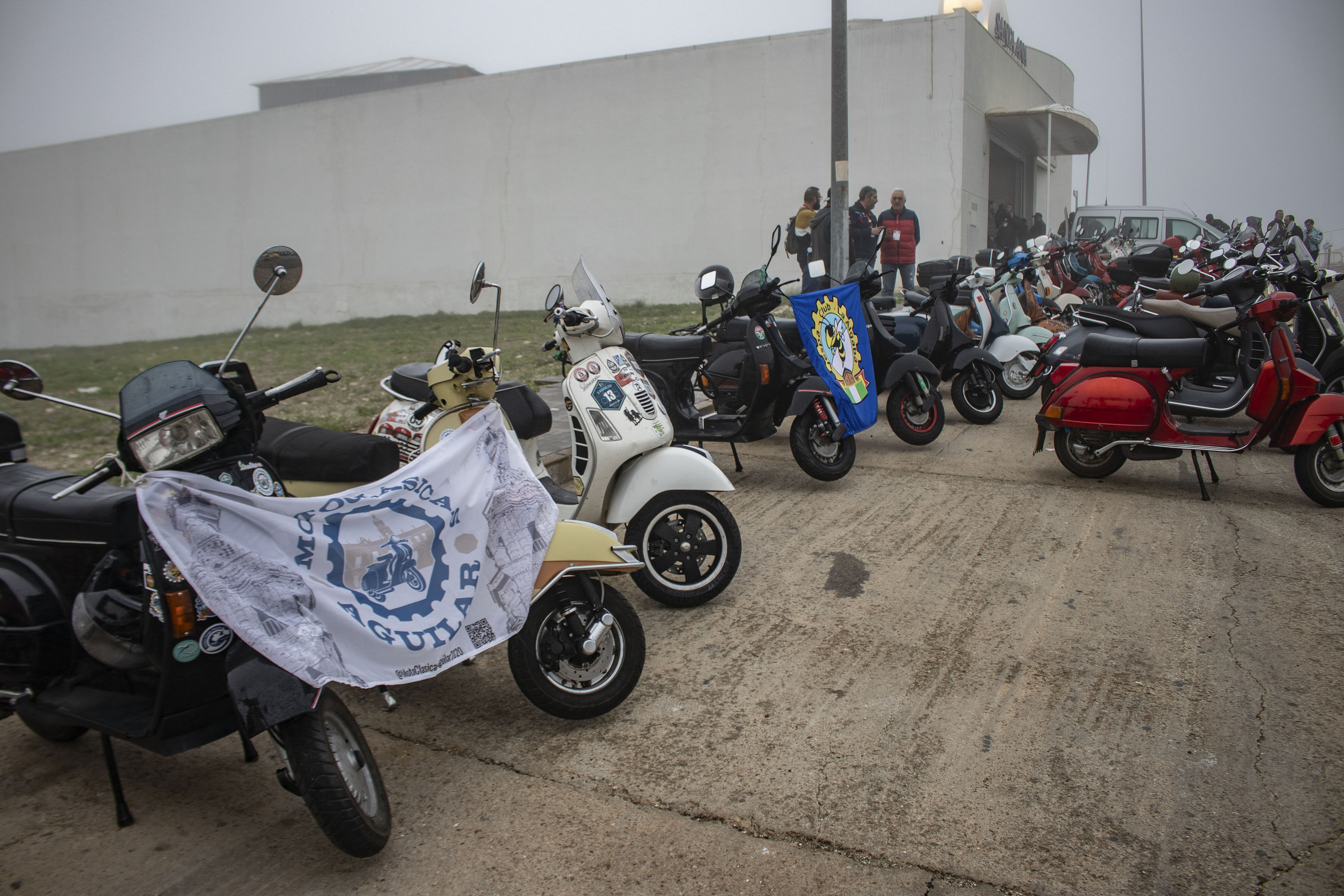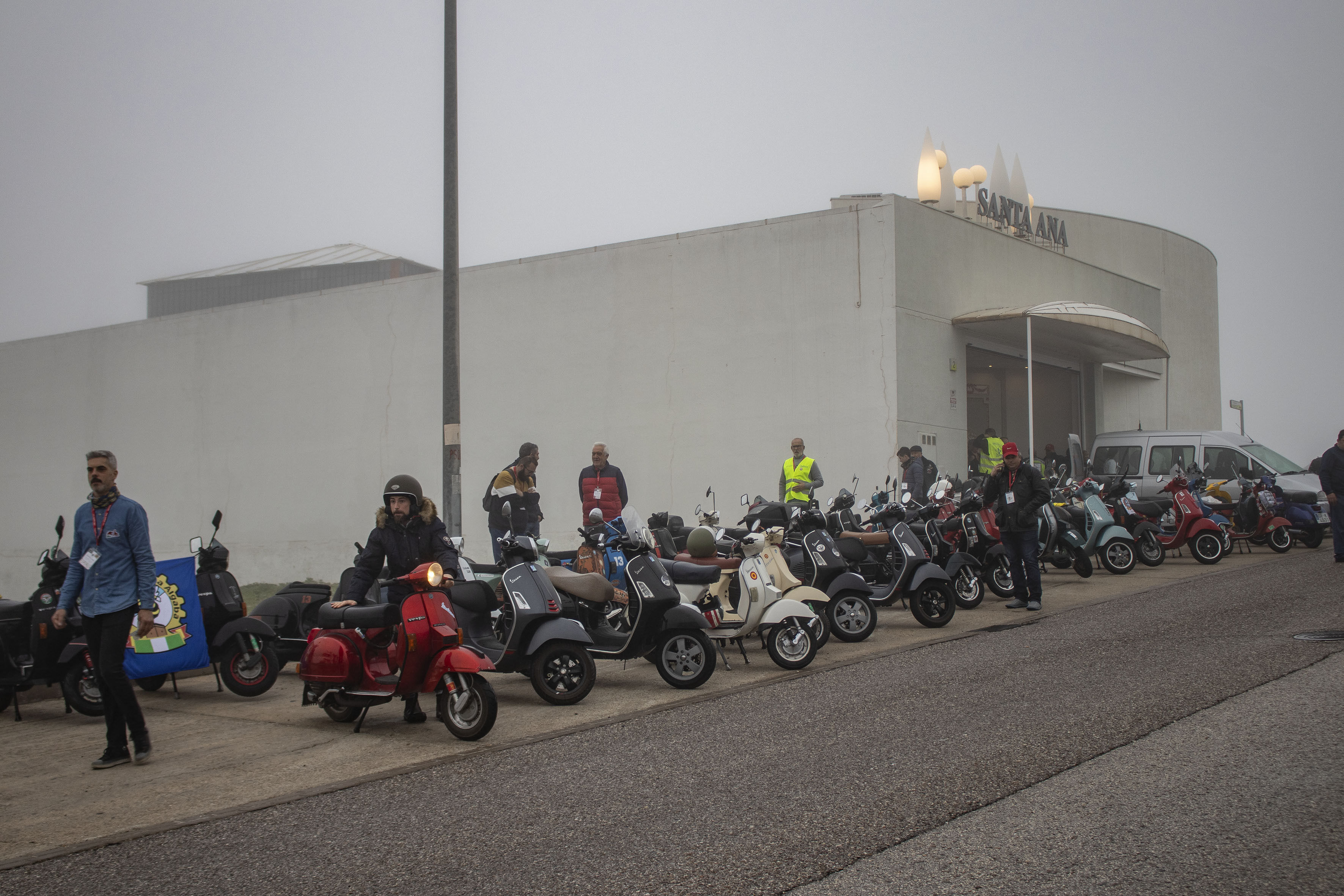 La niebla ha recibido en esta mañana de noviembre a las 324 Vespas que se han dado cita en el salón Santa Ana de Estepa para celebrar el VIII Polvorón Vestepa.