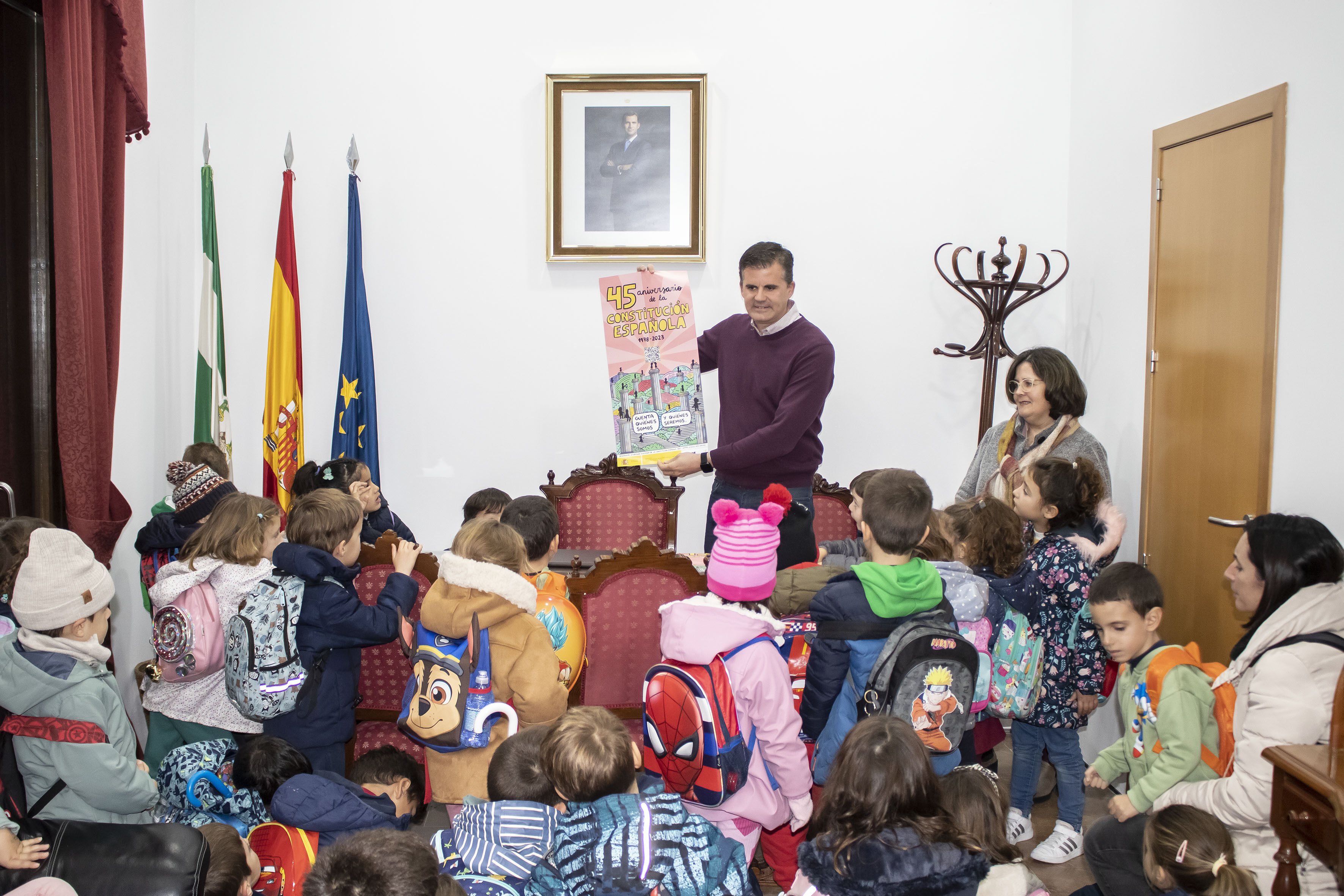 Tanto el alcalde como la concejala, han aprovechado la proximidad de la festividad del 6 de diciembre, Día de la Constitución Española para hablar sobre este importante día y han regalado pósters conmemorativos del 45º Aniversario de nuestra constitución.