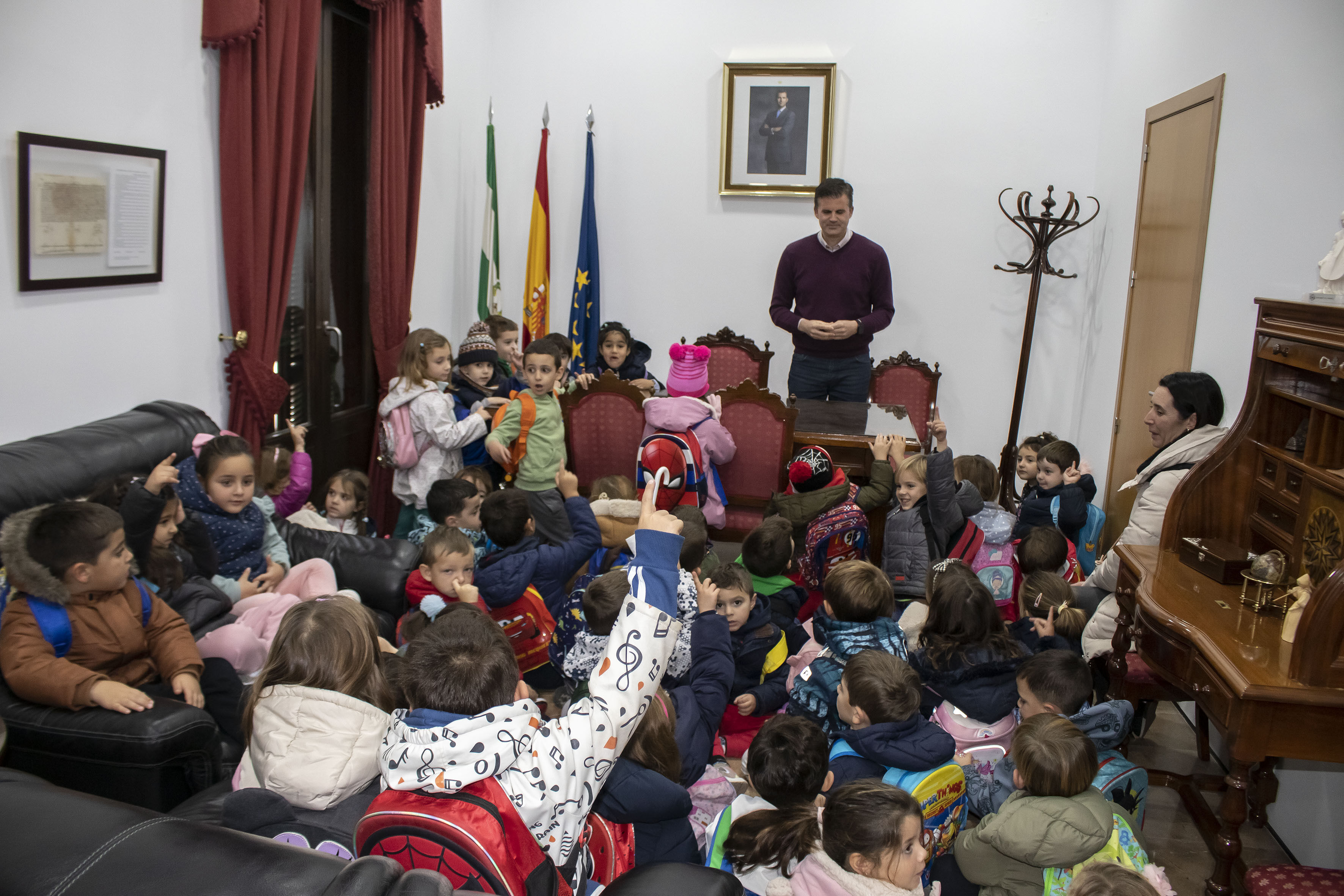 El grupo ha sido recibido por el alcalde de la ciudad, Antonio Jesús Muñoz, quien se ha sometido a las preguntas de los pequeños. El alcalde ha estado encantado de recibir al grupo de estudiantes y de conversar con ellos sobre varias cuestiones que le han planteado.